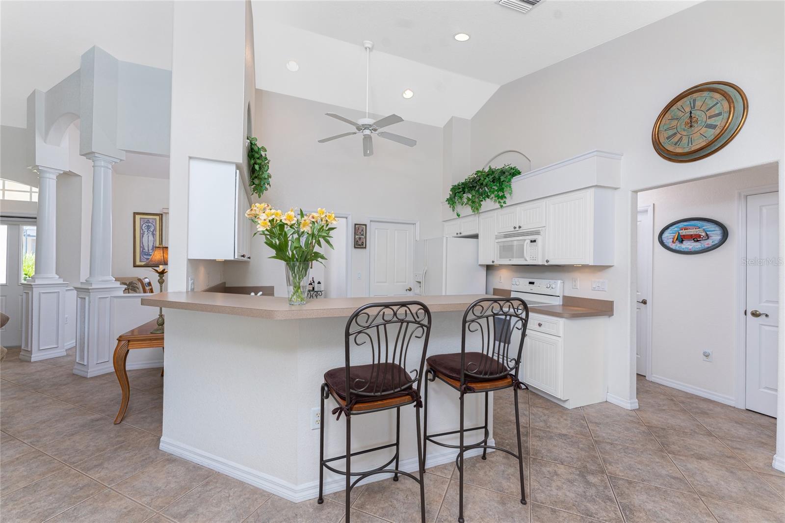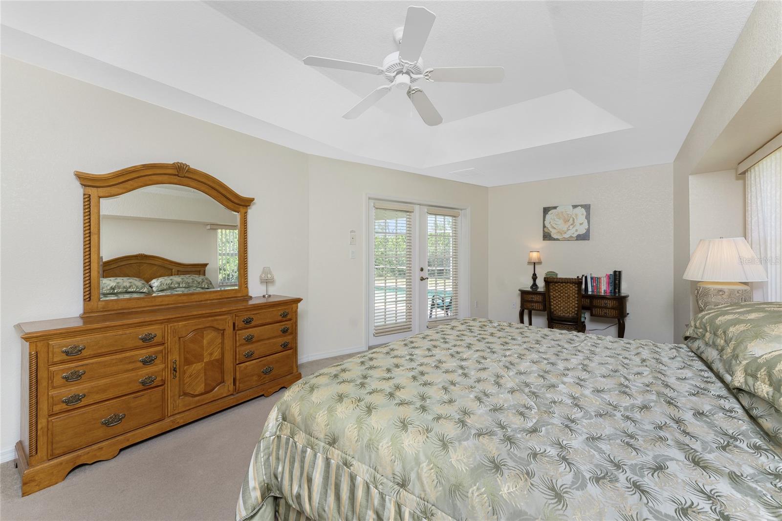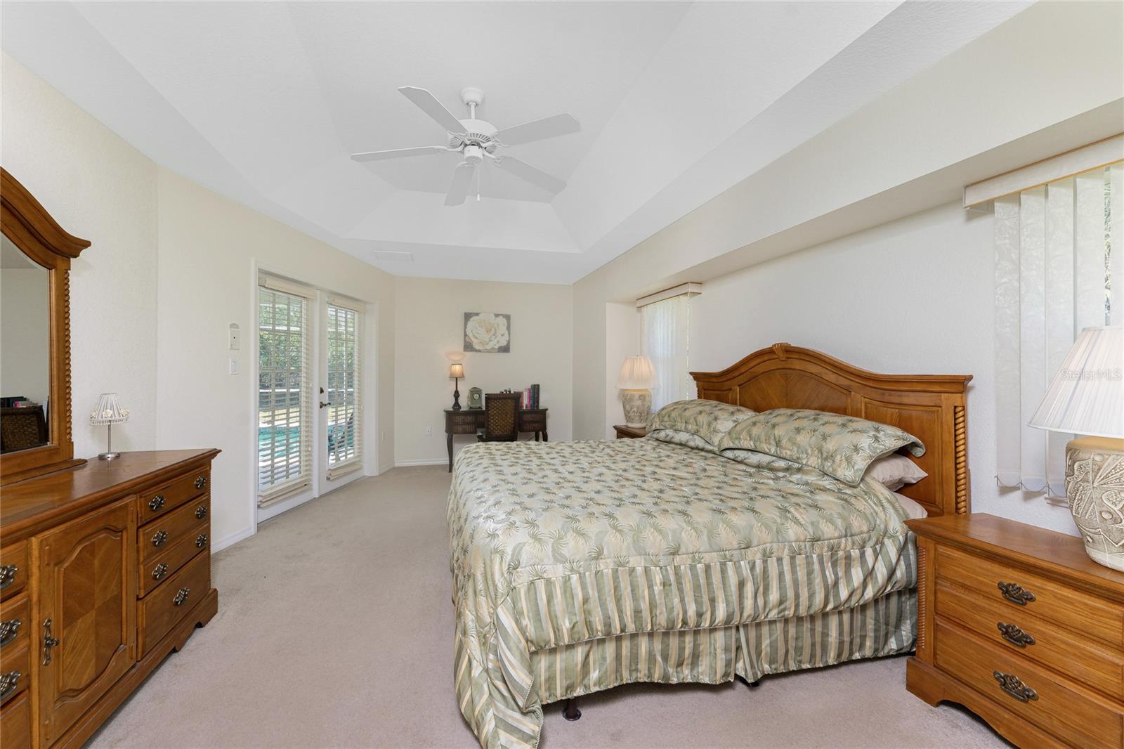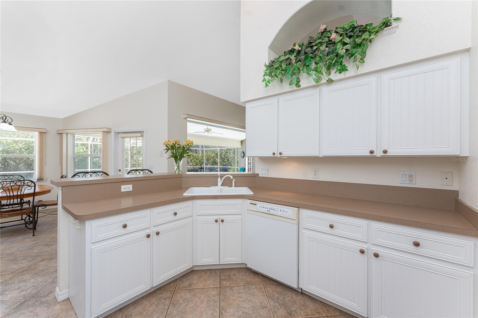 A rare and exceptional opportunity to own nearly an acre in the Long Meadow Section of Rotonda West! This cul-de-sac property offers partial golf course views and includes a unique additional lot bordering the Long Marsh Golf Course. The wooded space enhances privacy and creates a serene setting with uninterrupted views, but also provides the ability to transform it to additional outdoor entertaining space if desired. Step inside this bright and airy three-bedroom, two-bath home, where soaring ceilings and quadruple pocketing sliders welcome you with stunning pool views from the moment you enter. Tile flooring in the main living areas and bathrooms ensures easy maintenance, while the kitchen offers ample white cabinetry, plant shelves, a breakfast bar, and a convenient pocket door leading to the formal dining room. A large window in the breakfast nook overlooks the backyard, and a French door provides direct access to the lanai. The spacious primary suite features dual walk-in closets, a tray ceiling, French doors to the pool, and an expansive ensuite bath with dual vanities, a garden tub, and a walk-in shower. The split-bedroom design ensures privacy, with two additional bedrooms offering reach-in closets and a shared guest bath with a tub-shower combo. A large interior laundry room has a built-in cabinet with utility sink, countertop space and shelving. The outdoor living space includes an oversized pool with a western exposure that invites you to unwind and enjoy breathtaking sunsets with a glass of wine. Additional highlights include a 2023 roof, new pool cage screening (2023), a 2022 water heater, a 2024 garage door opener, and a private well-fed irrigation system. As another added bonus, the Seller's flood insurance policy is transferable! Best of all, this home is being sold turnkey furnished, just pack your bags and move in! Located in deed-restricted Rotonda West, this community offers five golf courses, a clubhouse, tennis, hiking, clubs, and 26 miles of scenic waterways. A short drive takes you to pristine beaches, boating in Lemon Bay and Boca Grande, world-class fishing, shopping, local restaurants, tiki bars, medical facilities and so much more. Don't miss this rare blend of space, privacy, and resort-style living - schedule your private showing today!
