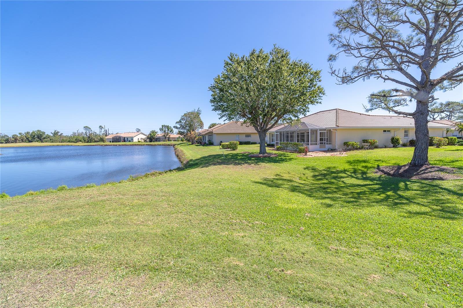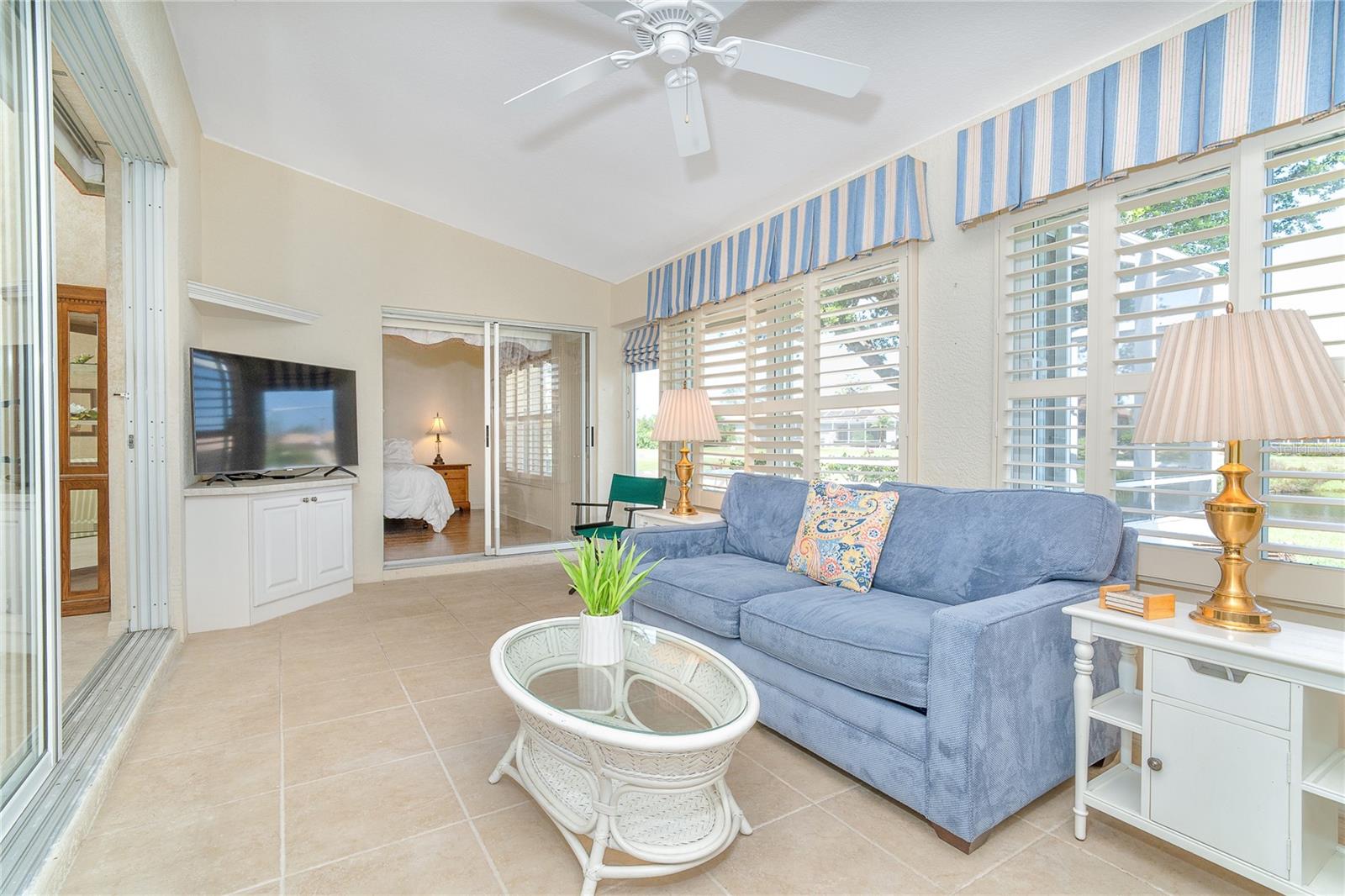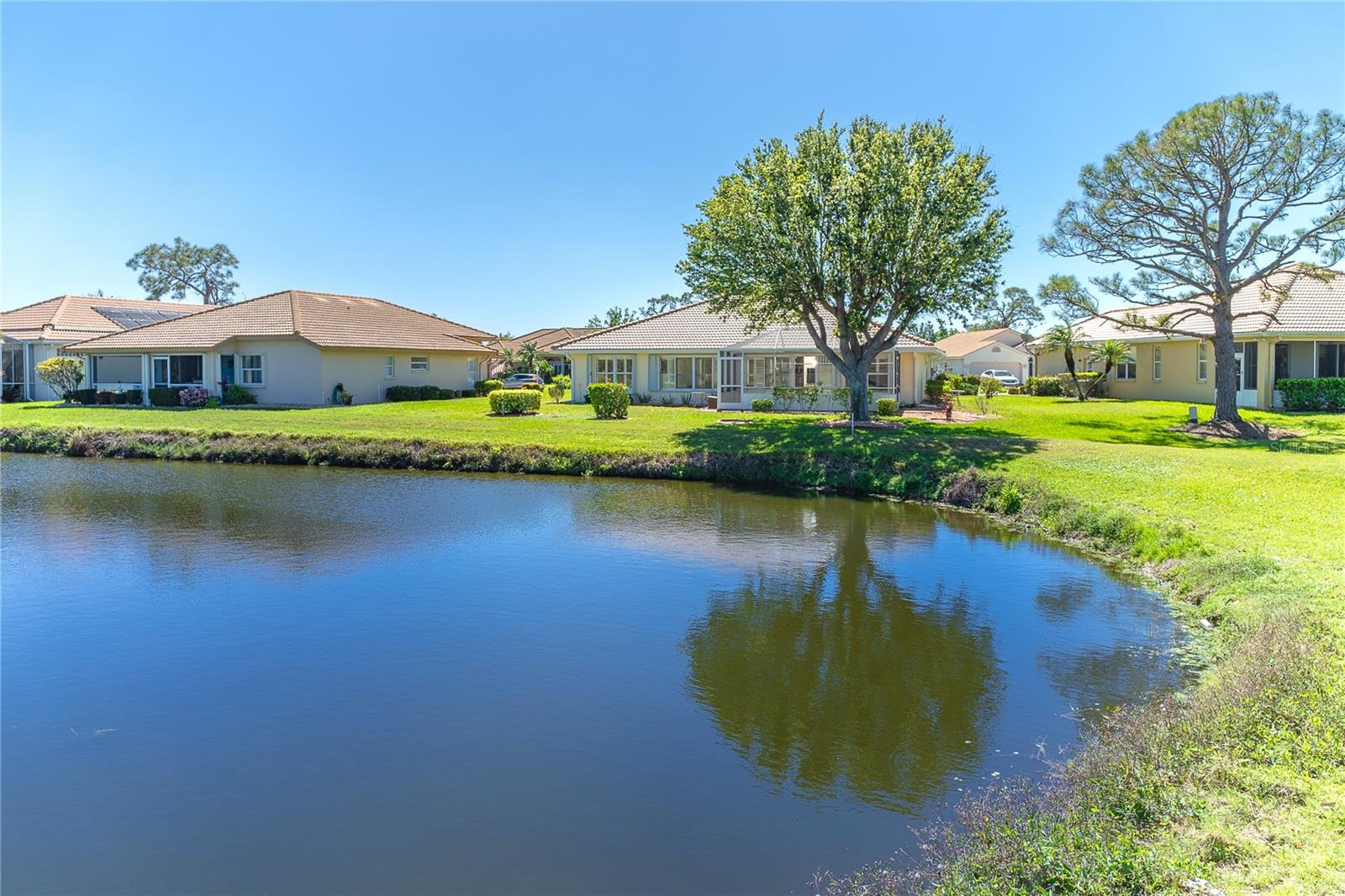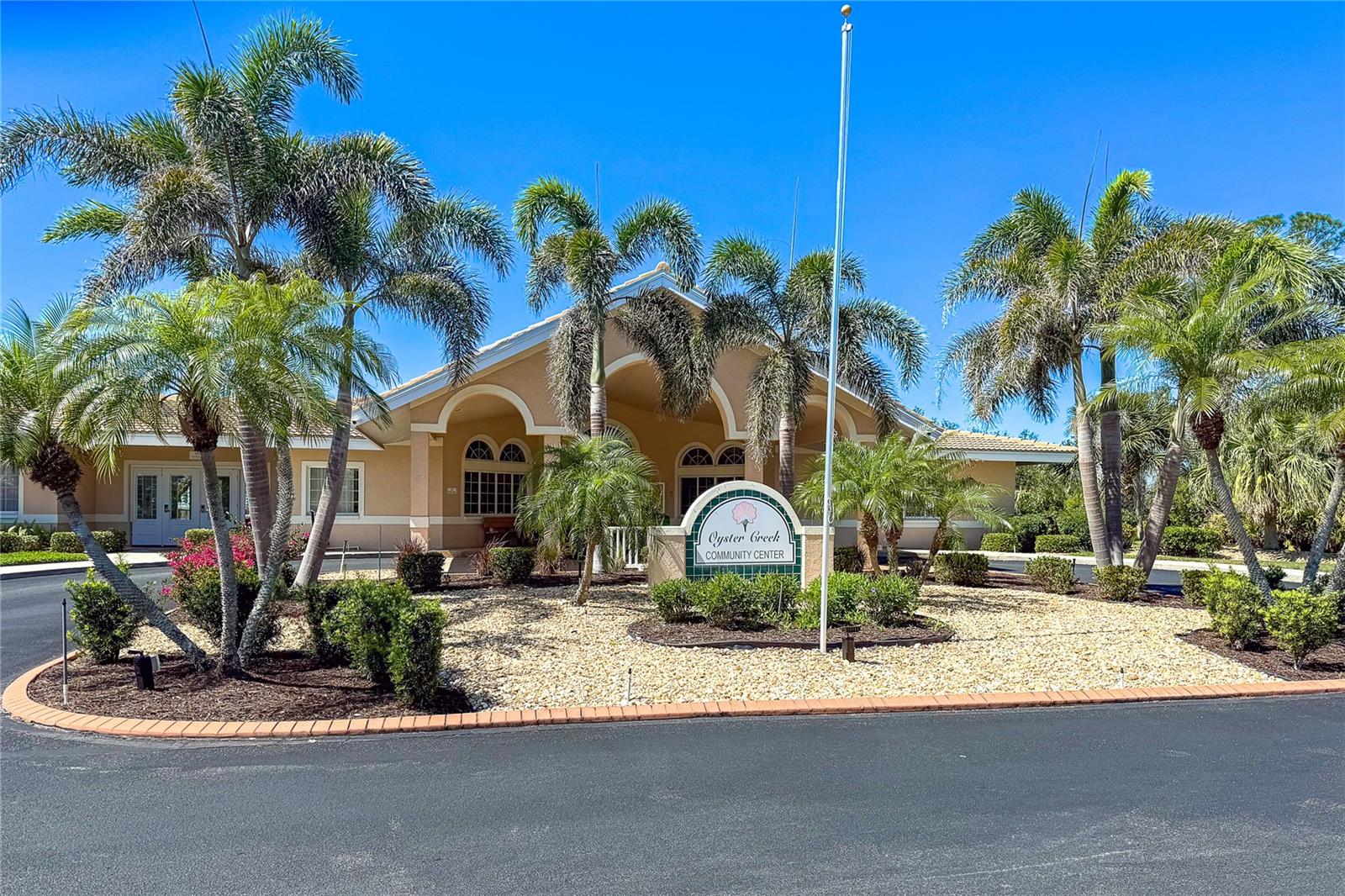 Nestled within the gated Oyster Creek Golf Community, this stunning TURNKEY/FURNISHED home offers an unbeatable combination of elegance, comfort, and an active Florida lifestyle. Residents enjoy access to a wealth of amenities, including a clubhouse, heated pool, spa, fitness center, bocce, tennis, and pickleball courts, a library, and a variety of social activities. Plus, the community's private golf course requires no membership fees! Your HOA covers cable, internet, lawn care, a sprinkler system, and 24-hour gated security, ensuring a hassle-free living experience. As you enter the neighborhood, you'll be captivated by the manicured lawns and impeccably maintained homes.This beautifully designed 2-bedroom, 2-bathroom home offers a versatile Den/3rd Bedroom with a detached walk-in closet, providing a great option. The enclosed sunroom overlooks the 10th hole of the golf course and a serene water view--perfect for unwinding or entertaining. A private office space off the garage, complete with its own entrance, adds even more functionality.Inside, you'll find tile flooring throughout, with vinyl plank flooring in the bedrooms. Recent upgrades include a NEW HVAC system, NEW ROOF, and fresh Exterior Painting on the front of the home, soffits, and interior ceilings. Accordion and standard shutters provide storm protection, while interior plantation shutters add a charming Florida touch. Thoughtful built-ins in the den, office, and dinette area offer additional storage solutions.With its expansive kitchen, open-concept living and dining areas, and seamless indoor-outdoor flow, this home perfectly captures the essence of Florida living. The Dinette area off the kitchen has built in's to accommodate any chef's needs for storage and additional dining space.The spacious primary suite boasts a spacious walk-in closet, private sliders to the sunroom, and a luxurious ensuite bathroom featuring a walk-in shower and direct access to the laundry room for added convenience. The second bedroom also includes a built-in closet, while the den/study can easily serve as a third bedroom with a detached walk in closet. The second bathroom offers double sinks and a walk-in shower.Outdoor enthusiasts will love the beautifully landscaped yard with curbing, the screened-in lanai, and the peaceful golf course and water views. A well system keeps irrigation costs low. The epoxy-coated garage floor adds a polished touch, while built-in cabinets provide extra storage. A retractable garage screen allows you to enjoy Gulf breezes while working in the garage. Don't miss this opportunity to own a piece of paradise!