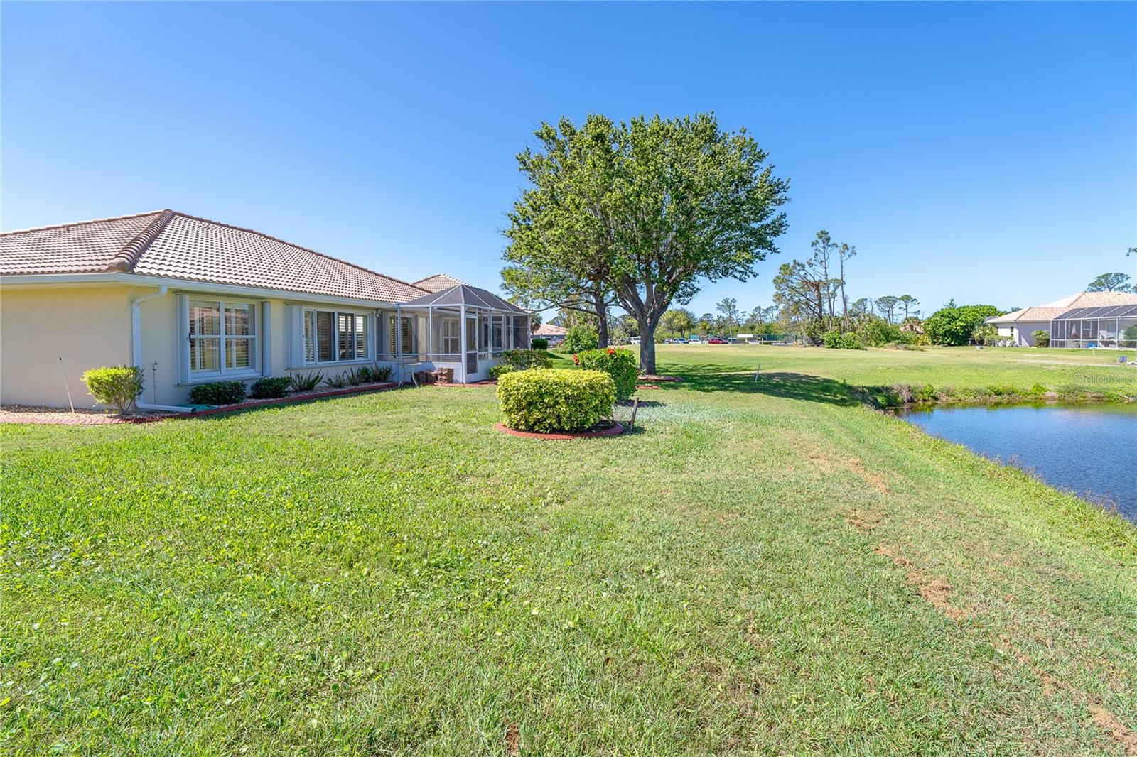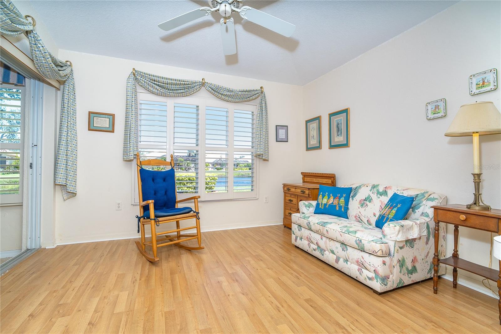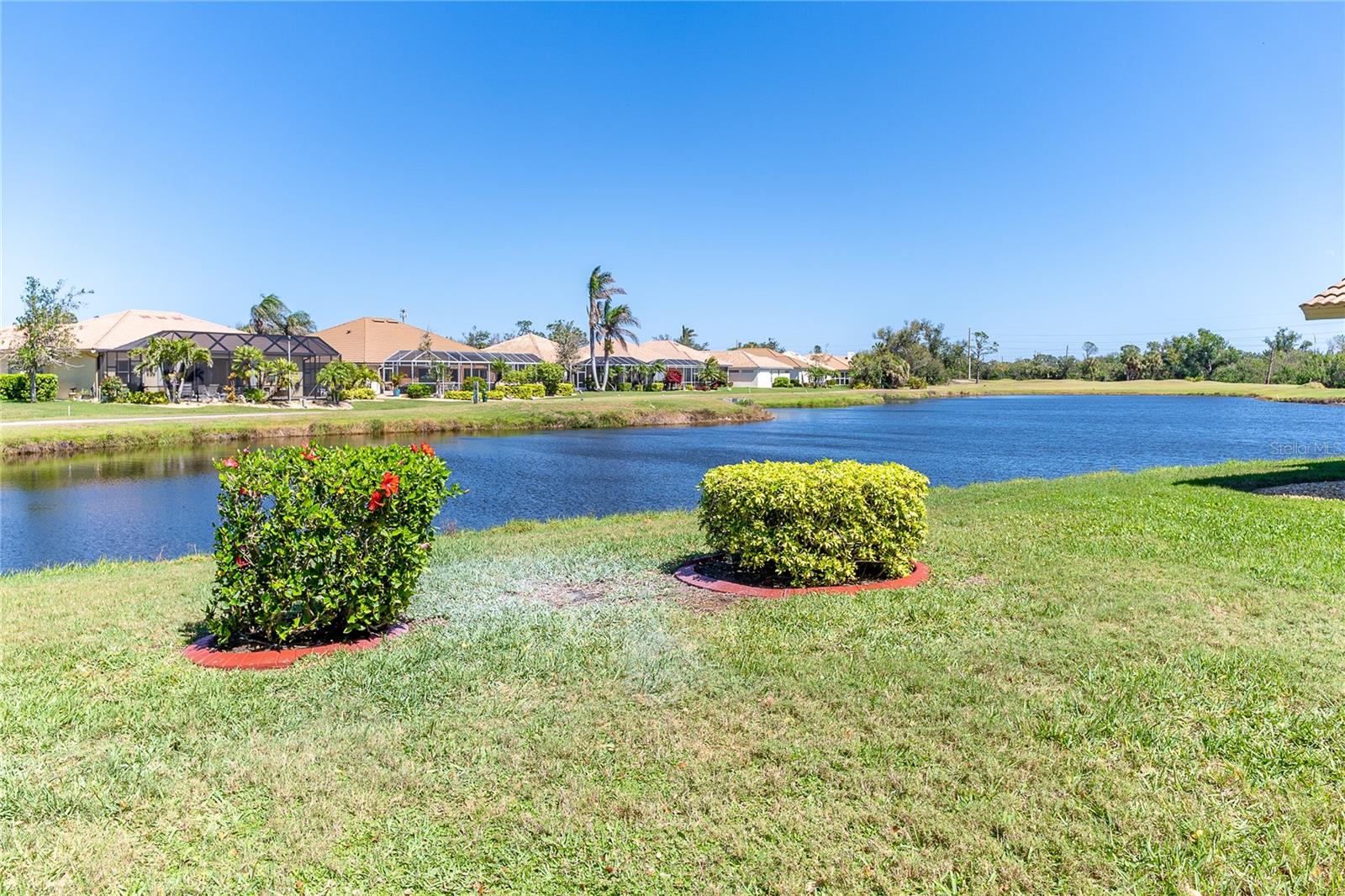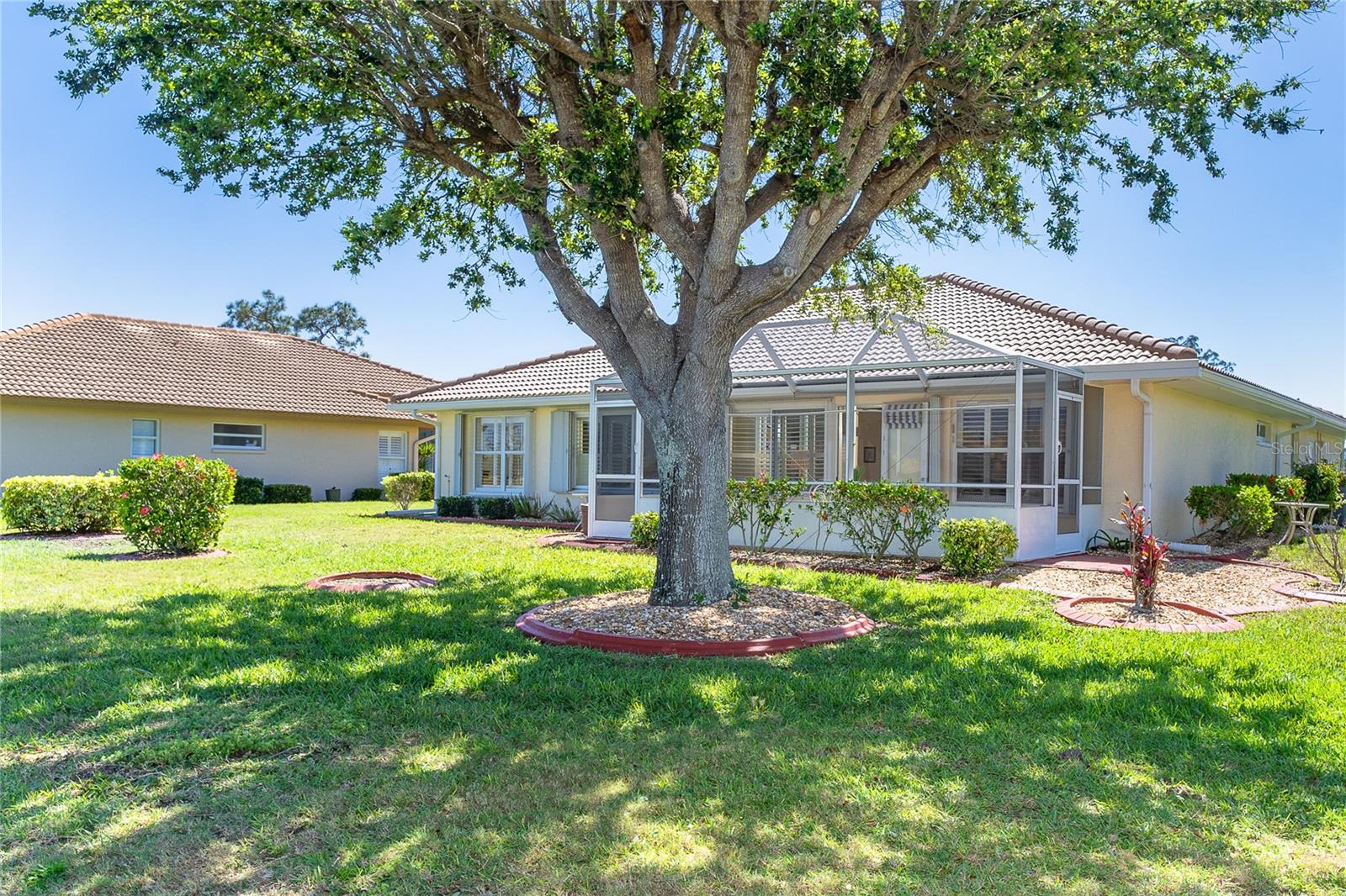 Nestled within the gated Oyster Creek Golf Community, this stunning TURNKEY/FURNISHED home offers an unbeatable combination of elegance, comfort, and an active Florida lifestyle. Residents enjoy access to a wealth of amenities, including a clubhouse, heated pool, spa, fitness center, bocce, tennis, and pickleball courts, a library, and a variety of social activities. Plus, the community's private golf course requires no membership fees! Your HOA covers cable, internet, lawn care, a sprinkler system, and 24-hour gated security, ensuring a hassle-free living experience. As you enter the neighborhood, you'll be captivated by the manicured lawns and impeccably maintained homes.This beautifully designed 2-bedroom, 2-bathroom home offers a versatile Den/3rd Bedroom with a detached walk-in closet, providing a great option. The enclosed sunroom overlooks the 10th hole of the golf course and a serene water view--perfect for unwinding or entertaining. A private office space off the garage, complete with its own entrance, adds even more functionality.Inside, you'll find tile flooring throughout, with vinyl plank flooring in the bedrooms. Recent upgrades include a NEW HVAC system, NEW ROOF, and fresh Exterior Painting on the front of the home, soffits, and interior ceilings. Accordion and standard shutters provide storm protection, while interior plantation shutters add a charming Florida touch. Thoughtful built-ins in the den, office, and dinette area offer additional storage solutions.With its expansive kitchen, open-concept living and dining areas, and seamless indoor-outdoor flow, this home perfectly captures the essence of Florida living. The Dinette area off the kitchen has built in's to accommodate any chef's needs for storage and additional dining space.The spacious primary suite boasts a spacious walk-in closet, private sliders to the sunroom, and a luxurious ensuite bathroom featuring a walk-in shower and direct access to the laundry room for added convenience. The second bedroom also includes a built-in closet, while the den/study can easily serve as a third bedroom with a detached walk in closet. The second bathroom offers double sinks and a walk-in shower.Outdoor enthusiasts will love the beautifully landscaped yard with curbing, the screened-in lanai, and the peaceful golf course and water views. A well system keeps irrigation costs low. The epoxy-coated garage floor adds a polished touch, while built-in cabinets provide extra storage. A retractable garage screen allows you to enjoy Gulf breezes while working in the garage. Don't miss this opportunity to own a piece of paradise!