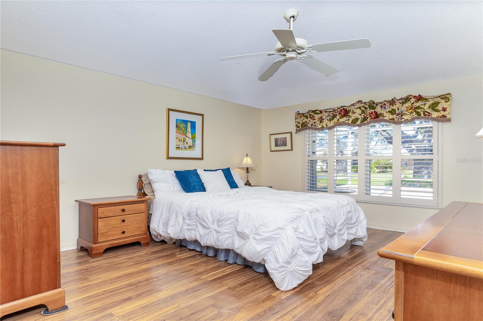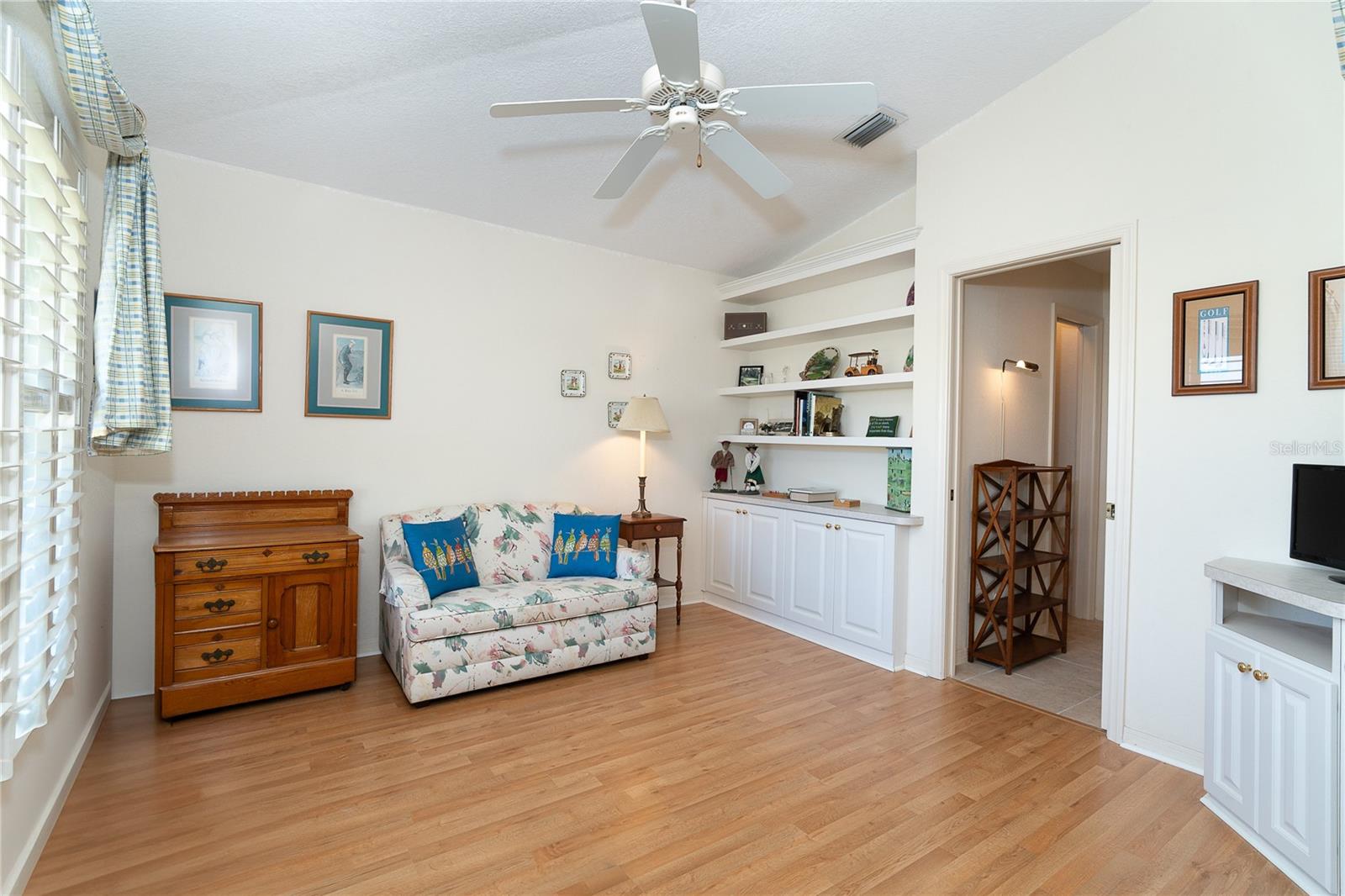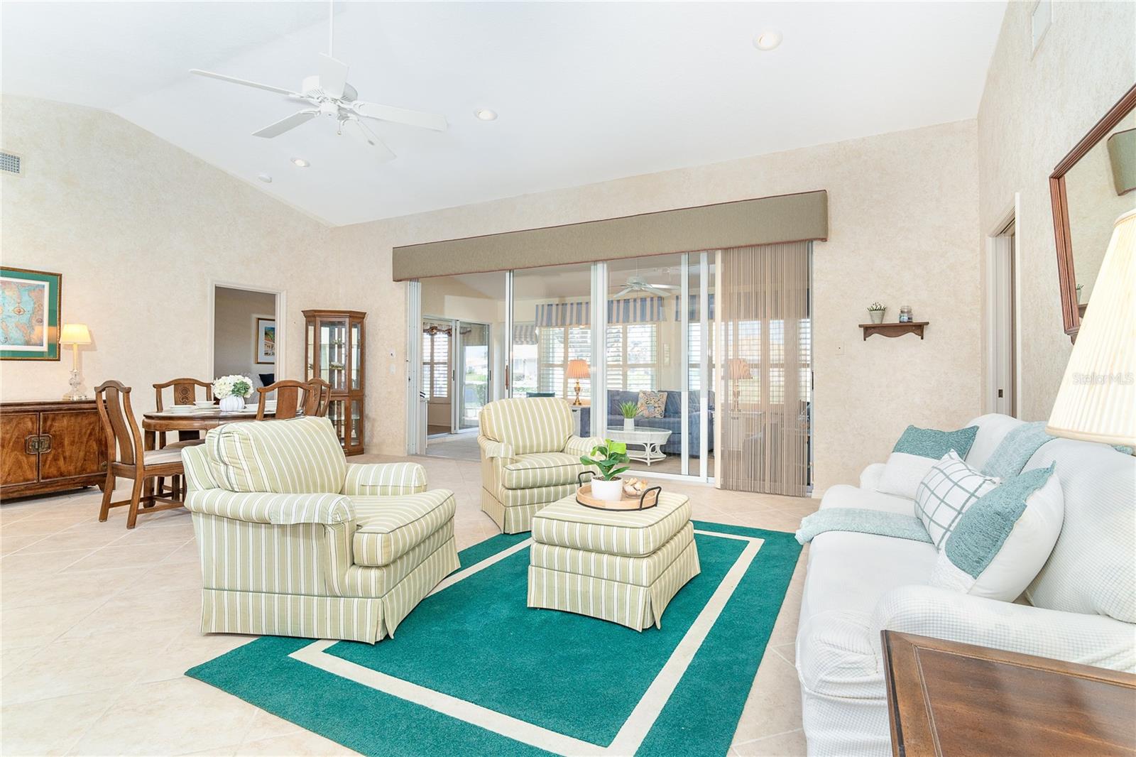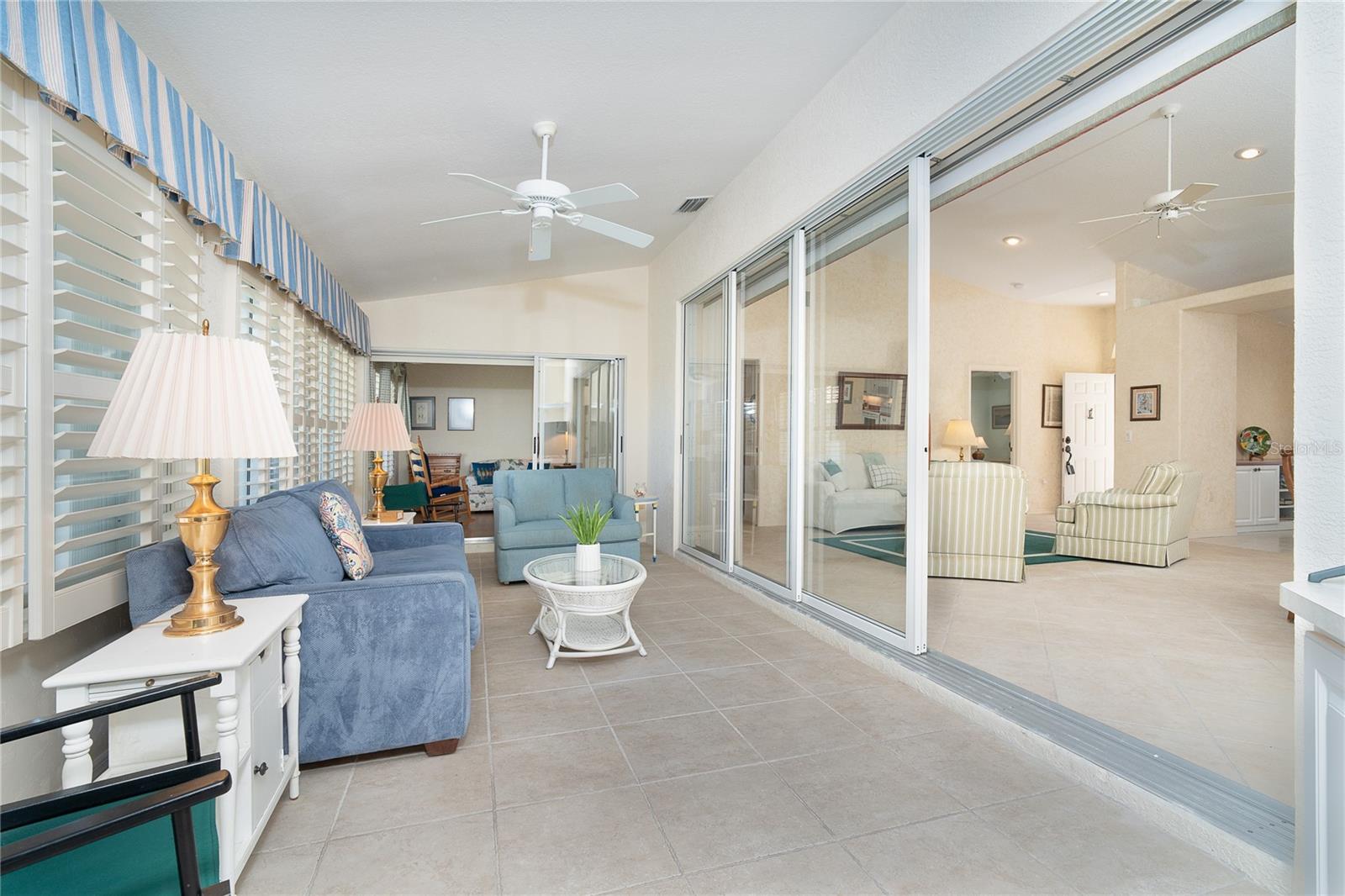 Nestled within the gated Oyster Creek Golf Community, this stunning TURNKEY/FURNISHED home offers an unbeatable combination of elegance, comfort, and an active Florida lifestyle. Residents enjoy access to a wealth of amenities, including a clubhouse, heated pool, spa, fitness center, bocce, tennis, and pickleball courts, a library, and a variety of social activities. Plus, the community's private golf course requires no membership fees! Your HOA covers cable, internet, lawn care, a sprinkler system, and 24-hour gated security, ensuring a hassle-free living experience. As you enter the neighborhood, you'll be captivated by the manicured lawns and impeccably maintained homes.This beautifully designed 2-bedroom, 2-bathroom home offers a versatile Den/3rd Bedroom with a detached walk-in closet, providing a great option. The enclosed sunroom overlooks the 10th hole of the golf course and a serene water view--perfect for unwinding or entertaining. A private office space off the garage, complete with its own entrance, adds even more functionality.Inside, you'll find tile flooring throughout, with vinyl plank flooring in the bedrooms. Recent upgrades include a NEW HVAC system, NEW ROOF, and fresh Exterior Painting on the front of the home, soffits, and interior ceilings. Accordion and standard shutters provide storm protection, while interior plantation shutters add a charming Florida touch. Thoughtful built-ins in the den, office, and dinette area offer additional storage solutions.With its expansive kitchen, open-concept living and dining areas, and seamless indoor-outdoor flow, this home perfectly captures the essence of Florida living. The Dinette area off the kitchen has built in's to accommodate any chef's needs for storage and additional dining space.The spacious primary suite boasts a spacious walk-in closet, private sliders to the sunroom, and a luxurious ensuite bathroom featuring a walk-in shower and direct access to the laundry room for added convenience. The second bedroom also includes a built-in closet, while the den/study can easily serve as a third bedroom with a detached walk in closet. The second bathroom offers double sinks and a walk-in shower.Outdoor enthusiasts will love the beautifully landscaped yard with curbing, the screened-in lanai, and the peaceful golf course and water views. A well system keeps irrigation costs low. The epoxy-coated garage floor adds a polished touch, while built-in cabinets provide extra storage. A retractable garage screen allows you to enjoy Gulf breezes while working in the garage. Don't miss this opportunity to own a piece of paradise!