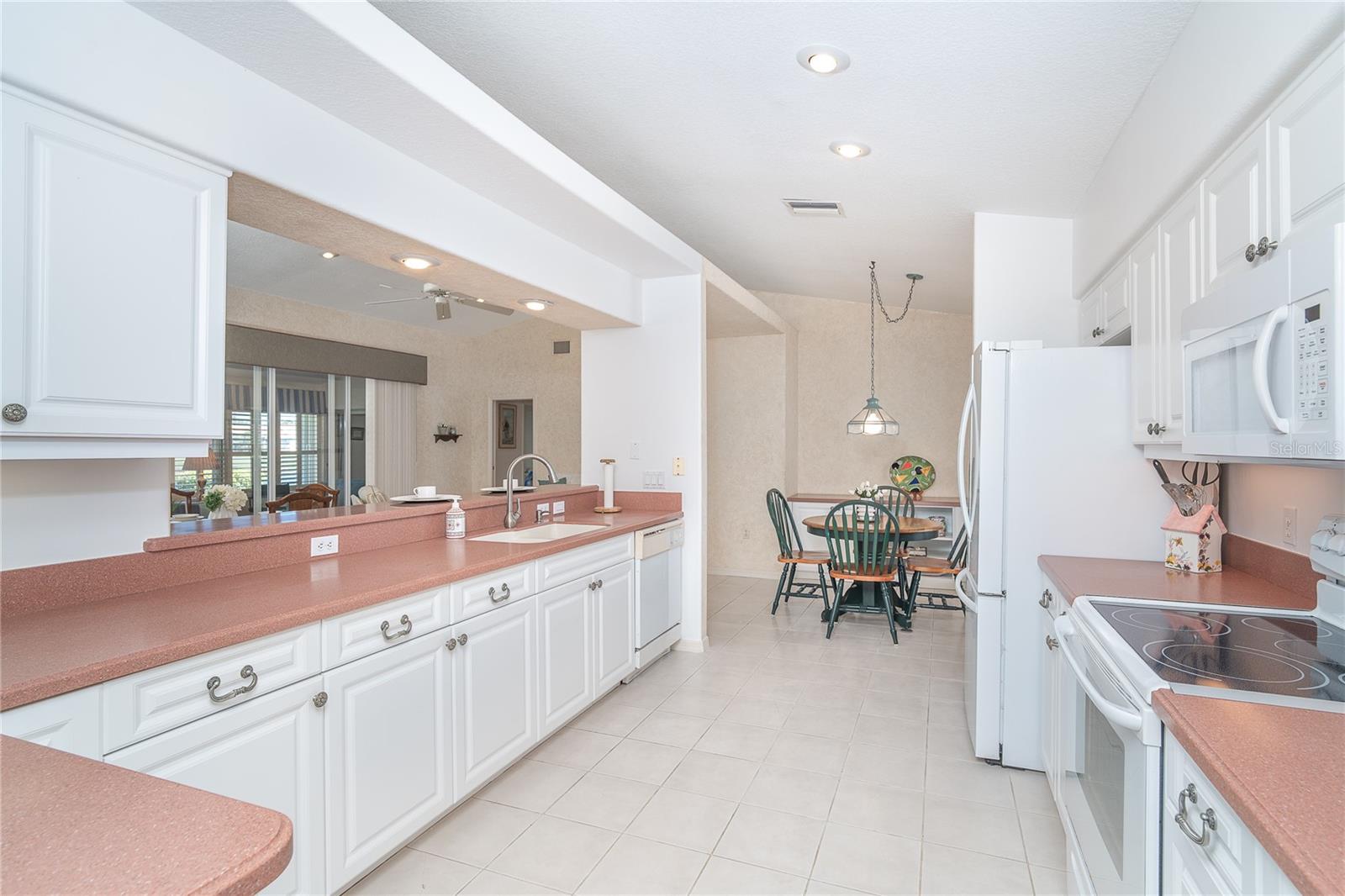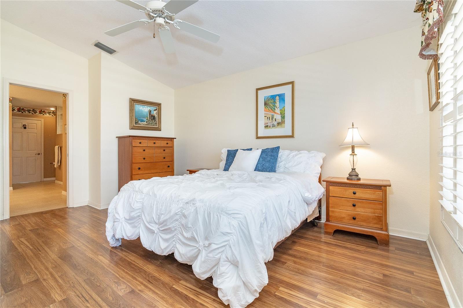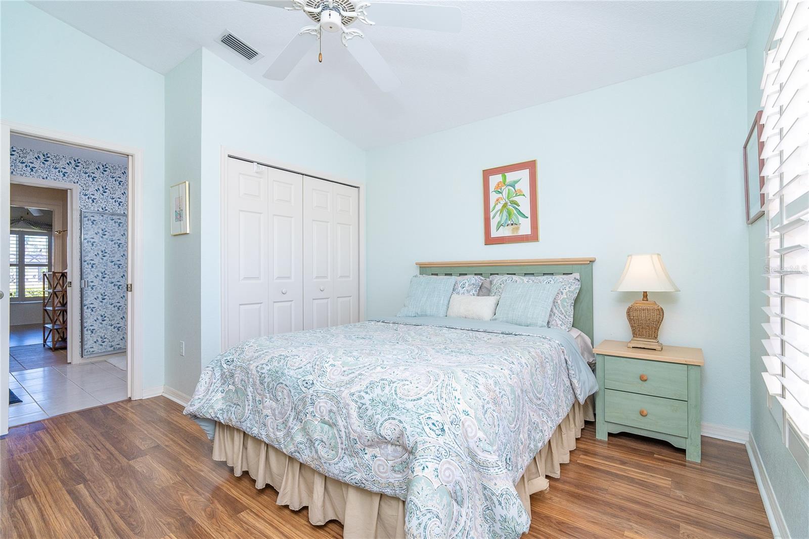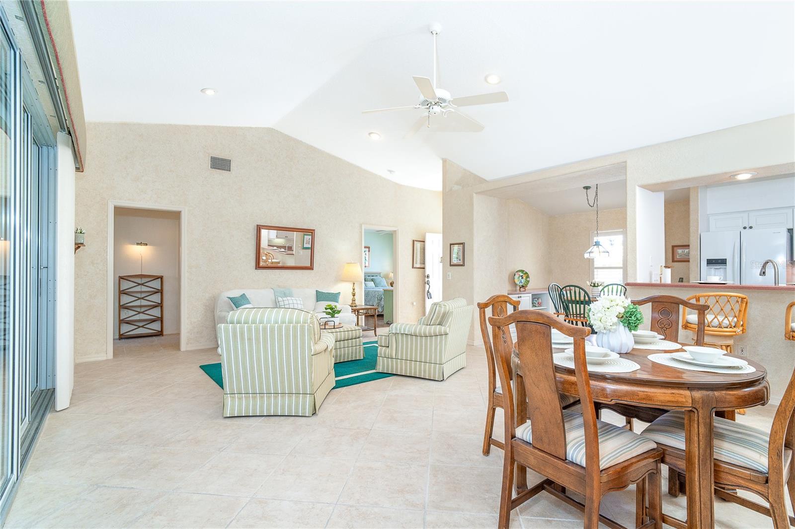 Nestled within the gated Oyster Creek Golf Community, this stunning TURNKEY/FURNISHED home offers an unbeatable combination of elegance, comfort, and an active Florida lifestyle. Residents enjoy access to a wealth of amenities, including a clubhouse, heated pool, spa, fitness center, bocce, tennis, and pickleball courts, a library, and a variety of social activities. Plus, the community's private golf course requires no membership fees! Your HOA covers cable, internet, lawn care, a sprinkler system, and 24-hour gated security, ensuring a hassle-free living experience. As you enter the neighborhood, you'll be captivated by the manicured lawns and impeccably maintained homes.This beautifully designed 2-bedroom, 2-bathroom home offers a versatile Den/3rd Bedroom with a detached walk-in closet, providing a great option. The enclosed sunroom overlooks the 10th hole of the golf course and a serene water view--perfect for unwinding or entertaining. A private office space off the garage, complete with its own entrance, adds even more functionality.Inside, you'll find tile flooring throughout, with vinyl plank flooring in the bedrooms. Recent upgrades include a NEW HVAC system, NEW ROOF, and fresh Exterior Painting on the front of the home, soffits, and interior ceilings. Accordion and standard shutters provide storm protection, while interior plantation shutters add a charming Florida touch. Thoughtful built-ins in the den, office, and dinette area offer additional storage solutions.With its expansive kitchen, open-concept living and dining areas, and seamless indoor-outdoor flow, this home perfectly captures the essence of Florida living. The Dinette area off the kitchen has built in's to accommodate any chef's needs for storage and additional dining space.The spacious primary suite boasts a spacious walk-in closet, private sliders to the sunroom, and a luxurious ensuite bathroom featuring a walk-in shower and direct access to the laundry room for added convenience. The second bedroom also includes a built-in closet, while the den/study can easily serve as a third bedroom with a detached walk in closet. The second bathroom offers double sinks and a walk-in shower.Outdoor enthusiasts will love the beautifully landscaped yard with curbing, the screened-in lanai, and the peaceful golf course and water views. A well system keeps irrigation costs low. The epoxy-coated garage floor adds a polished touch, while built-in cabinets provide extra storage. A retractable garage screen allows you to enjoy Gulf breezes while working in the garage. Don't miss this opportunity to own a piece of paradise!