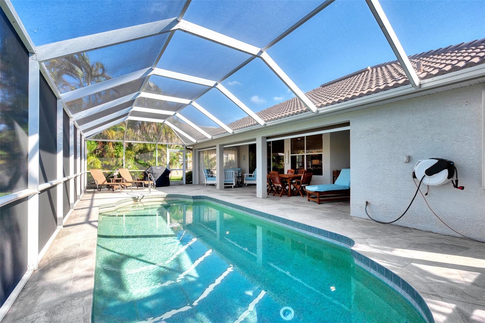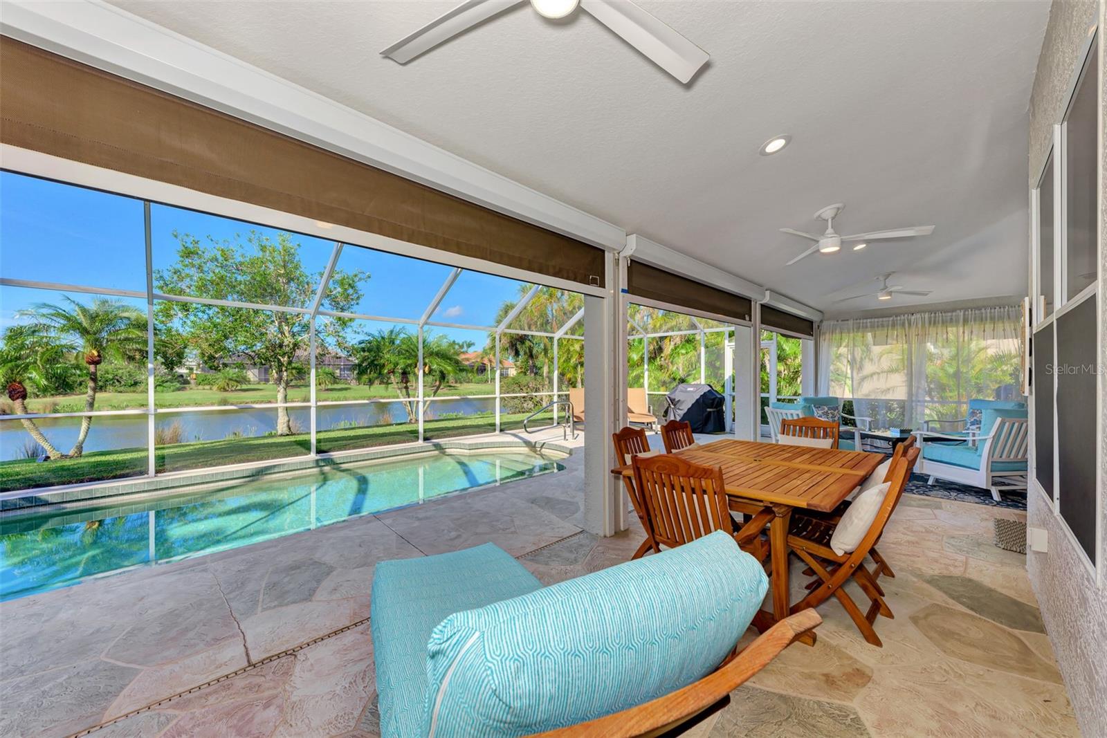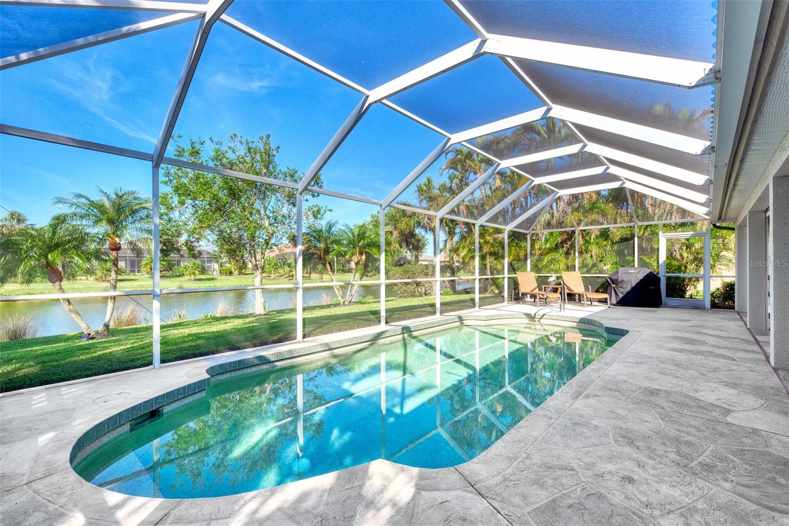 Discover the latest in modern design and coastal living by owning this beautifully remodeled and furnished "Move-In Ready" 3-bedroom , 2-bathroom Florida home in Riverwood's Silver Lakesneighborhood. Nestled on a beautifully landscaped, premium waterfront lot, this well-appointed home showcases both style and comfort. Interior and exterior highlights include designer lighting and fans, updated wood kitchen cabinetry, luxurious quartz countertops, a tasteful tile backsplash, stainless appliances, and quality vinyl flooring throughout. Pocket sliding glass doorsopen the great room to a rare, expansive covered lanai--an ideal space for entertaining or relaxing by the heated pool. The Primary Bedroom Suitefeatures two spacious closets and convenient lanai access through the remodeled ensuite bathroom, which includes a walk-in showerand dual sink vanity. SIGNIFICANT ADDED VALUE INCLUDES A BRAND-NEW TILE ROOF ( 2025), enhanced landscaping, excellent curb appeal, a decorative engraved driveway, and upgraded storm shuttersfor peace of mind. Ask the agent for more details and experience the Florida lifestyle in Riverwood--a gated, golf-centric, resort-style community. Enjoy walks or bike rides along tree-lined streets, invigorating tennis or pickleball matches, swimming in the Jr. Olympic pool, relaxing in the hot tub, or joining fitness classesat the Fitness Center. The Activity Center offers a variety of programs and social events. Recognized as an Audubon Green Community, Riverwood is known for preserving natural Florida habitats. Additional amenities include lawn croquet, bocce courts, an art studio, library, and a dedicated dog park. Memberships to Riverwood Golf Cluband the Riverwood Private Beach Club on Manasota Key are available based on availability and applicable fees. Ideally locatedbetween Sarasota and Fort Myers on Florida's West Coast, this home is minutes from dining, shopping, boating, cultural events, and the pristine beaches of Southwest Florida. This home is truly a gem--schedule your private tour today and make it yours!