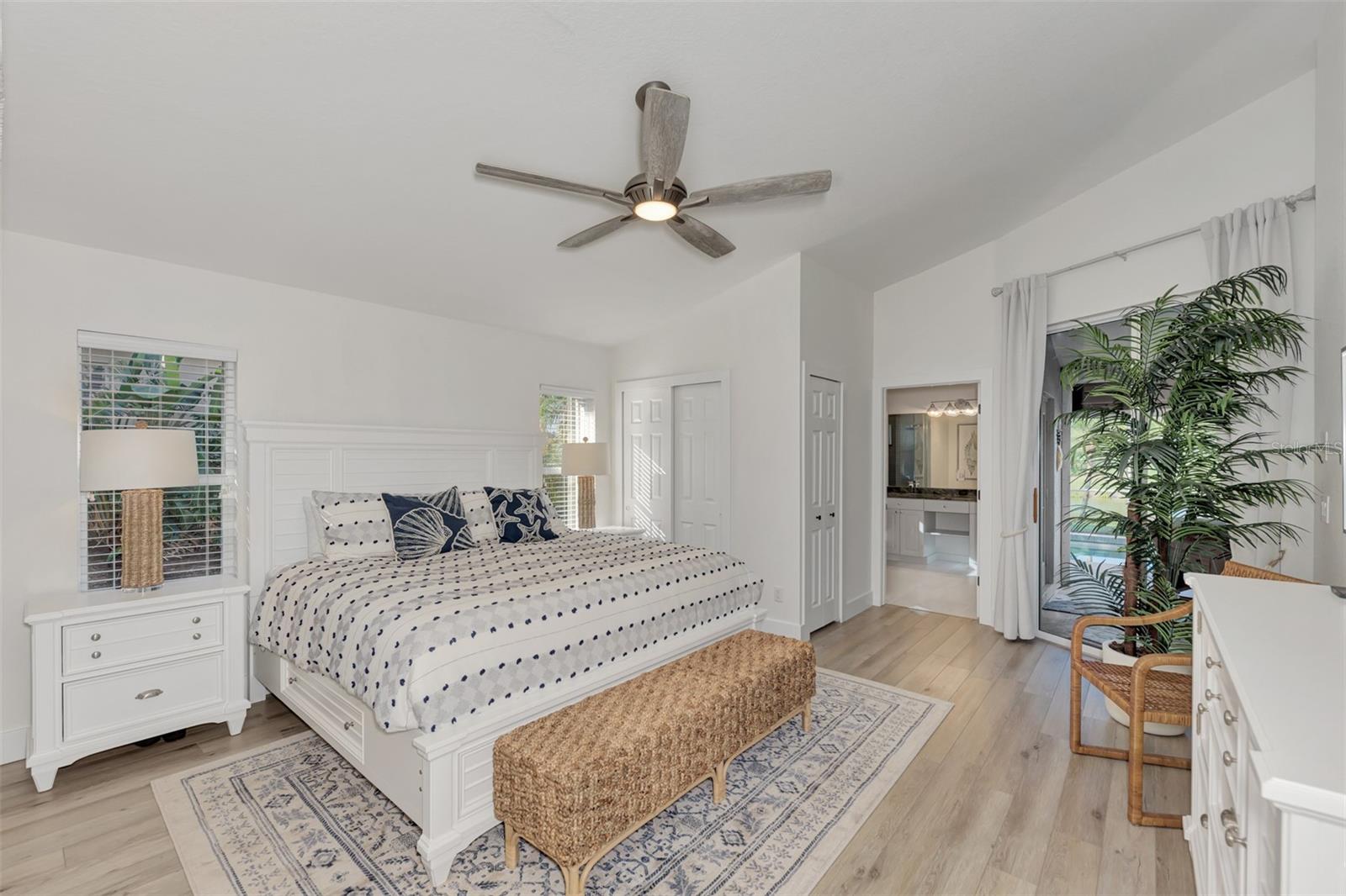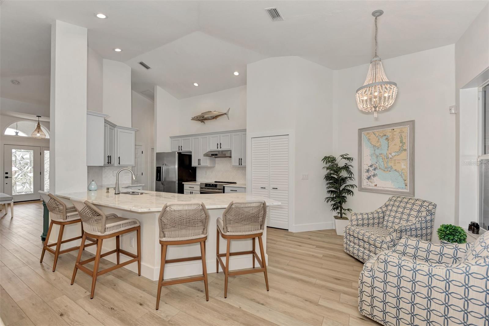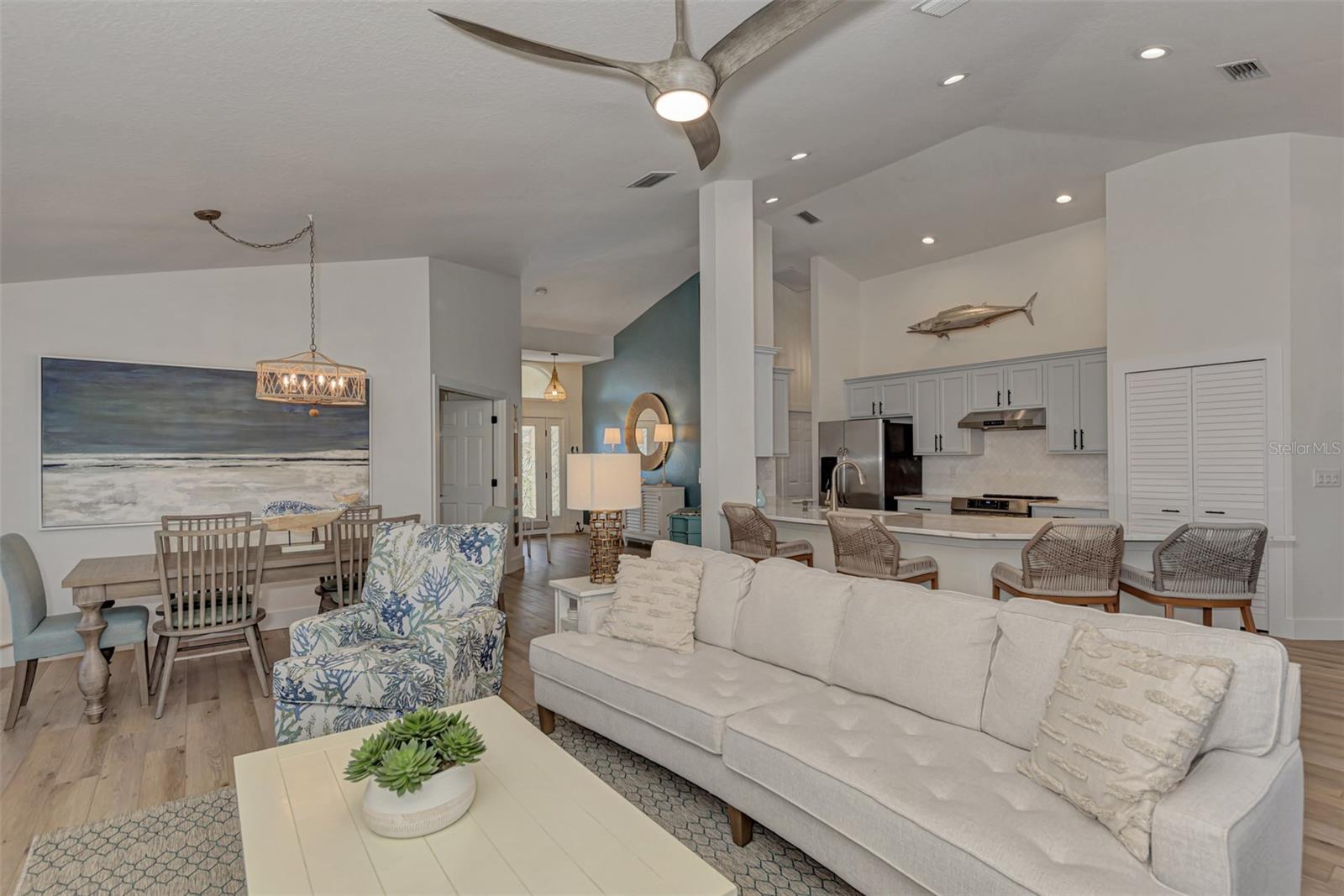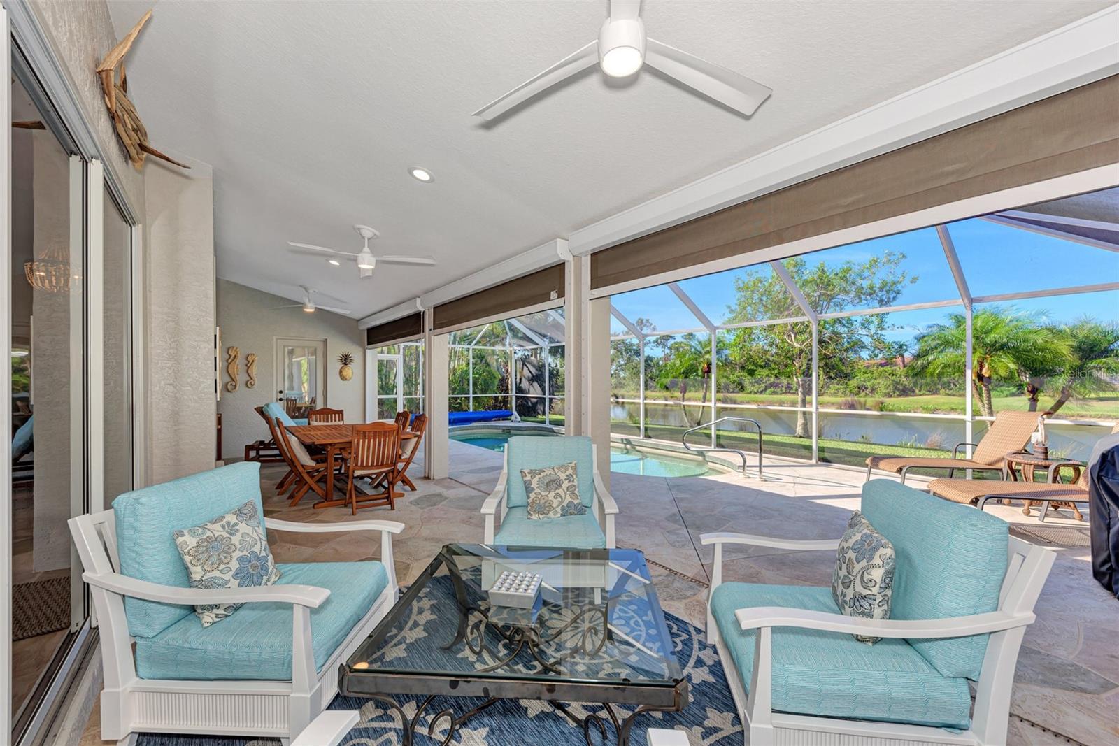 Discover the latest in modern design and coastal living by owning this beautifully remodeled and furnished "Move-In Ready" 3-bedroom , 2-bathroom Florida home in Riverwood's Silver Lakesneighborhood. Nestled on a beautifully landscaped, premium waterfront lot, this well-appointed home showcases both style and comfort. Interior and exterior highlights include designer lighting and fans, updated wood kitchen cabinetry, luxurious quartz countertops, a tasteful tile backsplash, stainless appliances, and quality vinyl flooring throughout. Pocket sliding glass doorsopen the great room to a rare, expansive covered lanai--an ideal space for entertaining or relaxing by the heated pool. The Primary Bedroom Suitefeatures two spacious closets and convenient lanai access through the remodeled ensuite bathroom, which includes a walk-in showerand dual sink vanity. SIGNIFICANT ADDED VALUE INCLUDES A BRAND-NEW TILE ROOF ( 2025), enhanced landscaping, excellent curb appeal, a decorative engraved driveway, and upgraded storm shuttersfor peace of mind. Ask the agent for more details and experience the Florida lifestyle in Riverwood--a gated, golf-centric, resort-style community. Enjoy walks or bike rides along tree-lined streets, invigorating tennis or pickleball matches, swimming in the Jr. Olympic pool, relaxing in the hot tub, or joining fitness classesat the Fitness Center. The Activity Center offers a variety of programs and social events. Recognized as an Audubon Green Community, Riverwood is known for preserving natural Florida habitats. Additional amenities include lawn croquet, bocce courts, an art studio, library, and a dedicated dog park. Memberships to Riverwood Golf Cluband the Riverwood Private Beach Club on Manasota Key are available based on availability and applicable fees. Ideally locatedbetween Sarasota and Fort Myers on Florida's West Coast, this home is minutes from dining, shopping, boating, cultural events, and the pristine beaches of Southwest Florida. This home is truly a gem--schedule your private tour today and make it yours!