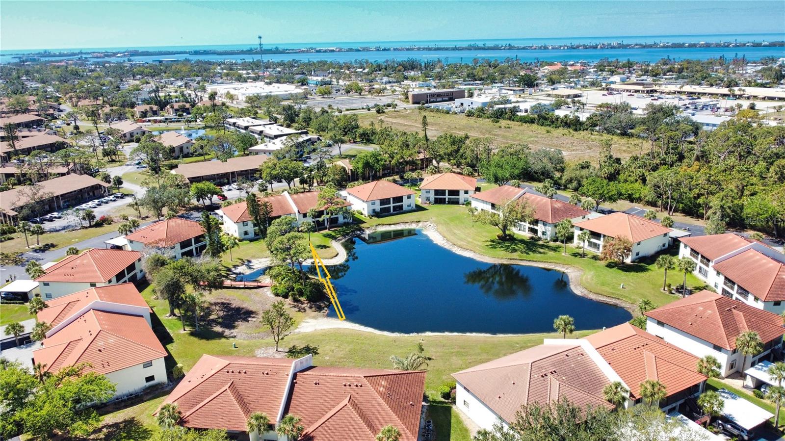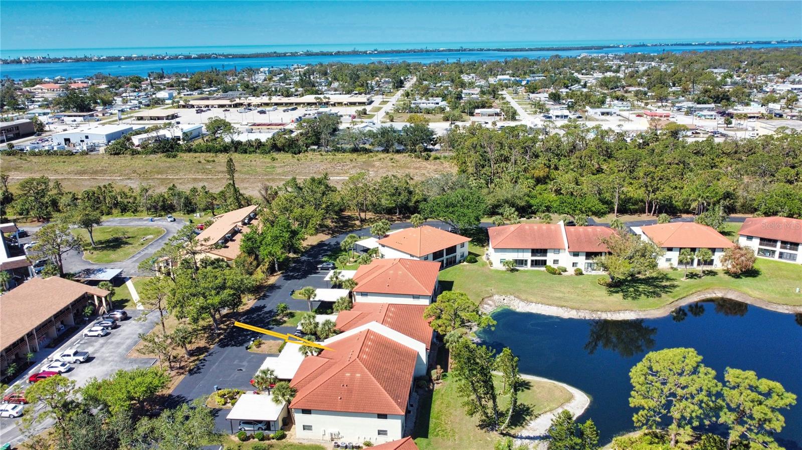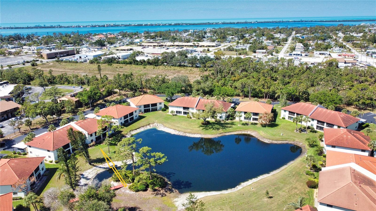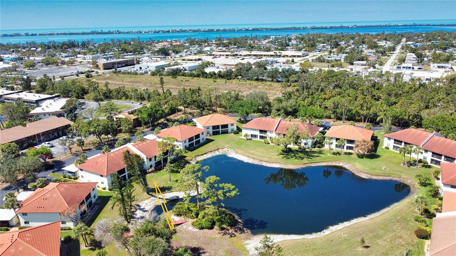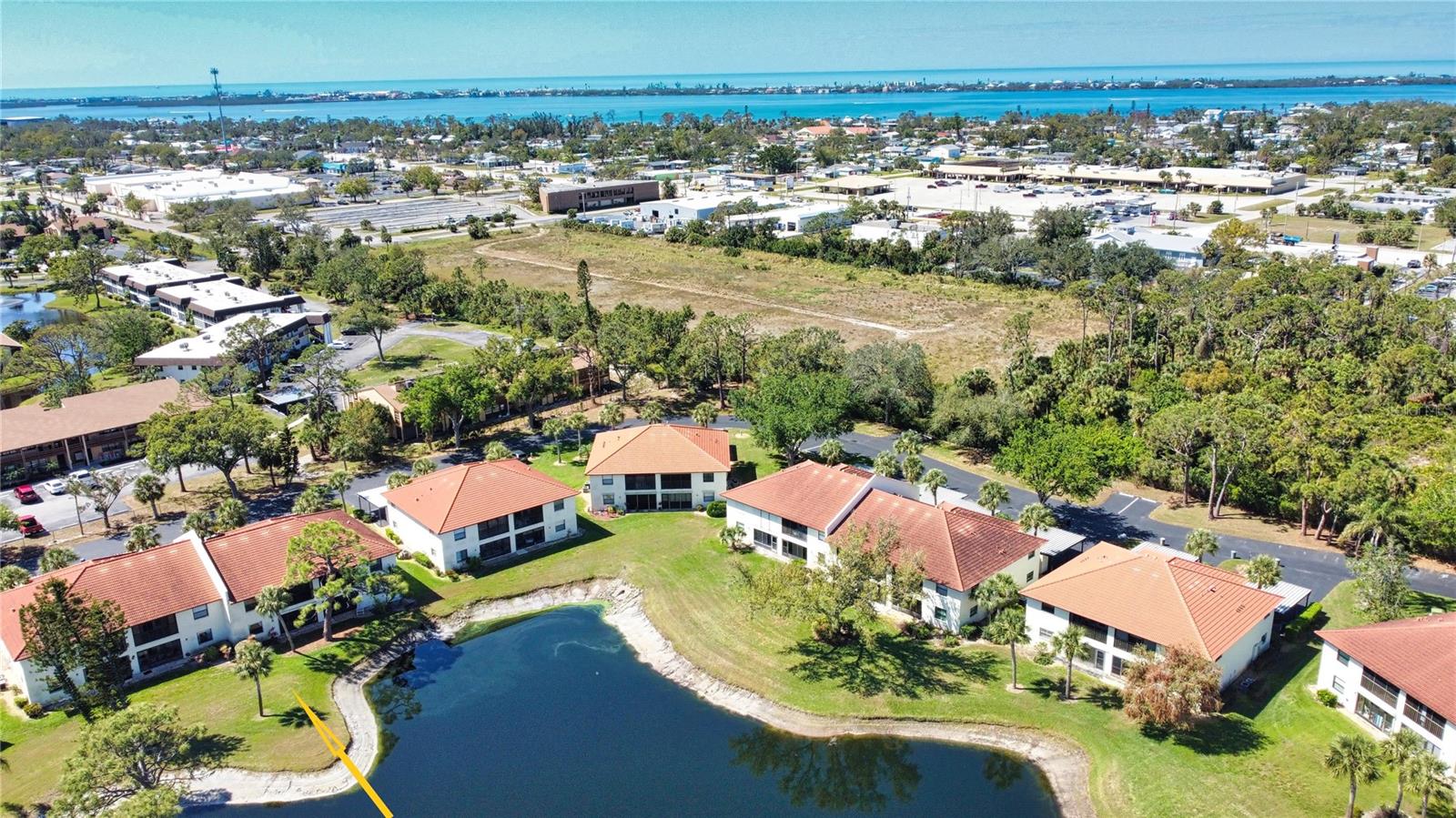 One or more photo(s) has been virtually staged. Welcome to Your Florida Retreat in Pine Hollow!Discover the perfect blend of comfort and style in this beautifully maintained first-floor condo, located in the exclusive gated community of Pine Hollow. This home has been thoughtfully updated to enhance both aesthetics and functionality, making this home truly move-in ready. Step inside to find meticulously maintained tile flooring throughout, modernized lighting fixtures, and a custom-built, lighted nook, that was originally a wet bar. The fully updated kitchen features soft-close cabinets and drawers, slide-out shelving for easy access, and a charming greenhouse window--perfect for displaying plants or your favorite dcor. A laundry closet with a newer 2020 dryer adds convenience, while a private covered carport and exterior storage shed provide additional storage space. The spacious northern-exposure lanai, remains cool and comfortable year-round, allowing you to enjoy the outdoors at any time of day. Unlike most units, there are no doors separating the living area from the lanai, creating a seamless indoor-outdoor living experience. Just steps from your lanai, a beautiful pond offers serene water views and a tranquil setting for relaxation. For added security and storm protection, the lanai side of the home features a roll-down hurricane shutter. Major updates include a new tile roof (2021), water heater (2022), and HVAC system (2015), ensuring lower maintenance costs and energy efficiency. The HOA covers exterior maintenance, pest control, pool upkeep, sewer, trash, and water--giving you peace of mind and allowing you to fully enjoy Florida living. Located just 3.5 miles from Manasota Key, you'll have easy access to pristine beaches, stunning sunsets, and waterfront dining. Shopping, entertainment, and healthcare facilities, including HCA Hospital and the YMCA, are just minutes away. This new-to-market** gem is an incredible opportunity to own a slice of coastal paradise in one of Englewood's most sought-after communities. Don't wait--schedule your private showing today!