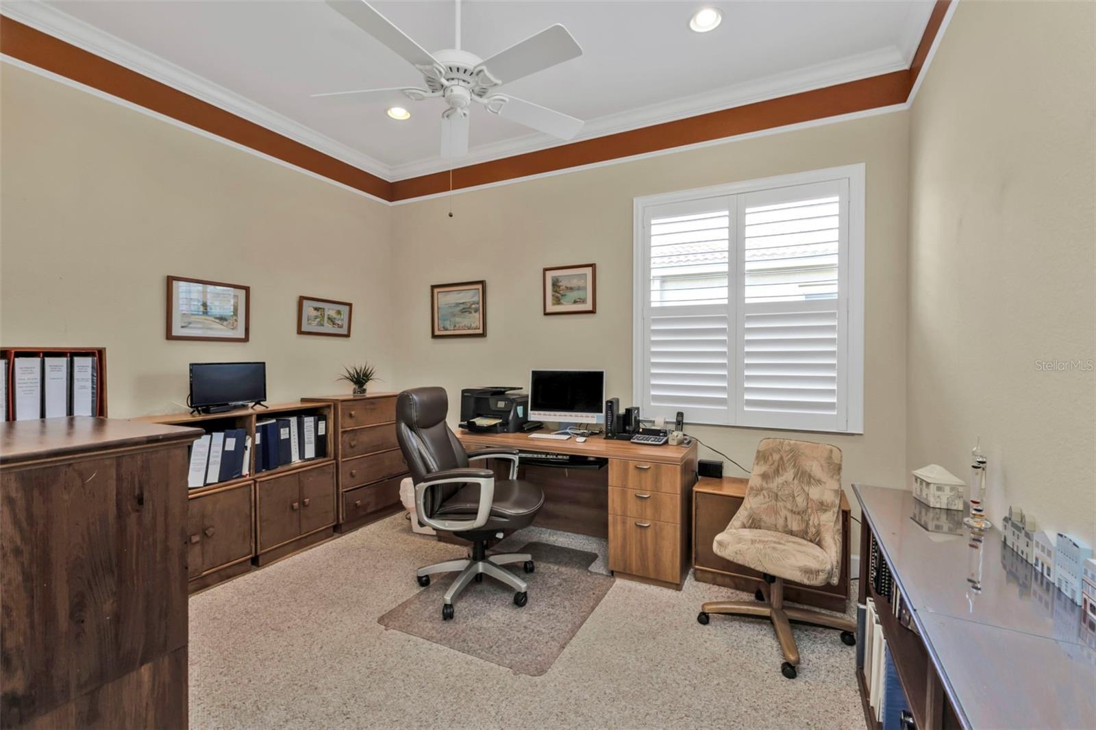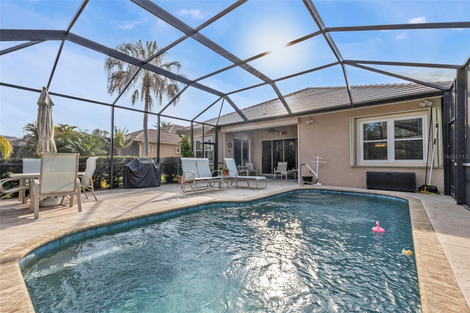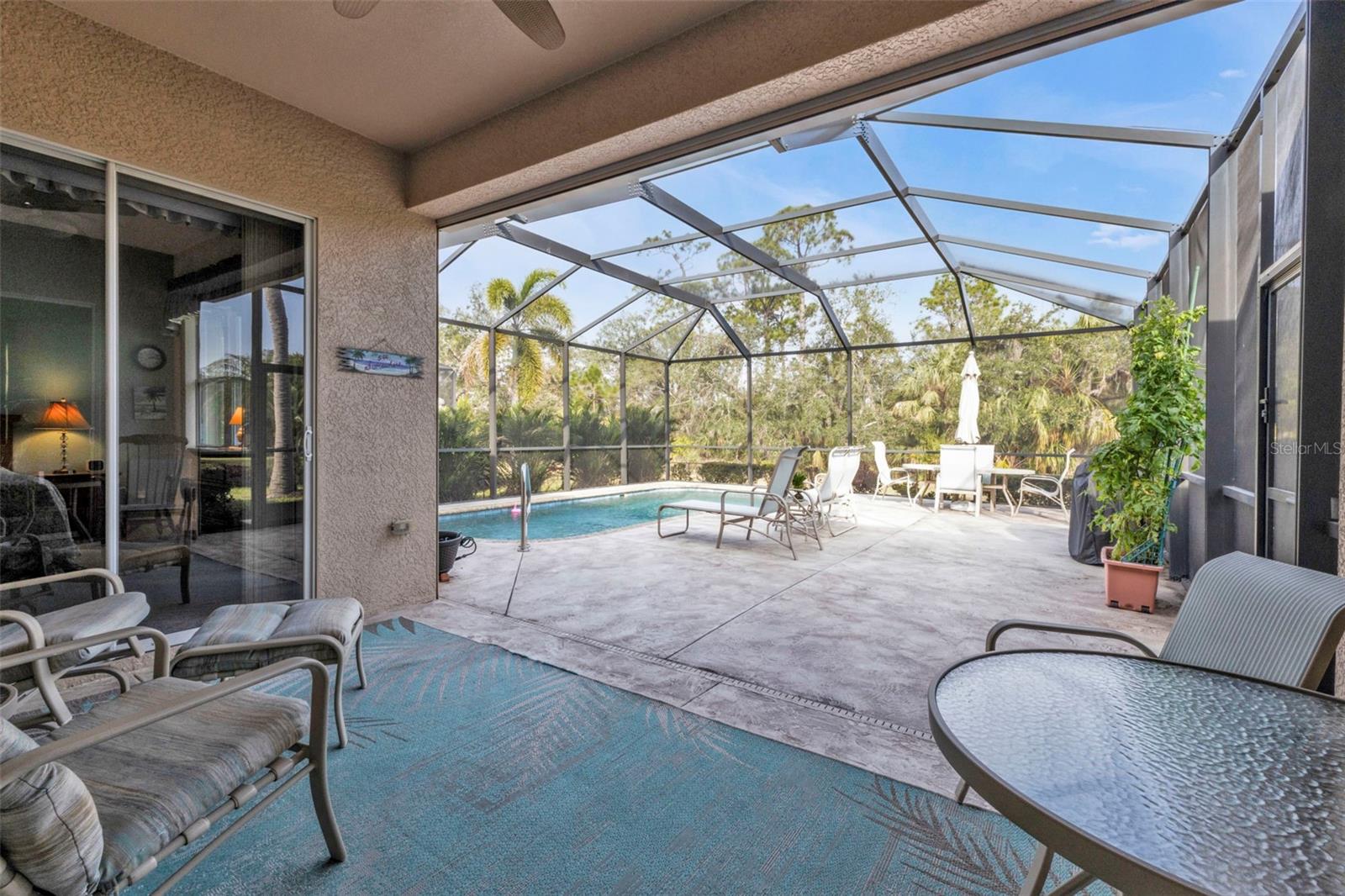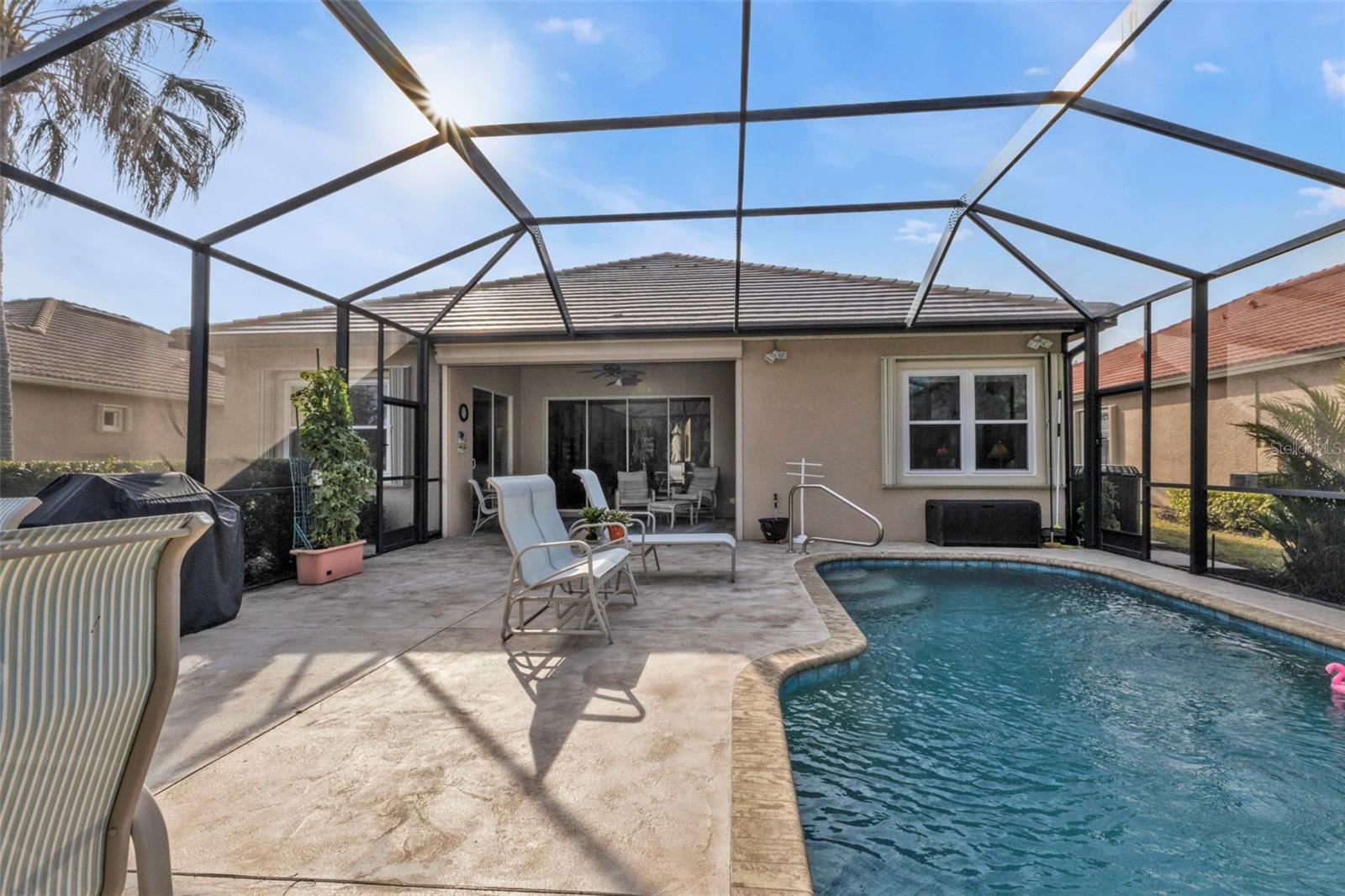 WOW Big reduction on this lovely 2 bed 2 bath W/LARGE DEN w/doors to use as 3rd Bedroom home WITH BRAND NEW ROOF located in Riverwood an Amenity Rich Gated Golf Course Community. Home Features BRAND NEW POLYGLASS TU PLUS ROOF OCT 2024, Custom Hurricane Shutters for easy closing providing you with ease and peace of mind. The outdoor area of your living features an Oversized Enclosed Lanai with plenty of room for patio/dining furniture overlooking peaceful and private setting and a pond view. The living room is perfect for entertaining and flows out the sliding glass doors into the covered patio area overlooking your pool and private back yard. Your Primary Bedroom features not one but two Walk-In Closets! The Primary bath has large walk-in shower, two separate sink areas, and a soaker tub as well. This highly sought after split floor plan is perfect for your family or guests to have a private room/bathroom area! Your Den/Study office area is large enough to accommodate your office and other furniture for TV viewing or arts and crafts and easy to be used as 3rd bedroom. The Dining area is briming with sunlight with plenty of windows and boasts views of your pool/patio area and private peaceful back yard! The home features Plantation custom window treatments and so many more extras like crown molding. You will not want to miss out on this well-appointed home located in Riverwood, a premier Gated Golf Course Community in Southwest Florida offers Amenities and Activities, including a large resort-style pool w/lap lanes, a walk-in shallow end, and a separate hot tub, six new Pickleball Courts, fantastic and well maintained Har Tru tennis courts w/tennis pro, a new fantastic large State-of-the-Art Fitness center, two Dog Parks, Lawn Croquet, Bocce Courts, Arts and Crafts, and many social activities organized by a full time Community Activities Director. Riverwood Embrace the Natural Beauty while taking long walks or runs on the mature tree lined sidewalks and tranquil ponds and lakes. The community is surrounded by a 4.5 Star rated Golf Club (no mandatory membership), adding to the active lifestyle of Riverwood. The Riverwood Private Beach Club is conveniently located on Englewood Beach with full time staff, private parking, grills, covered areas, restrooms and showers (current wait list). When you want to experience and enjoy the surrounding area, this outstanding community is close to Beautiful Beaches, Sporting Venues, World-class fishing, boating, dining, upscale resorts, and shopping are just minutes away. This Gated Golf Course Community is conveniently located near the new Sunseeker Resort, which has a variety of restaurants open to the public, the Tampa Rays and Atlanta Braves Spring Training facilities, Boating, World-Class Fishing, and the many beautiful beaches of Southwest Florida, Riverwood's location provides access to shopping, recreation, entertainment, restaurants, and fantastic beaches! CDD fee is included in property taxes. (more photos coming!)