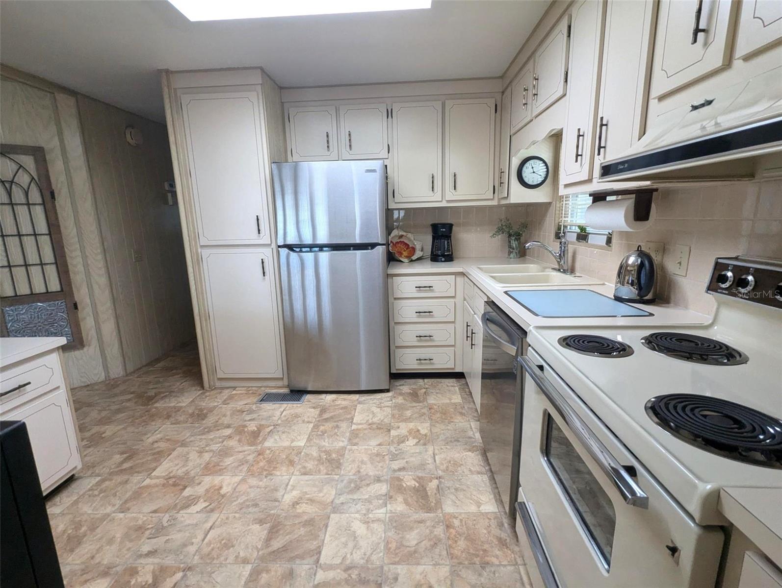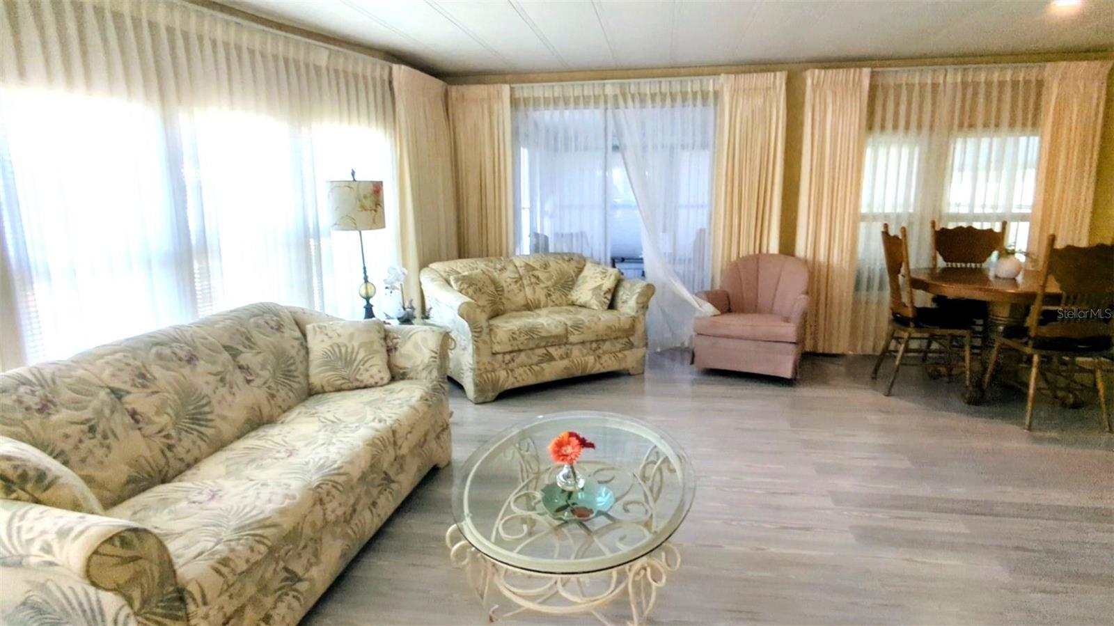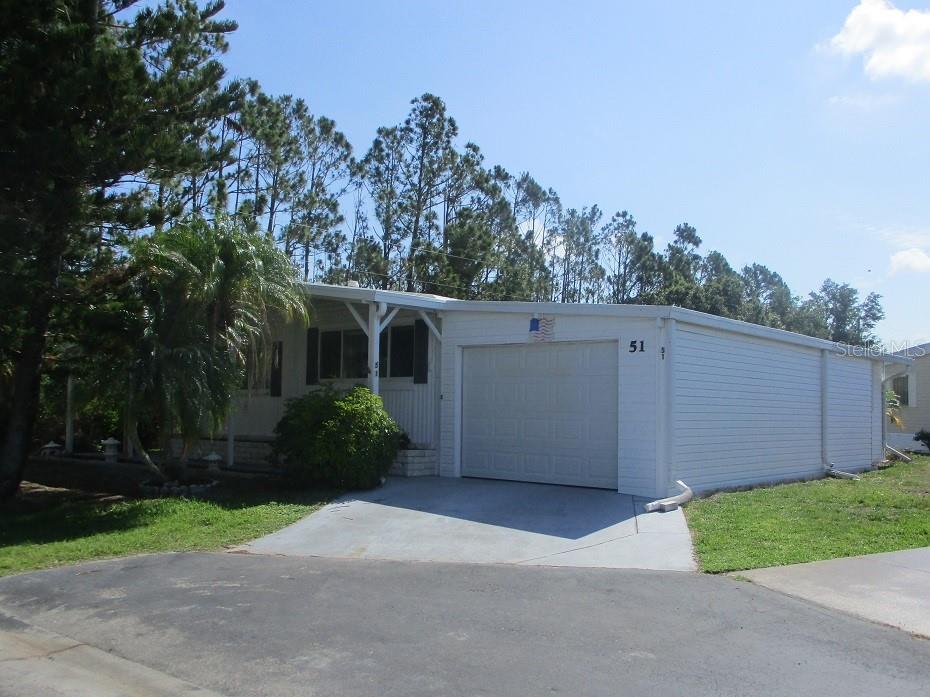 Welcome to 400 Sumac a well-maintained home perfect for your Florida home. This home features 2013 New windows in living space, 2018 new Lanai Windows, 2020 new vapor barrier and insulation using 10ML and R19 and 2022 new toilets and hot water tank. 2023 the laminate flooring was installed in Living room and bedrooms, 2023 new fridge, 2024 New AC, 2025 new Dryer and 2025 the linoleum in the kitchen, hall and 2008 Baths. This home comes fully furnished to include the unwarranted golf cart, charger and 2 bikes for your exercising pleasure. The lanai located off the living room is perfect for morning beverage, light bright sitting area or extra entertaining. The larger lot allows for parking the golf cart in its special location without having to lose parking space in the driveway. This home also features new easy to put up special storm protection on the windows! Home price includes certificate. Maple Leaf is a popular resident owned 55+ gated golf course community with an active resort lifestyle. Features an award winning 18-hole, par 62 golf course, 5 tennis courts, bocce ball, lawn bowling, 2 shuffleboard courts, 4 heated swimming pools, 2 hot tubs, fitness facility, woodworking facility, 75+ clubs/activities, 4 pickleball courts, restaurants, tiki hut/bar and much more. It is true what they say, it's all about the lifestyle in Maple Leaf! One indoor cat only, no dog allowed on interior lot home.