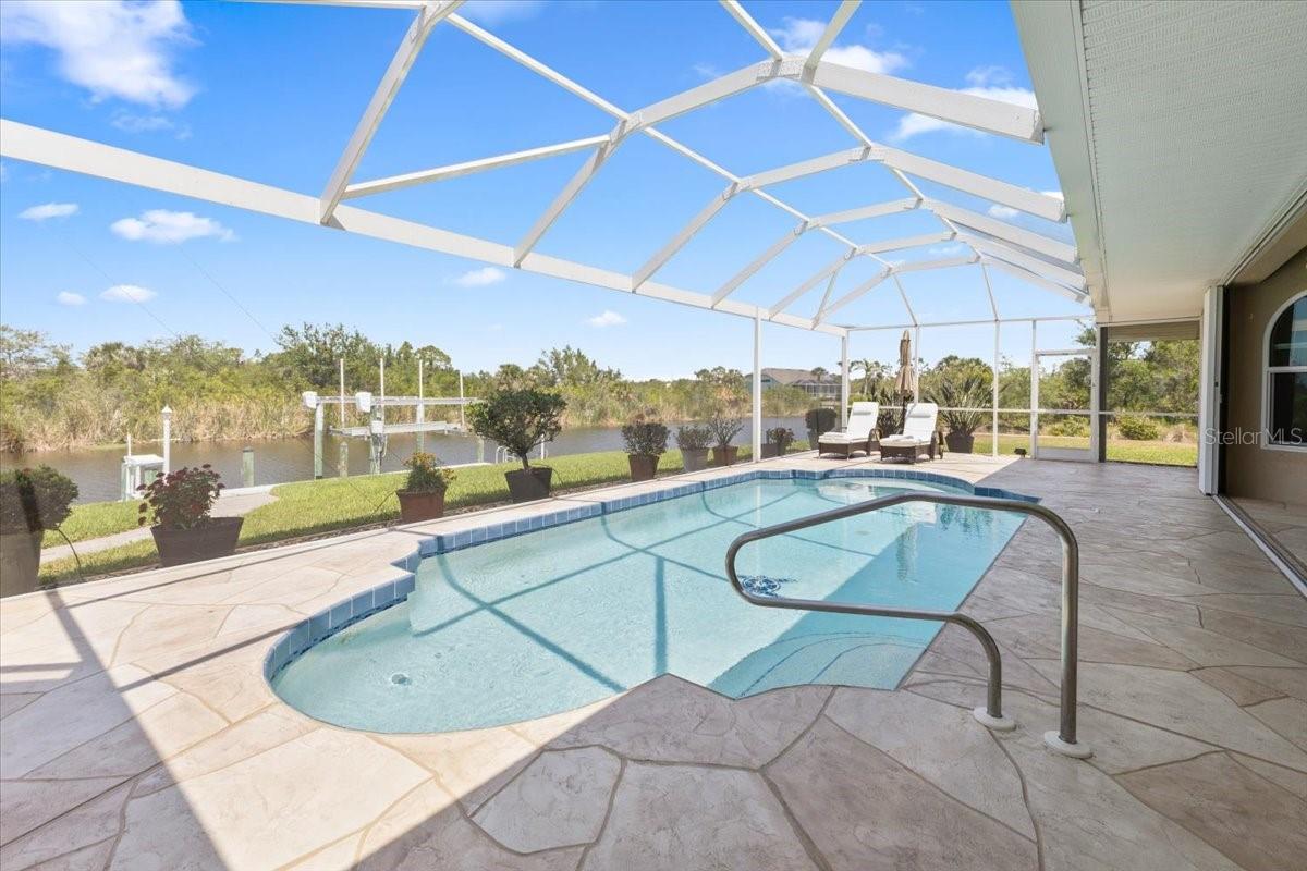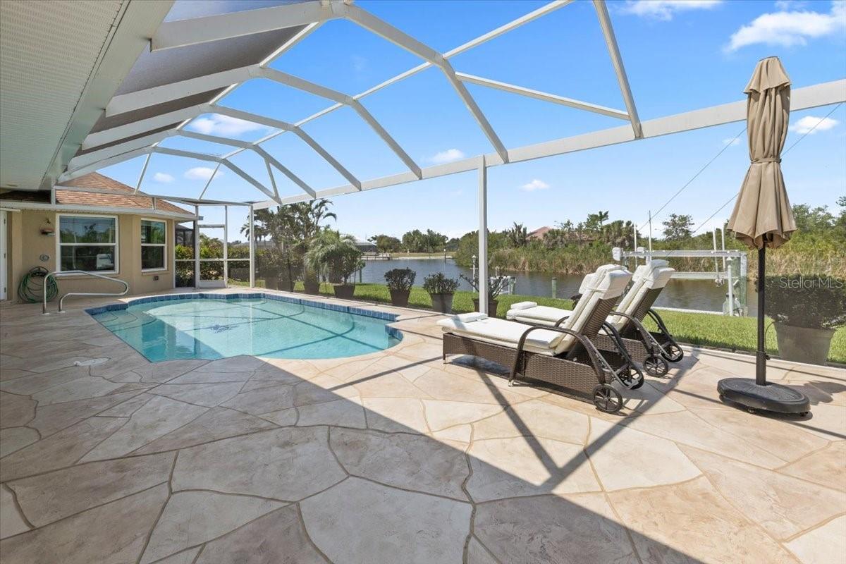 Double Gulf Access Waterfront Lots with Beautifully Updated Pool Home in South Gulf Cove!This well-maintained, heated pool home sits on two Gulf access waterfront lots in the desirable community of South Gulf Cove. The home has been thoughtfully upgraded throughout, ensuring both comfort and peace of mind.Recent Upgrades Include:All-new ductwork and insulationNew soffits and hurricane-rated garage doorPGT hurricane windows throughout the home (excluding lanai doors and front door, which have aluminum shutters)New pool cage and resurfaced poolFully renovated kitchen, master bath, and guest bath -- featuring new appliances and granite countertopsAll-new porcelain tile flooring throughoutWhole-house water treatment systemCustom blinds and draperiesFresh interior paintExterior Features:Decorative driveway and pool deckProfessionally landscaped grounds with concrete borders and full irrigation systemRoof is just 8 years old and withstood recent storms with only minor ridge vent damageConcrete seawall on the main lot, with a 30-ft dock, 9,000 lb boat lift, and both electric and water service at the dockSecond lot features riprap shoreline and is also professionally landscapedThis home is truly move-in ready and ideal for water lovers and boaters alike. The attention to detail and quality upgrades throughout make this a rare find in a sought-after waterfront community!