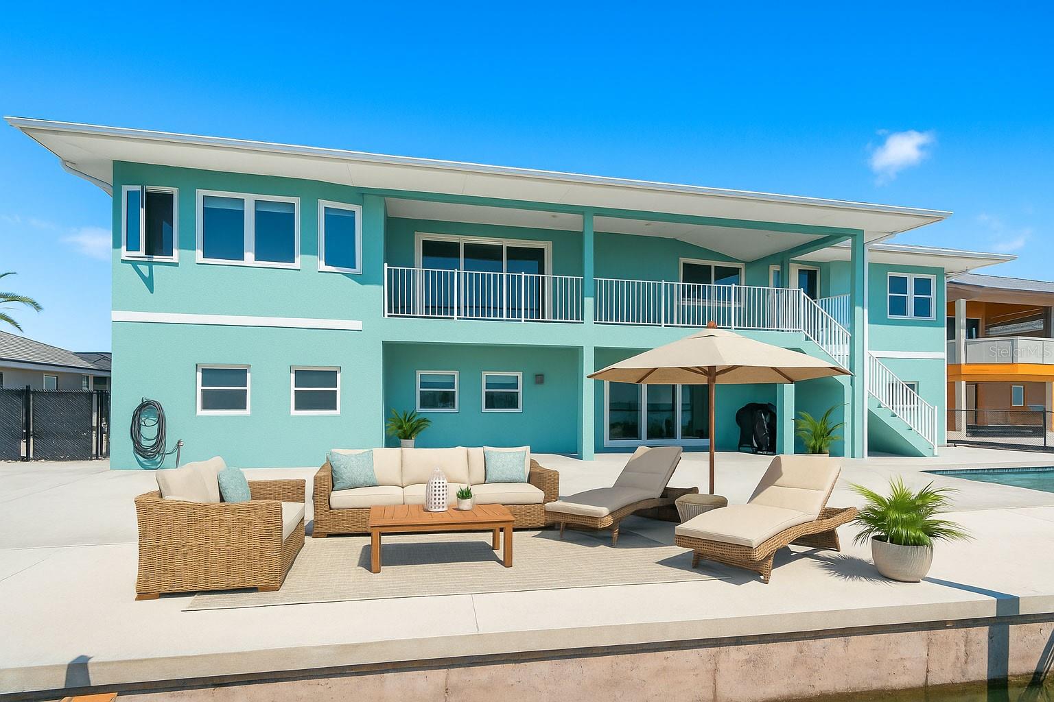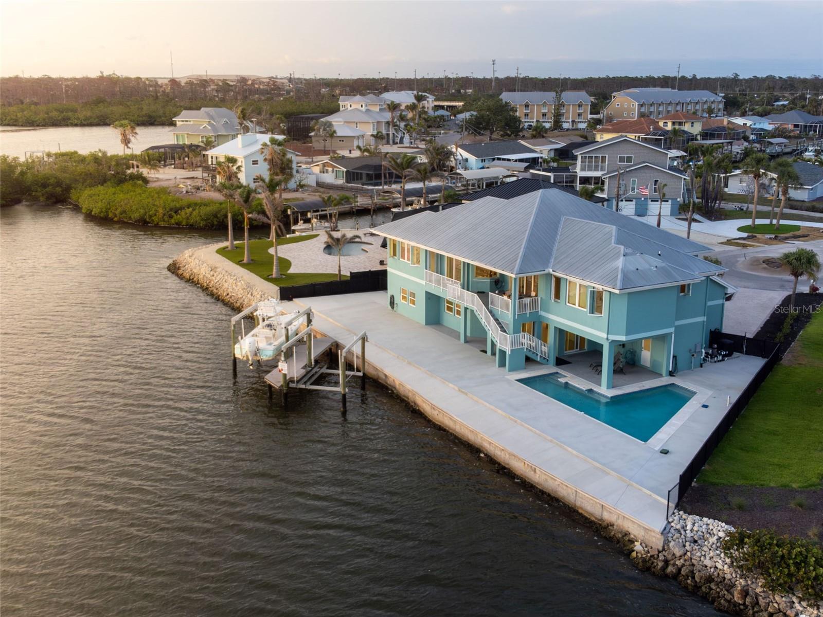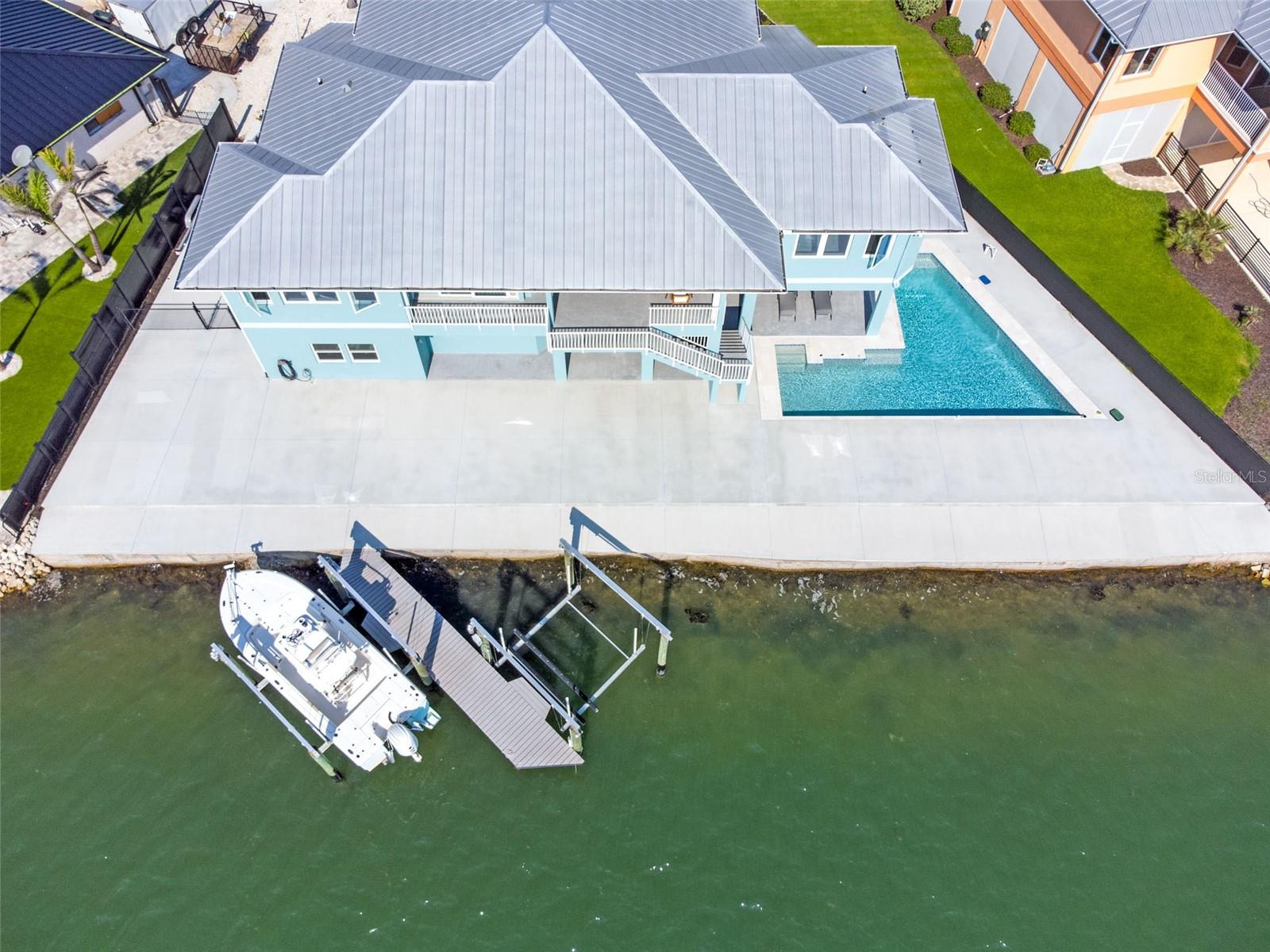 This exceptional WATERFRONT home isn't just a residence, it's a lifestyle crafted for those who live for the call of the OPEN WATER, who appreciate the beauty of the coastal landscape, and who demand uncompromising luxury. Just a few minutes by boat and less than 4 miles to the beautiful sandy beaches! Your boating adventures begin here. Imagine a life where the shimmering expanse of the INTRACOASTAL Waterway is your constant companion, where the day begins with breathtaking sunrises painting the sky and ends with fiery sunsets reflecting on the water. Pull into your circular driveway and note the thoughtful addition of a dedicated parking pad, perfect for your boat trailer or RV. Crafted with a durable METAL ROOF and ROBUST custom concrete construction, this residence boasts HURRICANE IMPACT WINDOWS AND DOORS!The centrally connected dual six-car garage, complete with epoxy flooring and a workshop, offers ample space for your vehicles and hobbies. A convenient half bath, plumbed and ready for completion, offers direct access to the outdoor oasis. Step outside and discover your private paradise: an L-shaped, SALT WATER POOL installed in 2022 (also wired for a hot tub), beckoning for refreshing dips on warm Florida days. The fenced backyard provides a secure and serene environment. But the true allure lies beyond - 152 feet of concrete SEAWALL leading to your private boat dock, equipped with not one, but TWO BOAT LIFTS (13,000 lb and 10,000 lb capacities), ready to cradle your prized vessels. Imagine the ease of setting off for a day on the water whenever the mood strikes, AND within minutes of the Gulf via STUMP PASS. An expansive second-floor terrace, finished with epoxy flooring, offers an elevated vantage point to soak in the PANORAMIC Intracoastal VIEWS. Best of all, with no deed restrictions, your waterfront dreams are truly your own to command.Inside, discover a haven of refined elegance. Ascend via the staircase or utilize the convenience of a PRIVATE ELEVATOR. Throughout the home, 24" x 24" ceramic tile flooring flows seamlessly, accented by sophisticated marble window sills and smooth bullnose corners. Five-inch crown molding and baseboards add a touch of classic luxury, while casement windows adorned with UV shades bathe the interiors in natural light.The open-concept kitchen, living, and dining areas maximize the breathtaking water vistas. The kitchen features built-in stainless steel appliances, solid wood cabinets, and elegant quartz countertops. The dining room, with its tray ceilings and zero-edge glass window framing the water, is perfect for elegant gatherings. Sliding glass doors also lead to the terrace, extending your entertaining space. The well-appointed utility room features a free-standing freezer, a walk-in food pantry, a laundry area with a stackable washer and dryer.Retreat to the primary bedroom suite, where WATER VIEWS greet you each morning. Built-in closets and a spacious walk-in closet offer ample storage, and a private door leads to the terrace. The second bedroom also boasts captivating water views, with its own access to the terrace. The adjacent second bathroom features granite countertops, recessed lighting, and a floor-to-ceiling tiled walk-in shower. The third bedroom guest suite offers privacy, with an en-suite bathroom. The fourth room, with its double pocket sliding doors, offers the flexibility to suit your needs. Don't wait another day. Call today for your private showing!