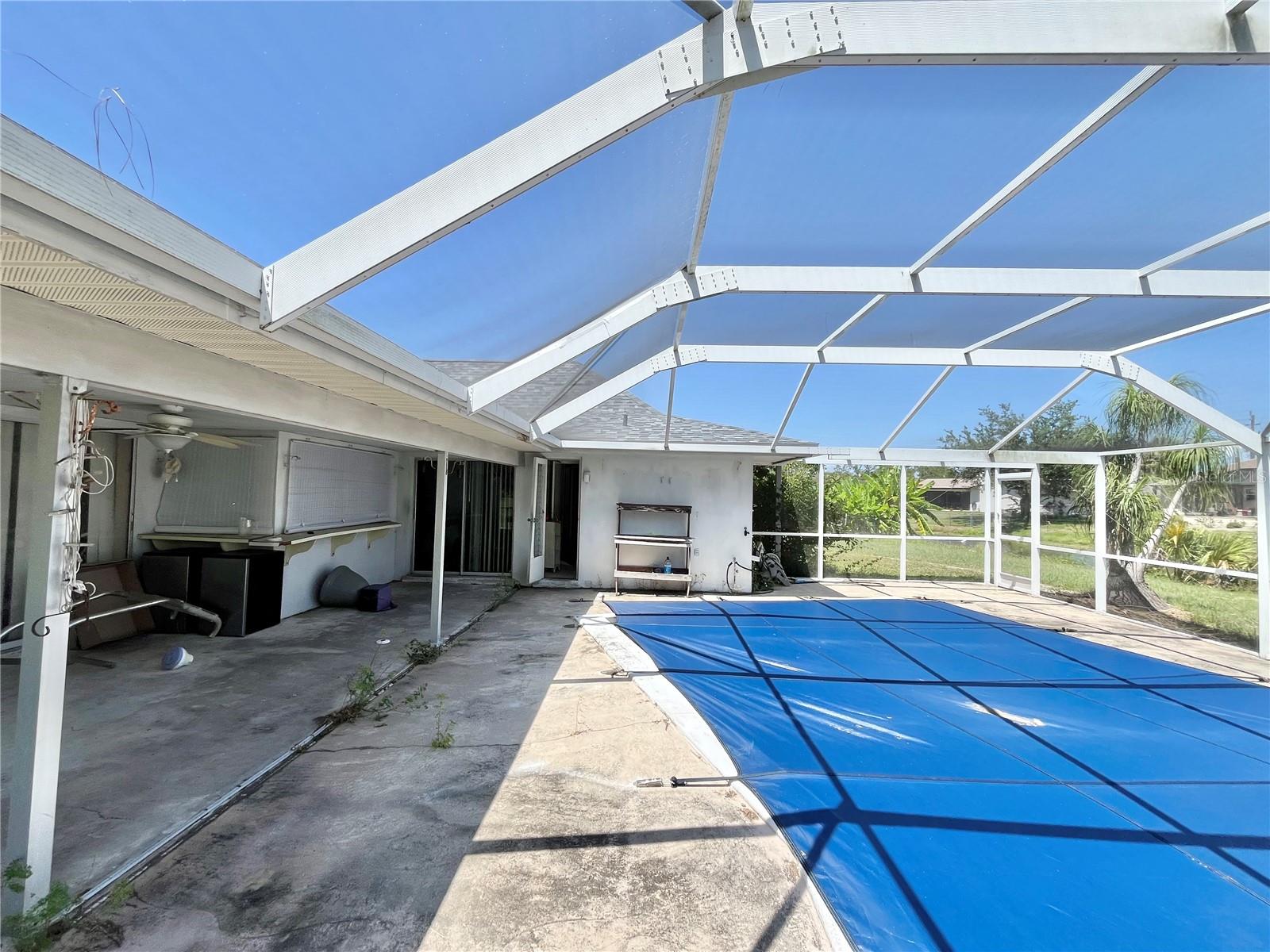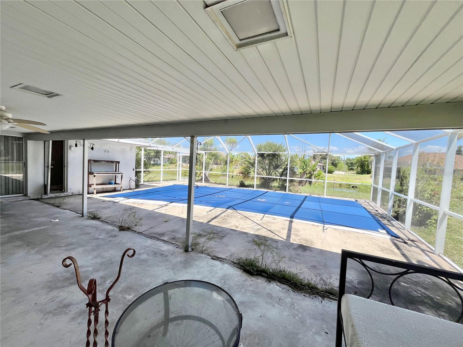 Attention all investors and project doers! Welcome to 22589 Nyack Ave, located in the New York section in the heart of Port Charlotte. This fixer upper has endless potential for someone looking to put in the work. This home features 3 bedrooms, 2 bathrooms, 2 car garage, a POOL, and overlooks a freshwater canal! Split floor plan with two separate living areas, boasting just under 1800sqft of living space while sitting on an oversized lot. Beamed cathedral ceilings, large pool cage with a spacious covered lanai that has direct view to the water. Conveniently located near all the must have amenities. This property does need work, but it has potential! Per the county records, re roof 2017, and newer HVAC.