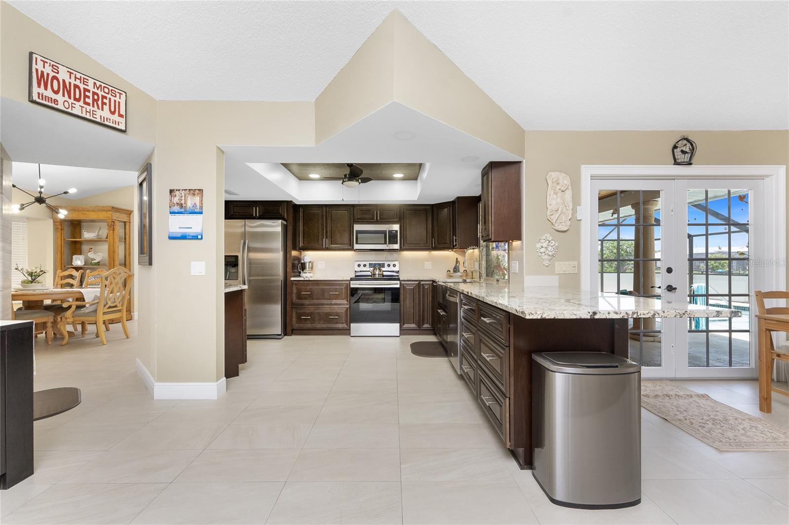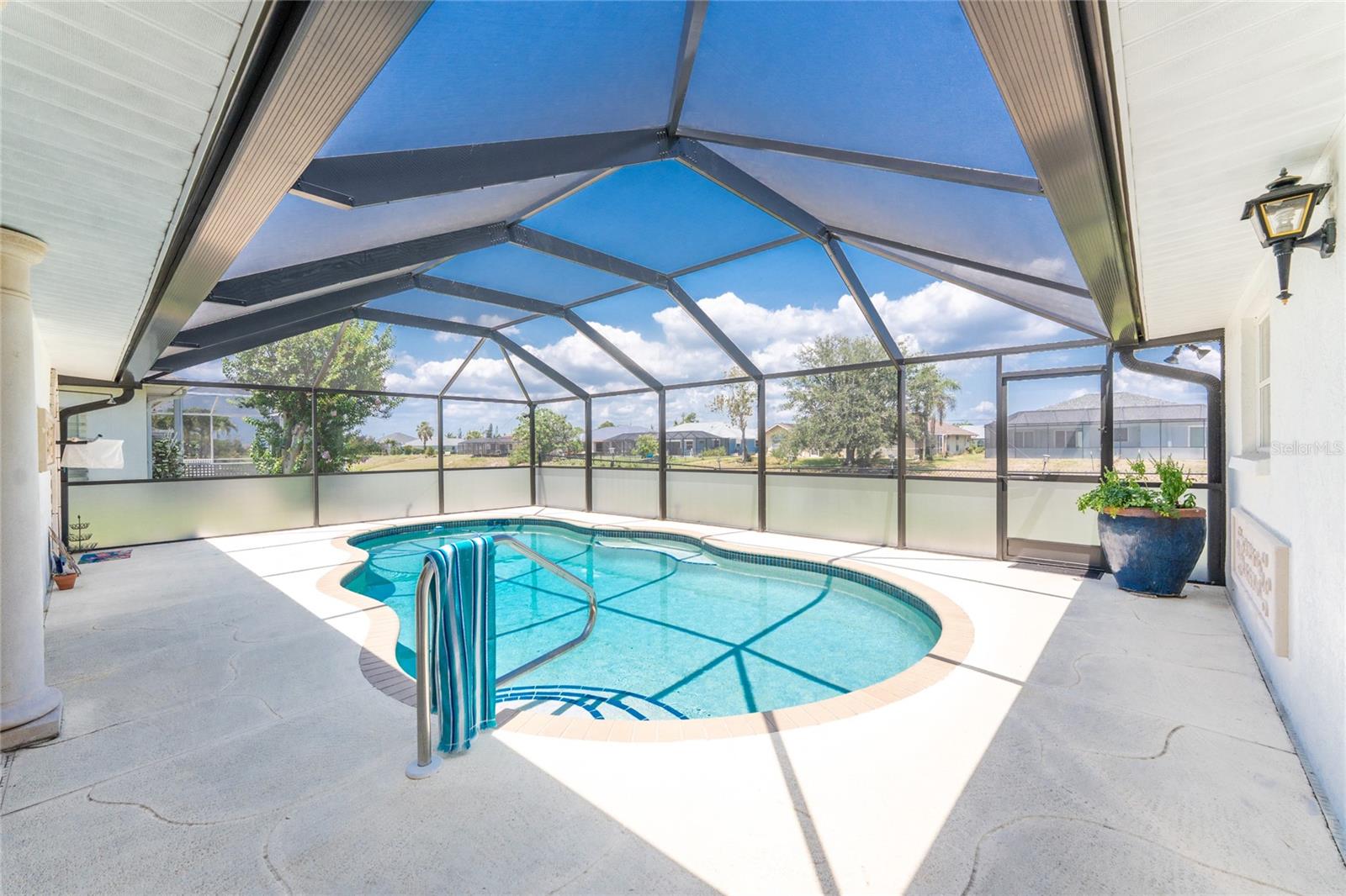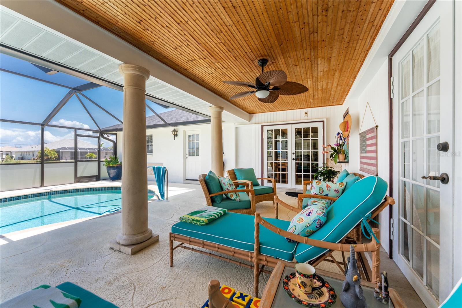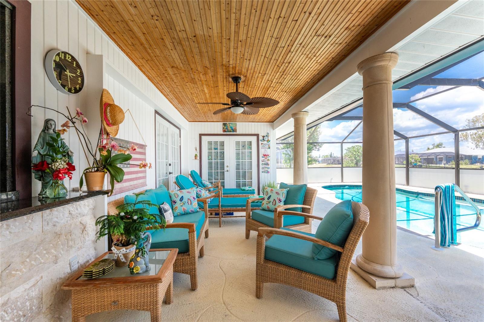 IMMACULATE & FULLY UPDATED, turnkey furnished, waterfront home located in the desirable deed restricted community of Rotonda West. Within the last year, the home has been re-pipped, new pool cage with lower panels featuring privacy screening, new electrical panel, exterior of the home was painted, new gutters on front and side of home, and new roof installed. This one-of-a-kind home features custom built stone columns on the garage door and the grand entry along with french doors and wood-inlay ceiling leading inside. With a myriad of elegant architectural features including vaulted ceilings, stylish mouldings, travertine flooring, upgraded lighting throughout, high end finishes, three sets of french doors leading to your private pool, & SO much more --you will find everything you could ever want in a home and more! This open floor plan is desirable for every occasion featuring a large formal living and dining room with the living area boasting wood flooring and an abundance of natural lighting. The spacious eat-in kitchen area--recently remodeled w/ wood cabinetry including soft-close cabinets and drawers, new recessed lighting, ceiling fan, under cabinet lighting, wood inlay tray ceiling, a farmhouse sink, quality stainless steel appliances, beautiful granite countertops, and a new bay window overlooking the picturesque pool. Entertaining in this home is a breeze with a spacious family room that allows you to expand your living space outside by opening up the new french doors to your private backyard oasis! Enjoy the sun and shade, and cool off in your 28' x 16' POOL with stunning canal views, bathroom access, and lets not forget the added bonus of a fully fenced backyard! There is plenty of room inside with the "split" bedroom layout--the primary suite is separate with a spacious bedroom featuring travertine floors, crown molding & custom moldings around the french doors, two roomy walk-in closets & the spacious ensuite bathroom--encompasses luxury with every finish including exoctic grantie countertops, wood cabinets and pullout drawers, travertine flooring and shower, new soaking tub, tray ceiling with crown molding, recessed lighting, accent wall with shiplap, dual copper sinks, and your very own TV--what more could you want! On the opposite end of the home, there are two guest bedrooms--both have walk in closets, ceiling fans, crown molding, and travertine flooring--and the guest bathroom that has direct access to the pool and features a vessel sink, granite countertop, stylish tiled walls that continue into the Roman shower with a rain head and bench, & the same luxury travertine flooring. Combine all of this with a roomy 2-car garage for all your storage needs. Don't wait, come live the Florida dream! Enjoy the five golf courses Rotonda West offers along with walking trails, pickleball courts and freshwater canals for kayaking all just minutes away. Conveniently located near shopping, restaurants, beaches, fishing, local farmers markets and so much more. Make this home your dream come true.