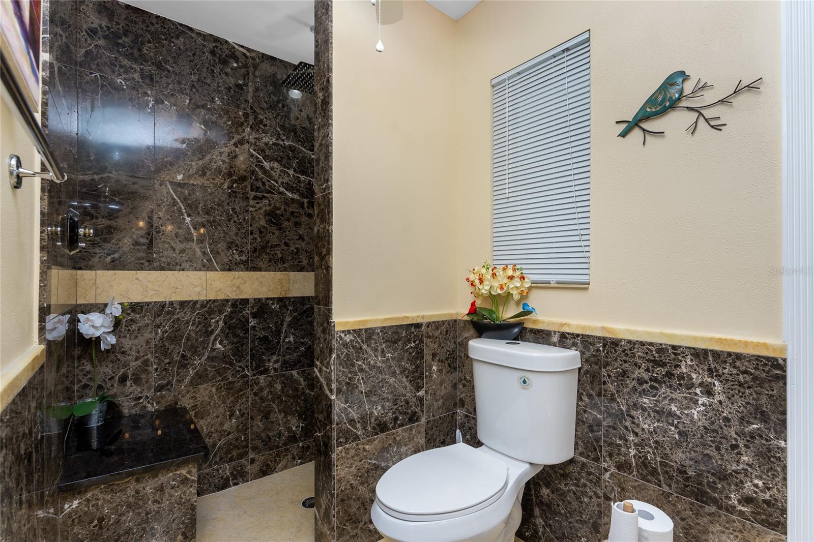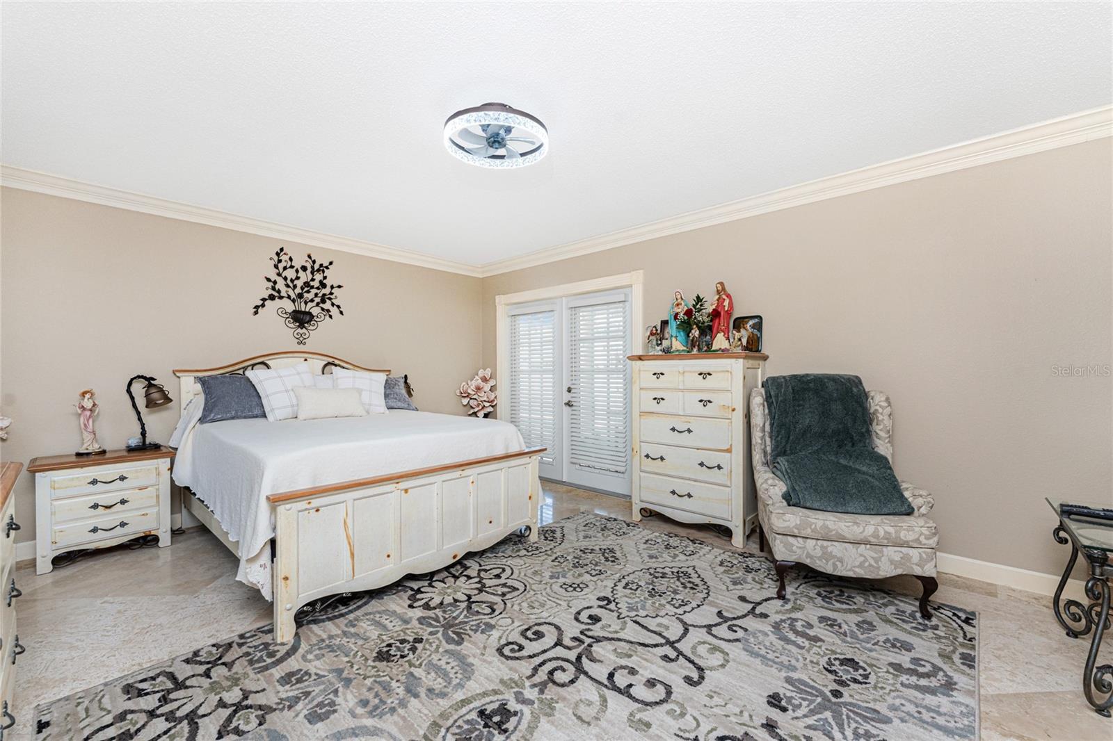 Exterior: French Doors, Lighting, Outdoor Shower, Rain Gutters