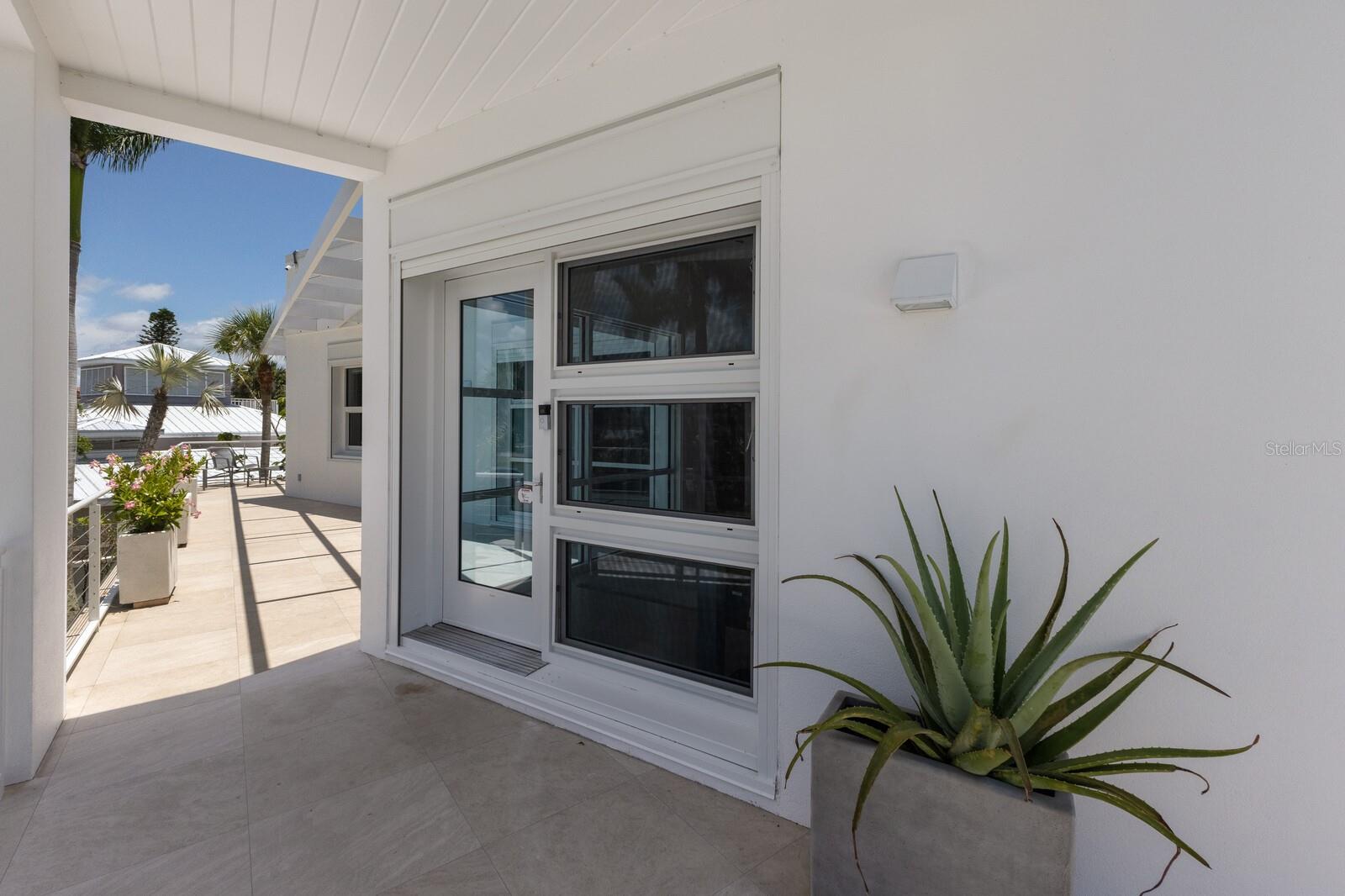 Exterior: Balcony, Hurricane Shutters, Lighting, Other, Outdoor Shower, Private Mailbox, Sliding Doors
