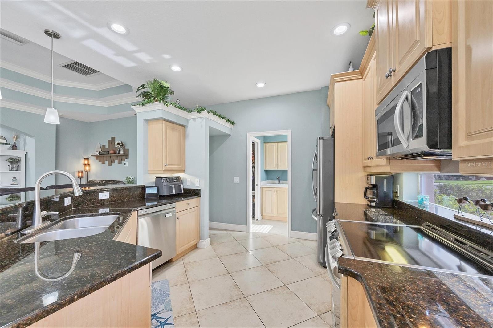 BACK ON THE MARKET DUE TO BUYERS' HOME SALE CONTINGENCY FALLING THROUGH-THEIR LOSS IS YOUR OPPORTUNITY!Welcome to Villa Milano - A Peaceful Retreat in a Prime Location!Tucked inside the charming gated, pet-friendly community of Villa Milano, this beautifully maintained custom-built home blends comfort, character, and thoughtful design. Situated on a desirable corner lot just steps from the community pool, it offers an ideal setting at the intersection of North Port, Port Charlotte, and El Jobean.Built in 2007 with a host of quality upgrades, this light-filled home features a tile roof, paver driveway, and an inviting Great Room floor plan designed for easy living and entertaining. Throughout the home, you'll find stylish architectural touches such as decorative wall accents and elegant double tray ceilings, adding depth and charm to every room.The spacious split-bedroom layout includes two bedrooms, two full baths, and a large den--perfect for a home office or guest overflow. The kitchen is a true showstopper, featuring 45-inch cabinetry, granite countertops, top-of-the-line appliances, and an oversized walk-in pantry.The primary suite is a peaceful retreat with high double tray ceilings, three beautiful, oversized windows that bathe the space in natural light, and direct access to the lanai. The luxurious ensuite bath includes a large walk-in closet, dual vanities, a soaking tub, and a Roman-style walk-in shower for a spa-like experience at home.Step outside to your private lanai, where you'll find a propane-heated, saltwater spa and a fully equipped outdoor kitchen with granite counters, a sink, and refrigerator. This expanded outdoor space is screened with a soaring cathedral cage, finished with elegant pavers, and surrounded by lush landscaping for added privacy.Pet lovers will appreciate the fenced turf area--perfect for Fido to enjoy the Florida sunshine in comfort and luxury.Additional highlights include a large interior laundry room, a two-car garage, public water and sewer, and access to a lovely community clubhouse and pool just a short stroll away. Unlike other homes in the community, this property is uniquely irrigated from the pond--meaning no additional watering expense for your landscaping.Warm, bright, and beautifully cared for--this Villa Milano home is a true gem waiting to welcome you home.