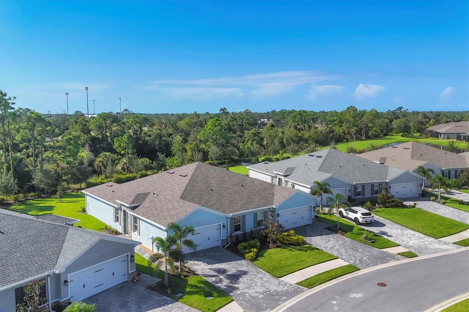 Located near the end of a quiet cul-de-sac, this newly built maintenance-free villa offers a perfect blend of modern elegance and natural beauty. With an open-concept design, high ceilings, and expansive windows, this home is flooded with natural light, offering relaxing views of the surrounding natural habitat.Step into the kitchen, where premium appliances, sleek countertops, and ample cabinetry create an inviting space for both everyday living and entertaining. This home also features a whole-house water filtration system, providing clean, purified water throughout.The spacious bedrooms provide a luxurious retreat, each thoughtfully designed for comfort, while the spa-like ensuite bathrooms offer a serene escape with high-end finishes.Outdoors, the private lanai and surrounding greenery extend the living space, creating an idyllic oasis to relax or entertain while enjoying the peaceful natural surroundings. For added convenience and peace of mind, the lanai is equipped with roll-down hurricane protection, ensuring effortless storm preparedness without sacrificing style.Whether enjoying morning coffee in the fresh air or hosting sunset gatherings, this home embodies peace, sophistication, and convenience. Located in a prime area, this villa offers both seclusion and accessibility, with shopping, dining, and recreational opportunities just moments away.Don't miss this rare opportunity to own a beautifully designed villa in a serene cul-de-sac location--your dream home awaits! Schedule a private showing today!