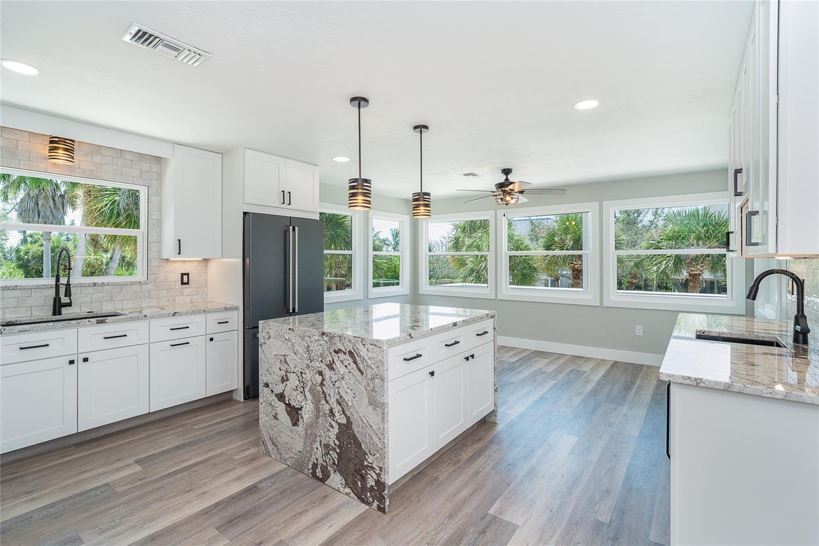 Totally renovated 3 bedroom 2 and 1/2 bath home with a spectacular water view and 3 minute access to the Intracoastal Waterway!!! Dock will allow a good size vessel and there is a boat ramp for launching a kayak. The updates include: new metal roof, flooring throughout, kitchen and bathrooms, air conditioning units, exterior paint, exterior decking and stairs, impact windows and doors, new appliances, fixtures and ceiling fans, ground level decks and storage areas......it is like a new home! There are decks off the front and rear of the home, where you can enjoy glorious sunsets. There are two primary bedrooms, one of each floor. Floor plan allows many areas for privacy and would be an excellent rental should you decide to rent. Located on Don Pedro-Knight-Palm island, a bridgeless barrier island situated between Ft. Myers/Naples to the south and Sarasota/Tampa to the north. Pristine and uncrowded beaches are the highlight, however, there are many other things to capture your attention; shelling and searching for shark's teeth, boating, paddle boarding, kayaking, fishing, observing the abundant wildlife, swimming and "golf carting" around the island. Buy your piece of paradise today to experience the peaceful island life!!!