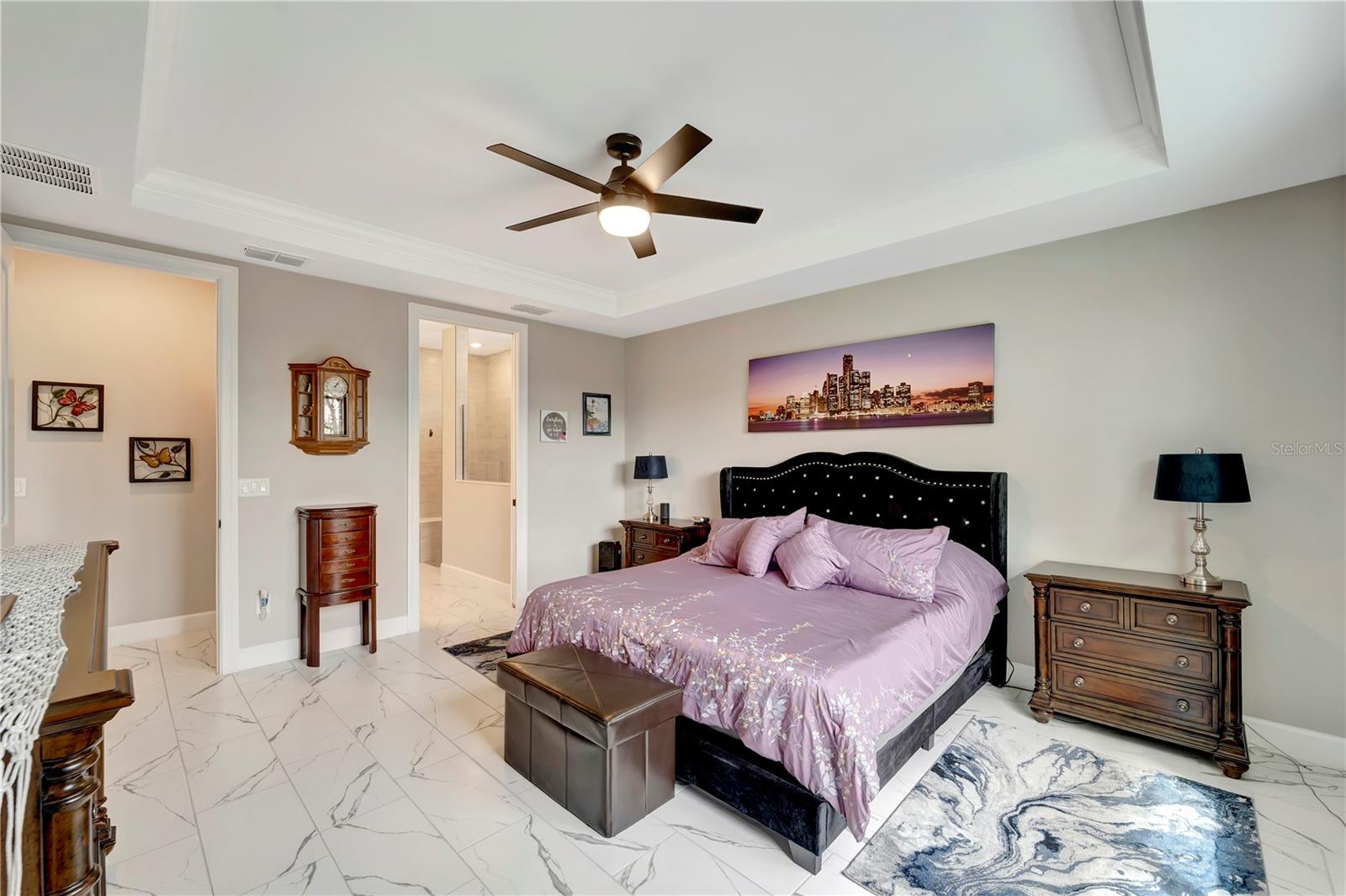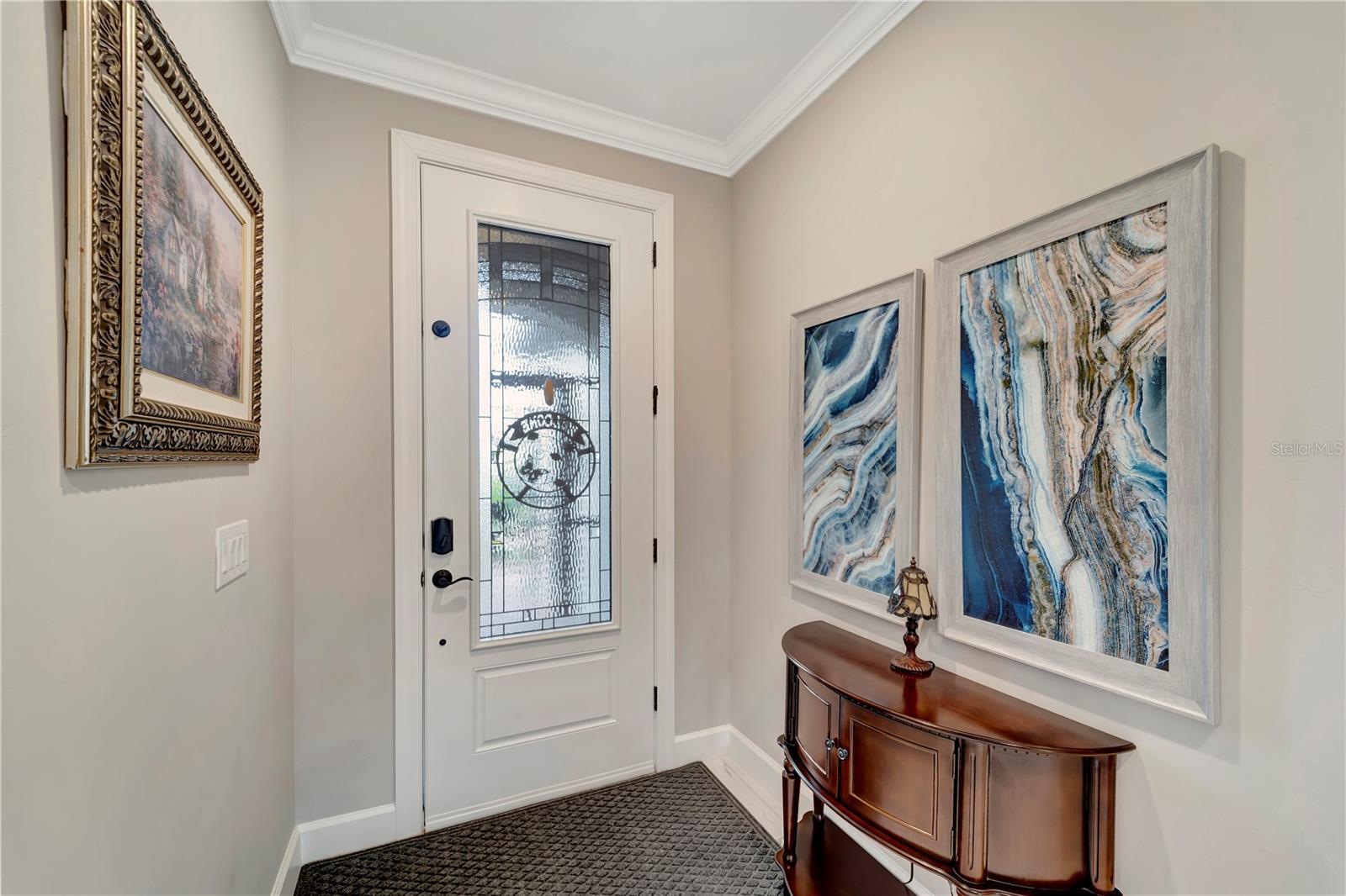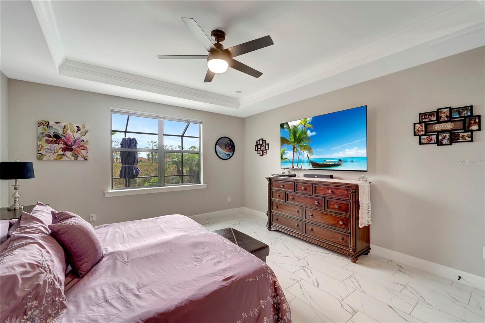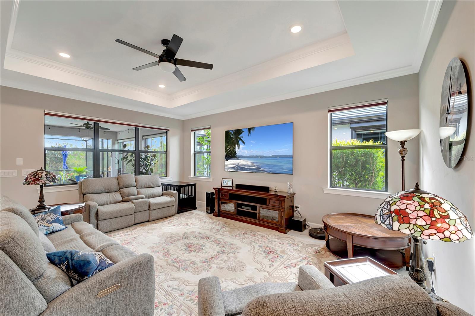 One or more photo(s) has been virtually staged. BIG PRICE IMPROVEMENT!! BRING OFFERS!! THIS HOME IS NOT IN A FLOOD ZONE!! Welcome home to this stunning 2-bedroom, den and 2-bathroom haven nestled in Del Webb Cypress Falls at the Woodlands pool Home, an exclusive 55+ gated community tailored for active adults. Situated just a short drive from the Gulf beaches, this residence boasts impeccable curb appeal with upgraded landscaping and custom curbing that sets the tone for what lies beyond. Step through the front door and be greeted by the intricate etched glass, a prelude to the elegance that awaits within. The spacious entry hall beckons you further into the home, where you'll find 8' doors, crown molding throughout the entire living space and window treatments adorning every window, exuding a sense of refined luxury. High-quality ceiling fans grace each bedroom and the living room, ensuring comfort throughout. The heart of the home is its expansive open-concept living space, ideal for hosting gatherings with loved ones. The generously sized guest room and den, complete with a shared bathroom featuring quartz countertops and a tall vanity, provide comfortable accommodations for guests. The kitchen is a chef's dream, boasting an upgraded appliance package, quartz countertops, a tile backsplash, and 42" upper cabinets surrounding a large island. Meanwhile, the primary bedroom, tucked away at the rear of the home, offers tranquility and serenity with its picturesque view of the preserve. Here, you'll find a tray ceiling and a high-quality ceiling fan, adding a touch of sophistication. The primary bathroom is a sanctuary unto itself, featuring a spacious walk-in shower with upgraded tile, a tall vanity with dual bowls, and quartz countertops. A large walk-in closet with ample shelving provides plenty of storage space for your wardrobe. Conveniently located near the garage, the laundry room boasts cabinetry and a laundry sink for added convenience. Step outside from the Dining room area onto the large lanai, partially covered with an extension that houses the saltwater pool that overlooks the preserve--a perfect setting for outdoor entertainment and relaxation. This home has recently installed hurricane shutters though out as well as Hurricane blockers in all roof vents. Remote control Privacy screens inside the dining room, and on two of the covered openings in the Lanai were also recently Added. The garage, with its 4' extension, offers ample space for vehicles, golf cart parking, as well as a full filtration and water softener and additional storage. TV'S ARE INCLUDED (EXCEPT FOR THE PRIMARY BEDROOM). Beyond the confines of this exquisite abode lies Cypress Falls, a meticulously maintained gated community teeming with activities and amenities. From the expansive clubhouse and resort-style pools to the fitness center, Tennis courts, Pickleball Courts, horseshoes, bocce and social events, there's something for everyone here. With a full-time activities director and a plethora of clubs and events, you're not just buying a home--you're buying into a vibrant and thriving community. Come see for yourself what makes this home and community truly exceptional!