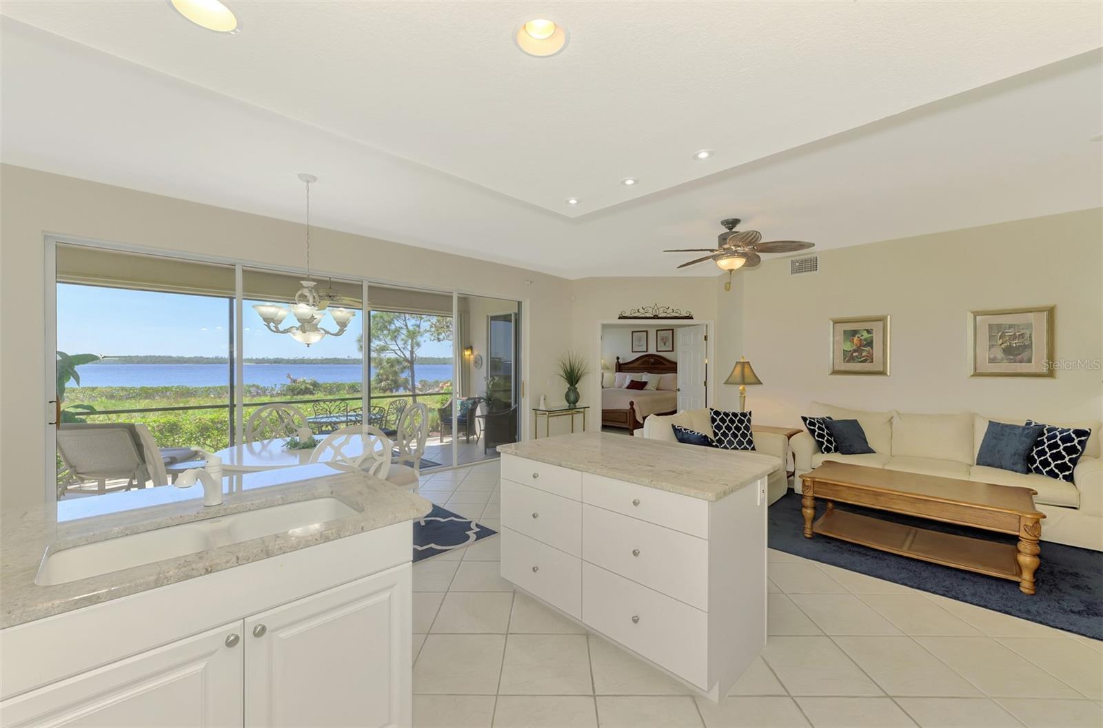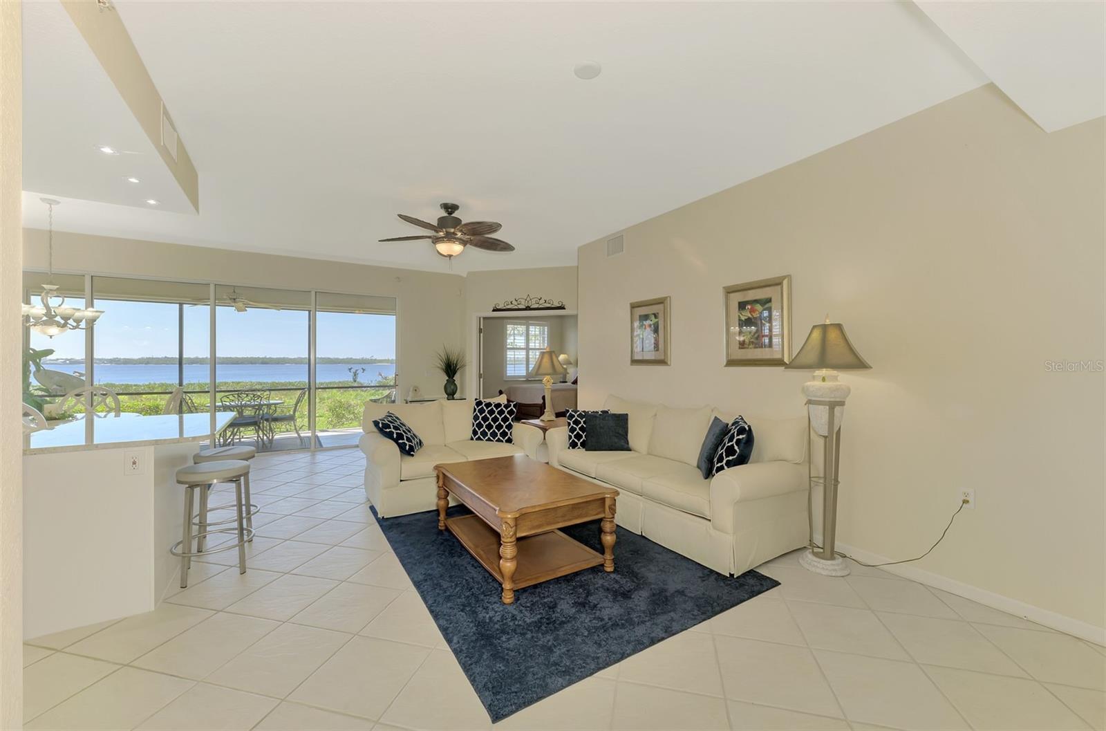 MUST SEE! Enjoy SPECTACULAR endless, unobstructed, south-facing SPARKLING RIVER VIEWS and the ultimate in Florida care-free living with this well maintained, ground-floor, turnkey furnished condominium. Boasting an inviting, naturally bright and spacious open floor plan, this residence features two bedrooms plus a versatile den, perfect as a home office or extra guest room--making it an ideal winter retreat or full-time residence. Inside, the living areas showcase tile flooring laid on the diagonal, while the bedrooms and den are comfortably carpeted. The bright and open living space effortlessly flows from the living room to the dining area and into a well-equipped kitchen, complete with ample cabinetry, a decorative tile backsplash, solid surface countertops, a kitchen island, and sliding glass door access to a tiled lanai overlooking the river. The primary suite is a peaceful haven with its own river view, private access to the lanai, and an en suite bathroom that includes a walk-in shower, separate soaking tub, and dual vanities. The guest bedroom and bath are thoughtfully positioned at opposite ends of the condo to ensure privacy for all. Additional highlights include plantation shutters, replaced appliances, a spacious two-car garage and accordion storm shutters for added peace of mind. Don't miss your opportunity--schedule a showing today and start enjoying everything Riverwood and this exceptional condo have to offer. Riverwood is a highly sought-after resort-style community that provides an impressive array of amenities, including an award-winning golf course--recognized as Golfer's Choice 2021 #1 Course in Florida and ranked among the top 15 courses in the U.S. Residents enjoy access to a vibrant activity center featuring both lap and resort-style pools, a fitness center, pickleball and tennis courts, dog parks, bocce, croquet, an art studio, library, and a full calendar of social events. Located just minutes from Gulf beaches, Charlotte Harbor, the Myakka River, Punta Gorda, Englewood, and Boca Grande, Riverwood offers endless opportunities for exploration and outdoor adventures. Sports enthusiasts will love the close proximity to spring training facilities for both the Tampa Bay Rays and Atlanta Braves. Riverwood truly delivers the best of Florida's natural beauty blended with a fun and active resort lifestyle.