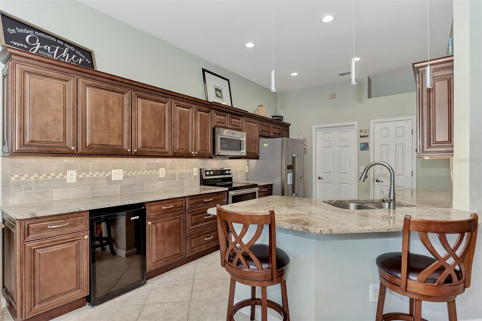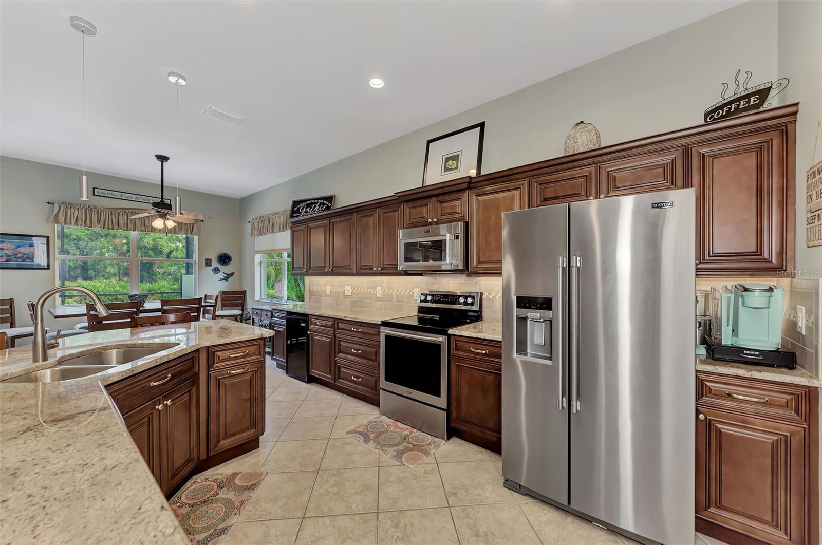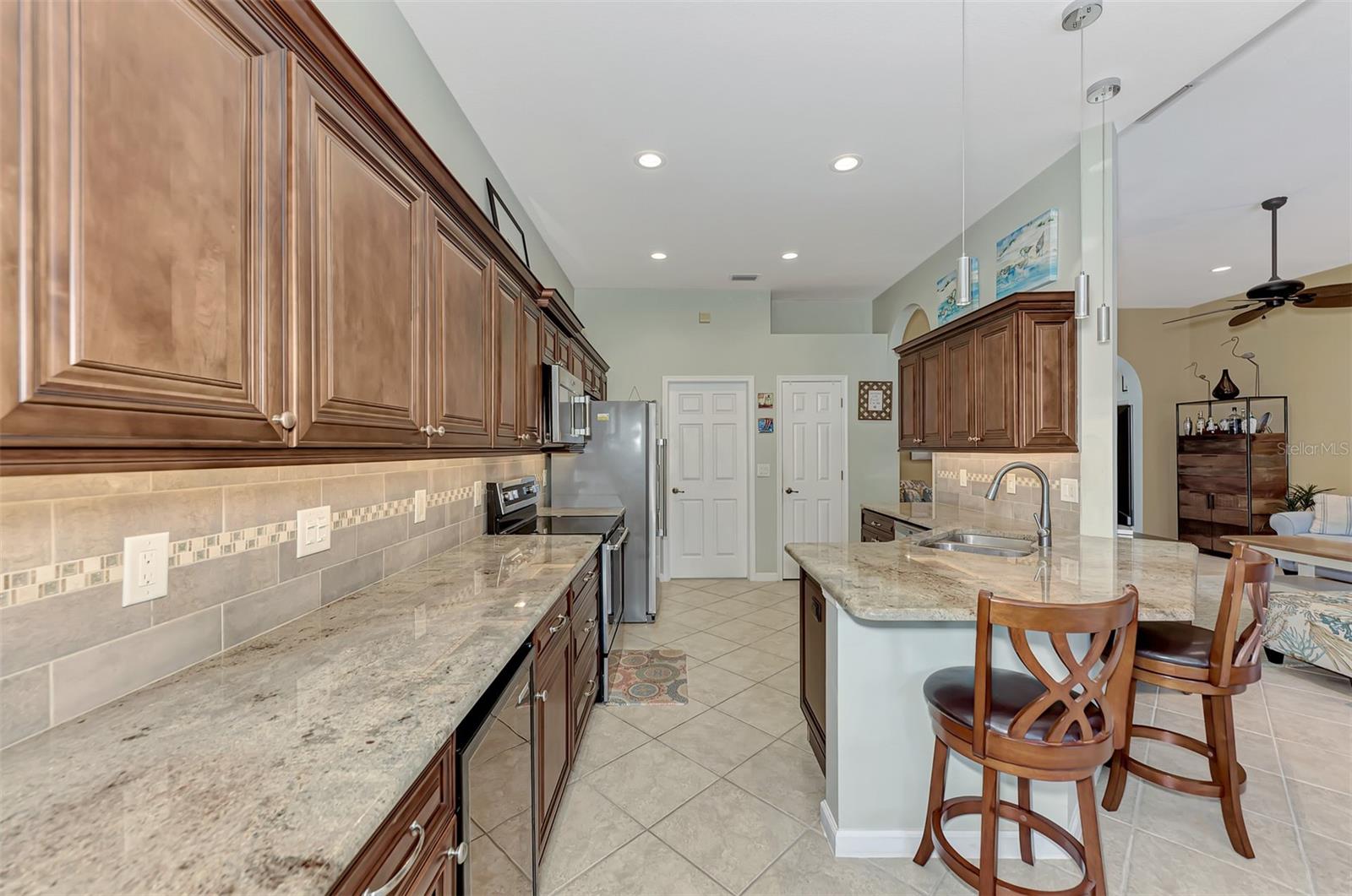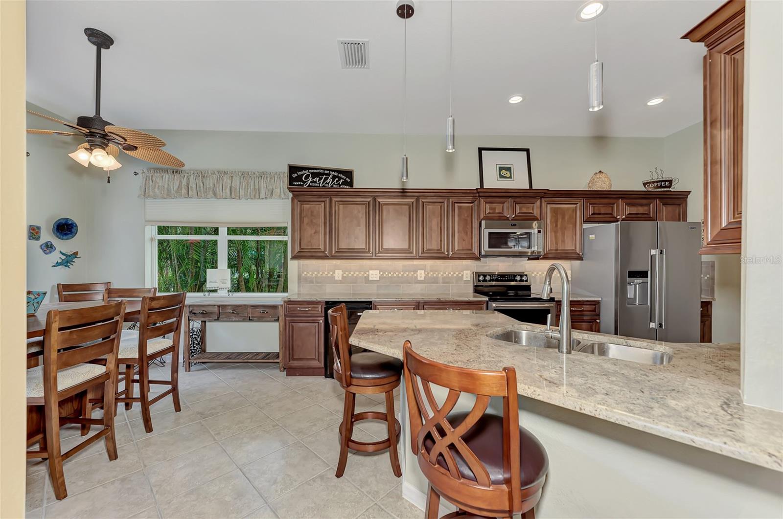 Indulge in a lifestyle where the beauty of nature meets the simplicity of living in the delightful community of Riverwood. Exquisite and lovely describes this beautiful Ibis Model home with its serene setting of preserve from both the front and back of the home . This well-appointed 2 bedroom, Den, 2 bath and 2 car garage home offers a completely remodeled kitchen and master bath ensuite. New ceiling fans in both the master and guest bedrooms. The large eat in kitchen has plenty of storage space with wood cabinets, granite countertops, stainless steel appliances, a walk in pantry and under cabinet lighting. The primary suite, with access to the lanai, has 2 walk in closets and an updated modern master bath which displays wood cabinets, granite countetops, walk in tiled shower, dual sinks and tile plank flooring. Enjoy your morning coffee and afternoon beverages on the extended lanai with a luxurious hot tub and privacy wall. New lanai screens in April 2024. FURNITURE currently in home INCLUDED. ADDED BONUS: NEW Heating & Cooling 2024 and entry light fixture. This is Floirda living at its best! Don't let this extraordinary opportunity slip away. Enjoy all of Riverwood: GOLF CLUB NAMED *TOP 50 US COURSES* *GOLF ADVISOR* *2018*, ACTIVITY CENTER CAMPUS INCLUDES LAP & RESORT STYLE POOL, FITNESS CENTER, PICKLE-BALL COURTS, SMALL AND LARGE DOG PARKS, TENNIS COURTS, LAWN CROQUET, BOCCE COURTS, CRAFT ROOM, LIBRARY AND SOCIAL ACTIVITIES! Additional fees apply for Riverwood Golf Club & Private Beach Club on Manasota Key. Riverwood is Close to Tampa Bay Rays Spring Training Facility, Atlanta Braves Spring Training Facility, Gulf Beaches, Carlotte Harbor, Myakka River, Punta Gorda, Englewood and Boca Grande. Riverwood, a Perfect Blend of Florida's Nature and Resort Lifestyle.