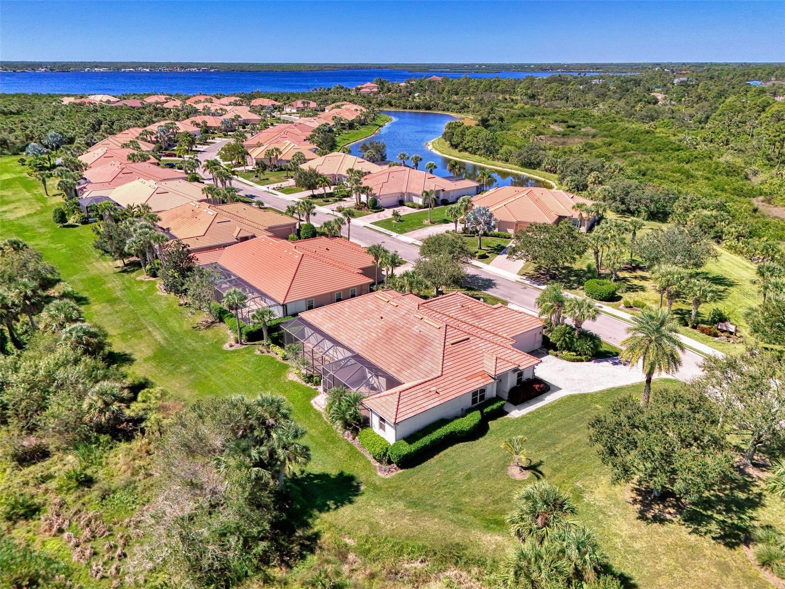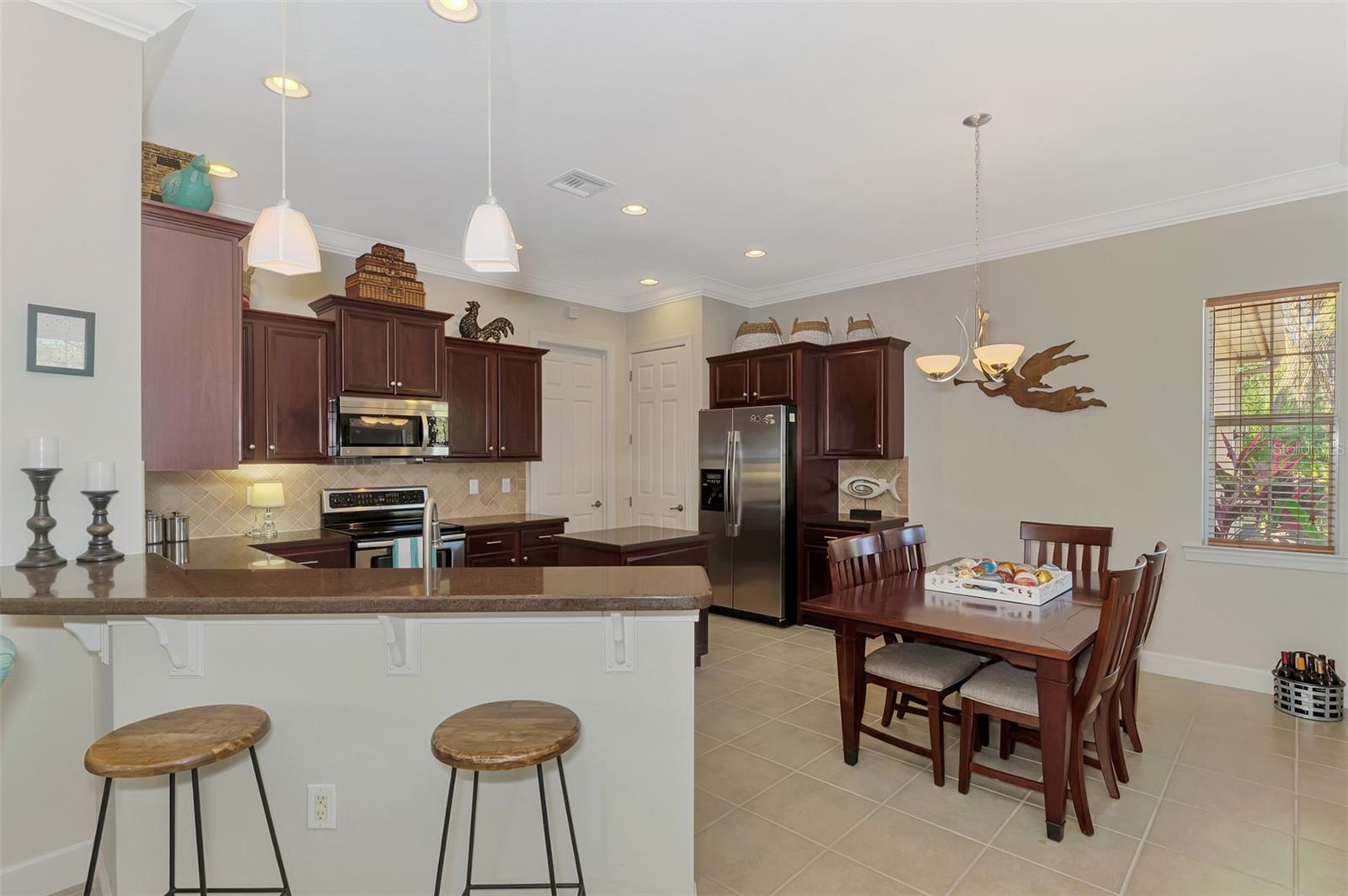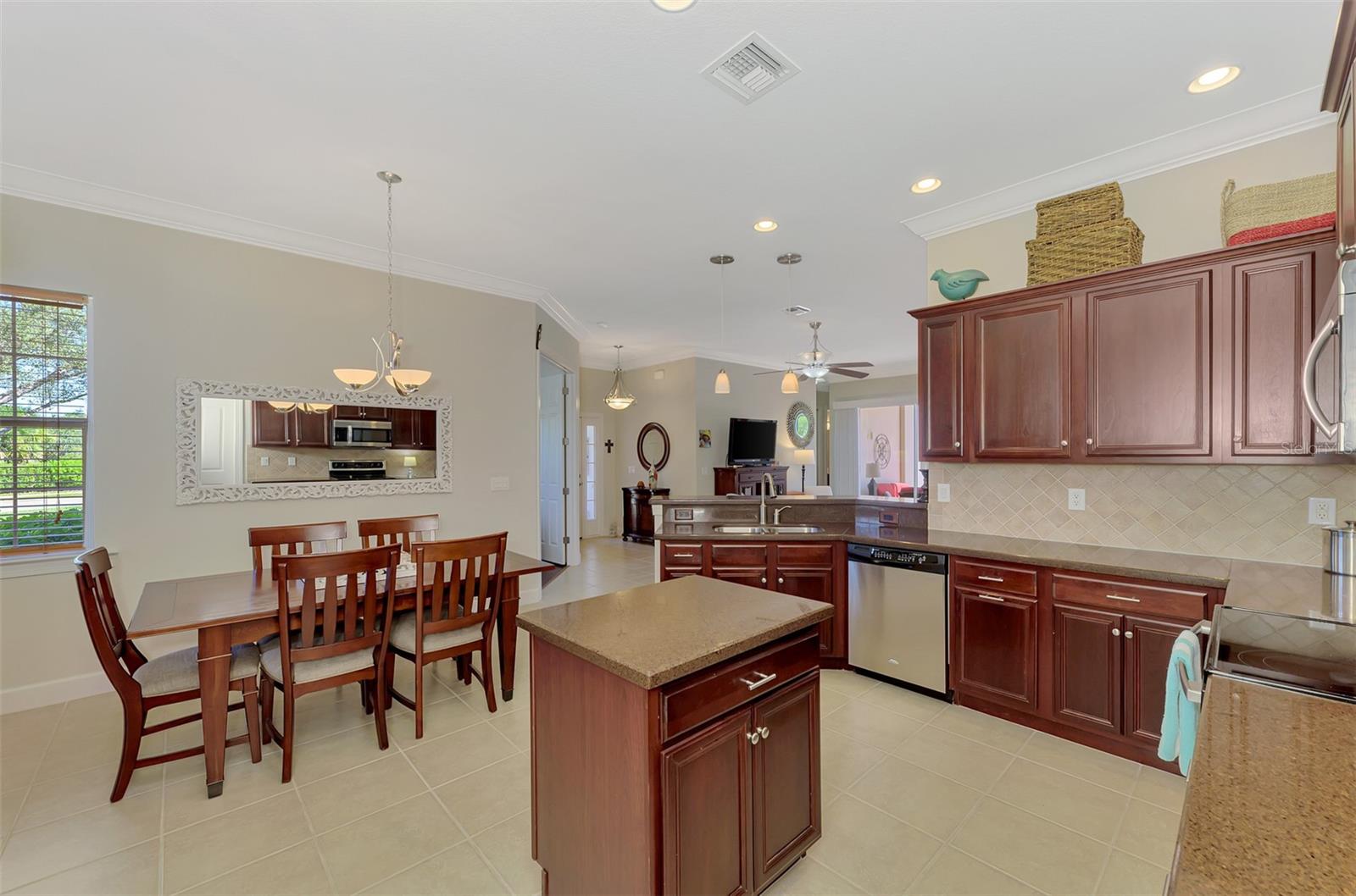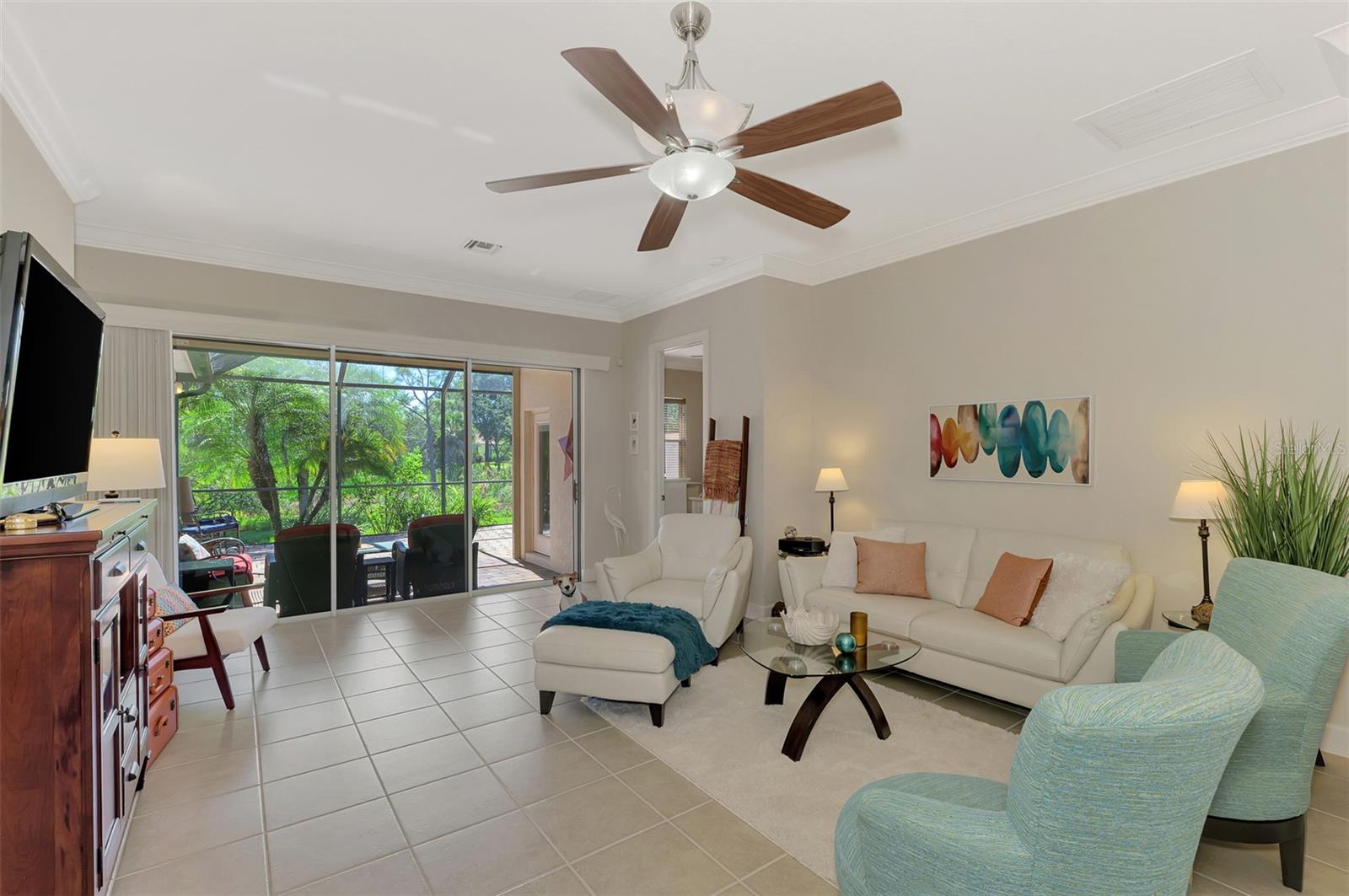 Elegant 3-Bedroom Home with Den on Oversized Private Lot + Exclusive Beach Club Membership Included! Welcome to this Jacaranda Villa, where comfort meets sophistication. This beautifully appointed 3-bedroom home with a versatile den is nestled on an oversized, private lot--offering tranquility and space in a prime location. As a bonus, enjoy exclusive access to a private beach club, perfect for relaxing coastal getaways. Step inside to discover an open-concept floor plan filled with natural light and enhanced by high ceilings, 5" baseboards, and elegant crown molding. The spacious living area flows seamlessly into a gourmet kitchen featuring: Rich wood cabinetry with soft-close drawers, granite countertops and a large center island, Stainless steel appliances, a closet pantry with custom wood shelving, and a breakfast bar ideal for casual dining or entertaining. The serene primary suite provides a peaceful retreat, featuring a generous walk-in closet and a luxurious en-suite bath complete with a garden tub and a walk-in shower. Two additional bedrooms provide ample space for family or guests, while the den offers flexibility such as a home office, media room, or guest space. Enjoy Florida living at its finest on your oversized screened lanai, perfect for al fresco dining or unwinding after a day on the golf course--with no rear neighbors for added privacy. Additional features include a newer A/C system, Security system, laundry room with cabinetry and utility sink, pavered driveway and lanai, and a 2-car garage with a painted floor for extra storage and easy maintenance. Most Furnishings are included excluding seller's personal belongings. This villa is a rare find--combining luxury, privacy, and resort-style amenities. Don't miss your chance to own a piece of paradise! Riverwood community offers world-class amenities, including a par-72 championship golf course, a state-of-the-art fitness center, a resort-style pool, pickleball and Har-Tru tennis courts. Private Beach Club on Manasota Key (Memberships based on availability) - Located minutes from fine dining, shopping, boating, and the pristine Gulf of Mexico beaches, this is your opportunity to embrace the ultimate Florida lifestyle. Don't let this magnificent home slip away. Schedule a showing today and experience a level of luxury and serenity that is simply unmatched.