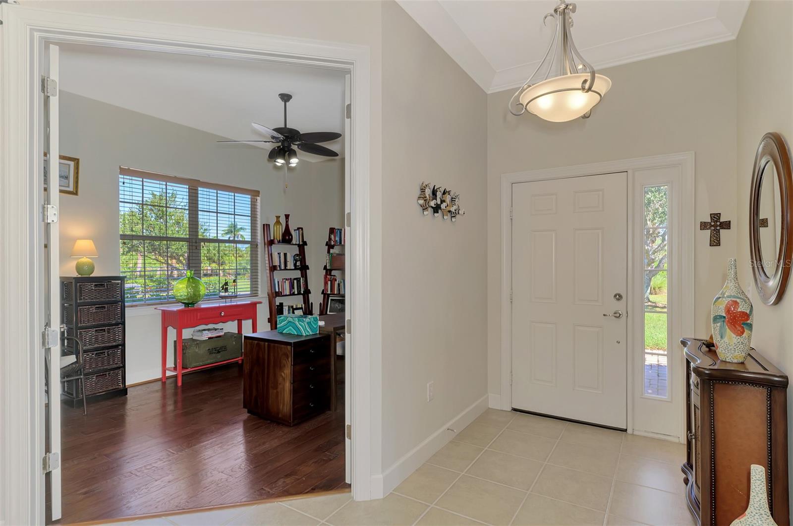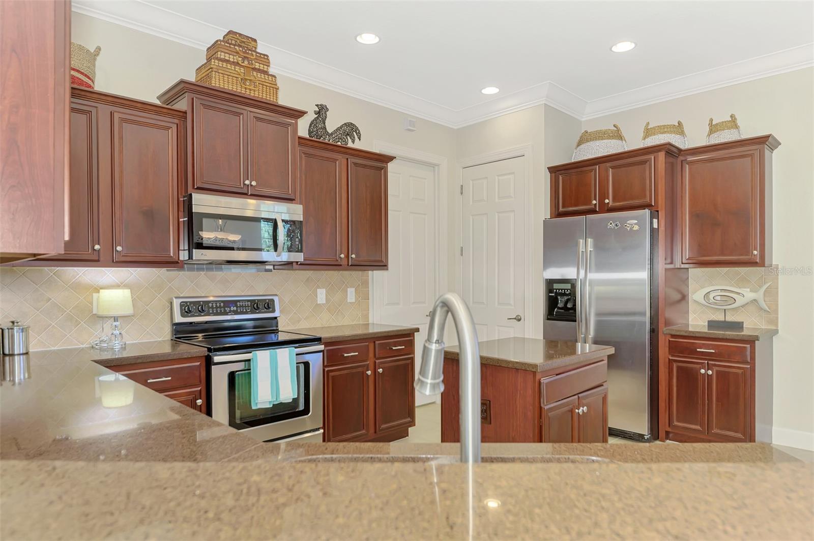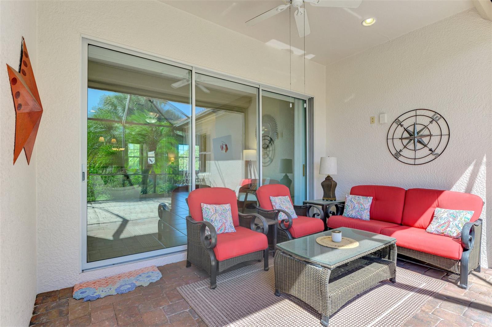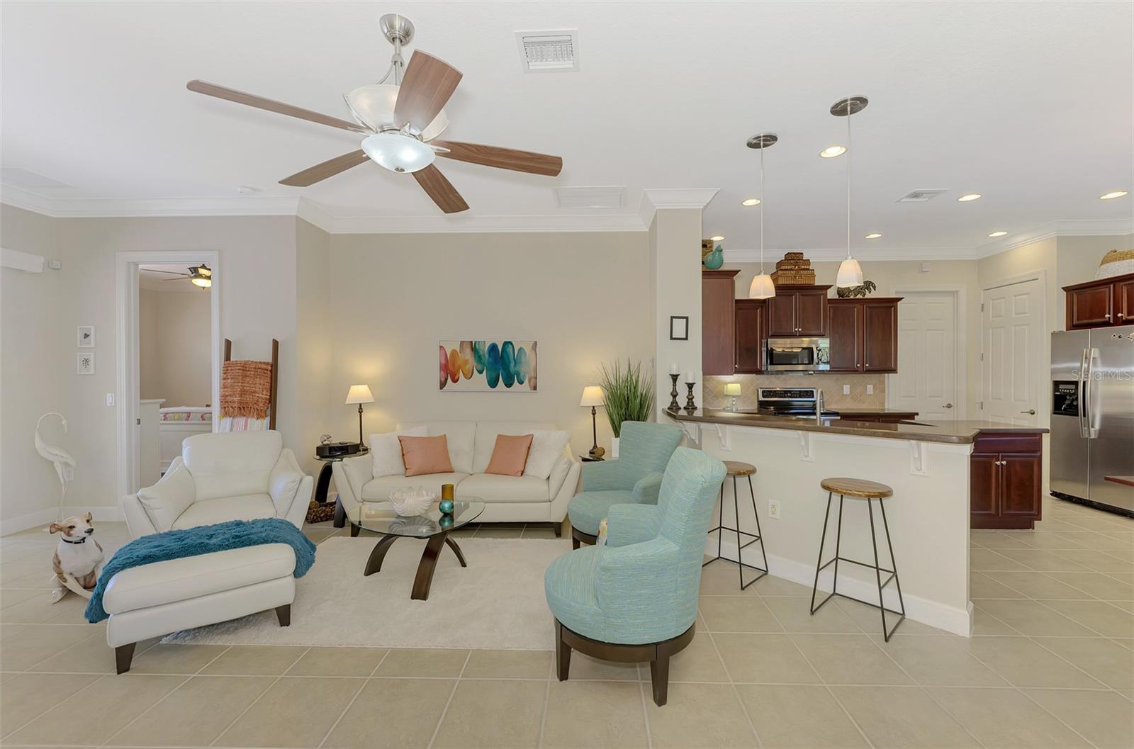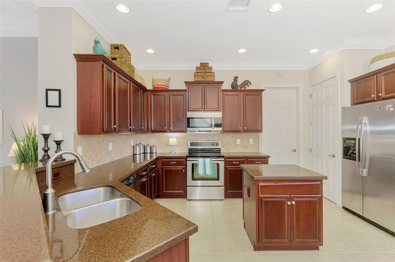 Elegant 3-Bedroom Home with Den on Oversized Private Lot + Exclusive Beach Club Membership Included! Welcome to this Jacaranda Villa, where comfort meets sophistication. This beautifully appointed 3-bedroom home with a versatile den is nestled on an oversized, private lot--offering tranquility and space in a prime location. As a bonus, enjoy exclusive access to a private beach club, perfect for relaxing coastal getaways. Step inside to discover an open-concept floor plan filled with natural light and enhanced by high ceilings, 5" baseboards, and elegant crown molding. The spacious living area flows seamlessly into a gourmet kitchen featuring: Rich wood cabinetry with soft-close drawers, granite countertops and a large center island, Stainless steel appliances, a closet pantry with custom wood shelving, and a breakfast bar ideal for casual dining or entertaining. The serene primary suite provides a peaceful retreat, featuring a generous walk-in closet and a luxurious en-suite bath complete with a garden tub and a walk-in shower. Two additional bedrooms provide ample space for family or guests, while the den offers flexibility such as a home office, media room, or guest space. Enjoy Florida living at its finest on your oversized screened lanai, perfect for al fresco dining or unwinding after a day on the golf course--with no rear neighbors for added privacy. Additional features include a newer A/C system, Security system, laundry room with cabinetry and utility sink, pavered driveway and lanai, and a 2-car garage with a painted floor for extra storage and easy maintenance. Most Furnishings are included excluding seller's personal belongings. This villa is a rare find--combining luxury, privacy, and resort-style amenities. Don't miss your chance to own a piece of paradise! Riverwood community offers world-class amenities, including a par-72 championship golf course, a state-of-the-art fitness center, a resort-style pool, pickleball and Har-Tru tennis courts. Private Beach Club on Manasota Key (Memberships based on availability) - Located minutes from fine dining, shopping, boating, and the pristine Gulf of Mexico beaches, this is your opportunity to embrace the ultimate Florida lifestyle. Don't let this magnificent home slip away. Schedule a showing today and experience a level of luxury and serenity that is simply unmatched.