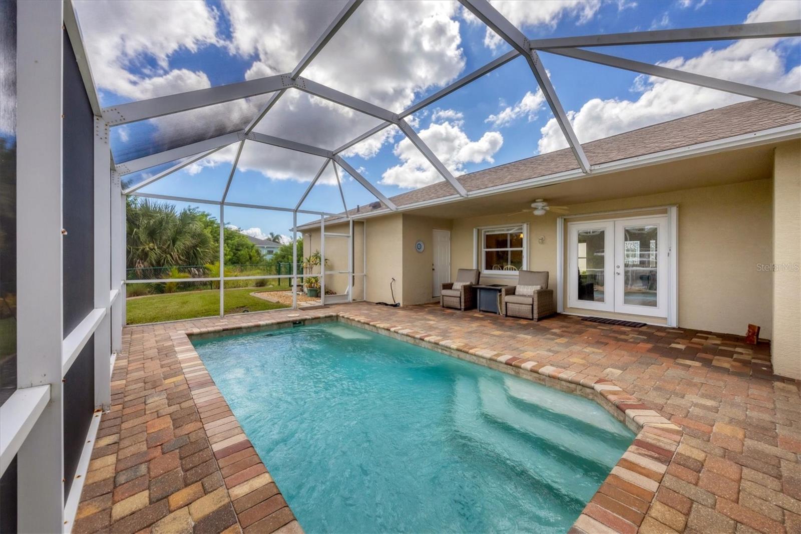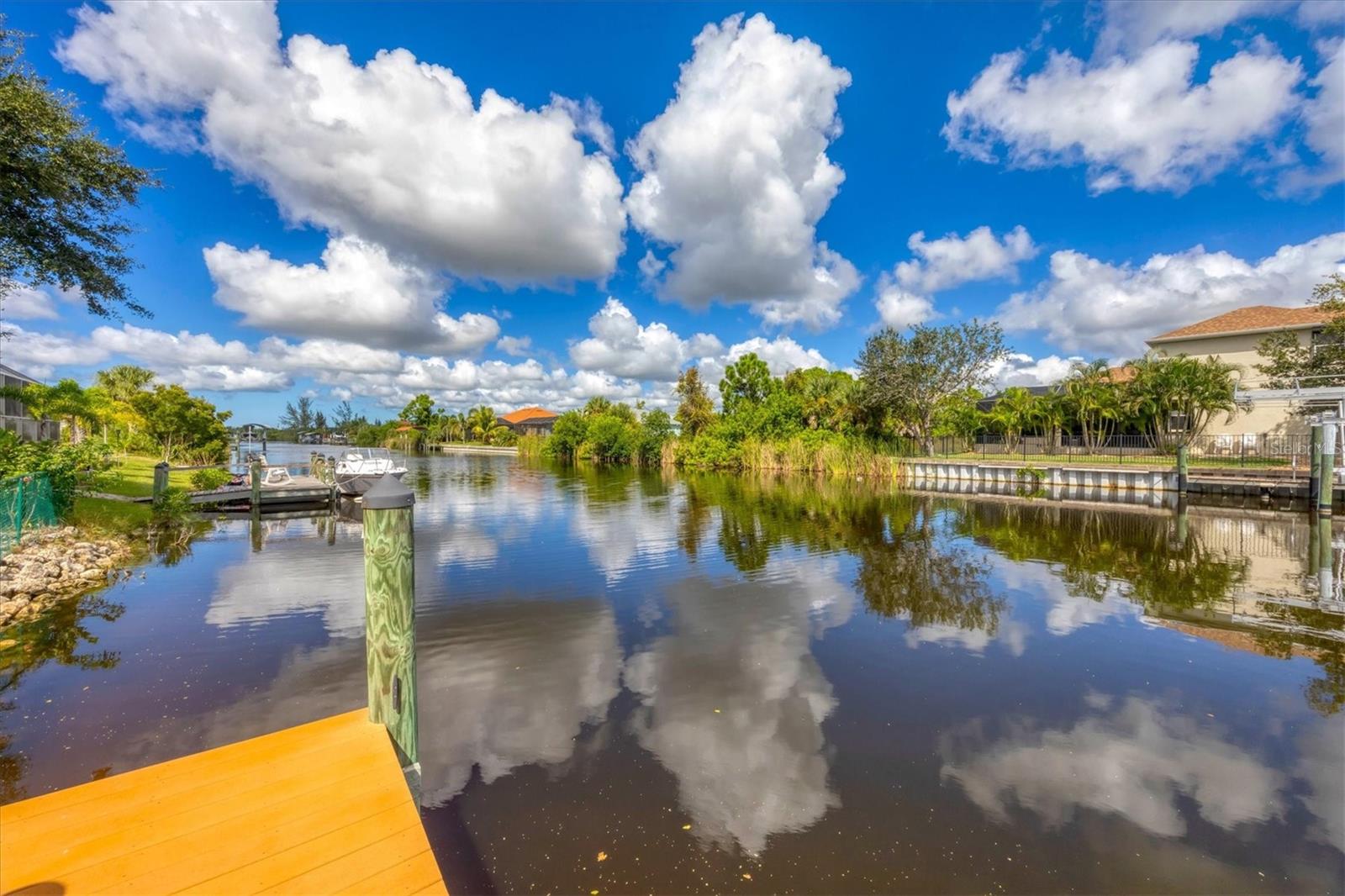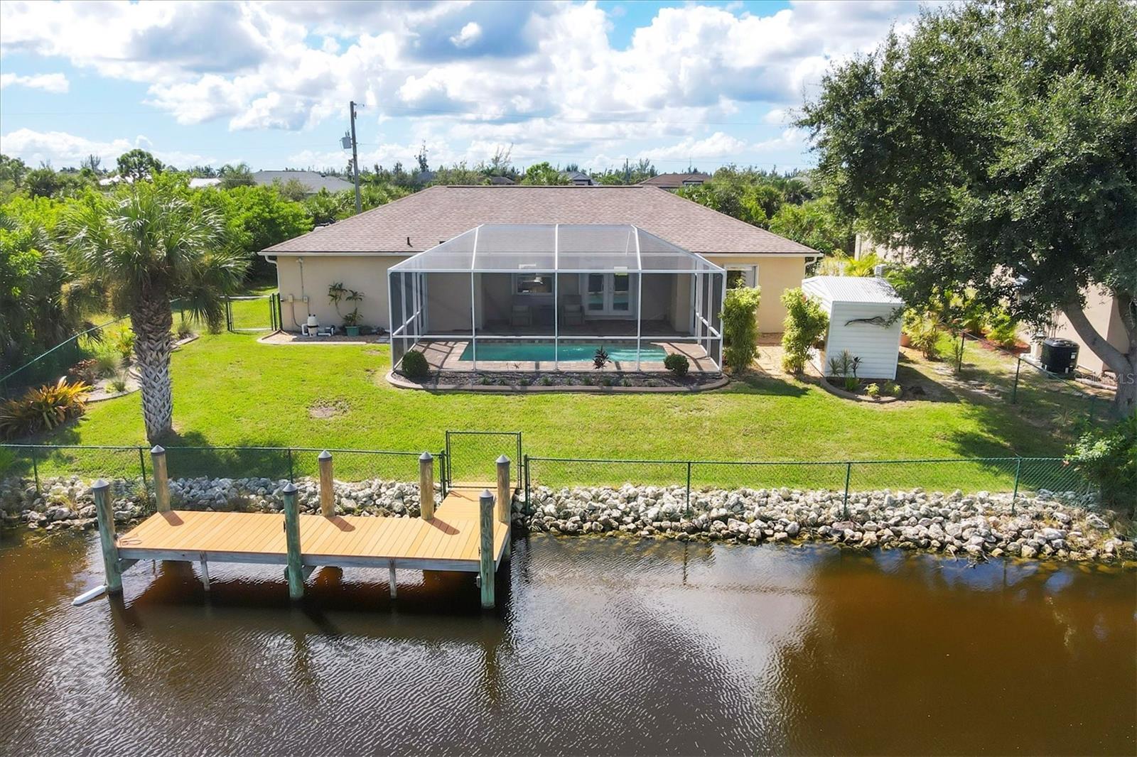 Come see this beautiful waterfront home in South Gulf Cove. This clean and well maintained home features 3 bedroom 2 bath 2 car garage with pool. With open floor plan , breakfast bar in the kitchen , has an inside laundry room with storage. Pool are is open with covered space and newer pavers for you to sit outside and enjoy the fresh air. Just down the canal from the Zephyr waterway which gives you quicker access to the lagoon and lock system out to the Myakka River, Charlotte Harbor and the Gulf. Yard is fenced and has a large shed and mature landscaping. Also peace of mind with newer roof replaced in 2022 and folding Hurricane shutters for every window. Make an appointment today to come see this sweet home and make it your own piece of paradise!