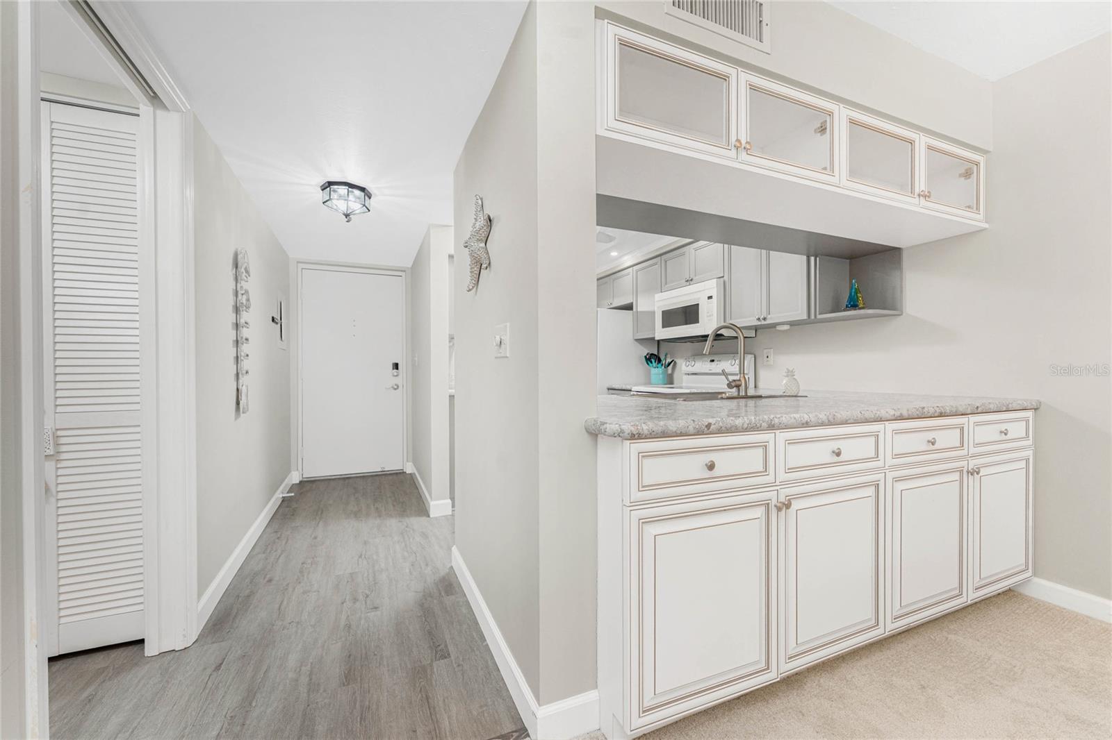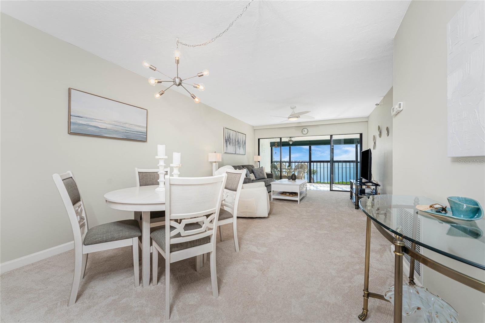One of the best locations in Sandpiper Key, this condo offers the perfect place to sit on your screened balcony and watch dolphins play and boats pass by. Located on Manasota Key and just half a mile to Englewood Beach, the two-bedroom, two-bathroom unit features newer carpet, a stackable washer and dryer, an updated HVAC system, and a newer refrigerator. Covered parking, extra storage space, and an elevator to every level make daily living convenient and easy. Inside, the kitchen is designed with gray shaker-style cabinetry, soft close hinges, crown molding, and a tray ceiling, and even provides peek-a-boo Bay views. The combined living and dining area includes built-in cabinets for extra storage on the dining side, while triple sliders to the balcony and additional sliding doors on the opposite wall allow you to let the salty breezes flow through the space or keep them closed for year-round comfort. The ensuite primary bedroom offers a walk-in closet, sliding doors to the balcony, and a spacious bath with dual vanities and a large tiled walk-in shower with privacy glass doors. The guest bedroom includes a reach-in closet, and the guest bath is complete with a granite-topped vanity and a shower and tub combination. Sandpiper Key is a vibrant pet friendly community offering multiple picnic areas, gas and charcoal grills, two Bayfront heated pools, and a clubhouse with social activities. The location allows easy access by walking, biking, or golf cart to local dining, live entertainment, and waterfront fun, creating the ideal setting for beach living. You can choose the peacefulness of your private balcony or join neighbors at one of the many picnic areas throughout the complex. The community is impeccably maintained with a strong association, and when available, boat docks may be purchased at the Sandpiper Key Yacht Club across the street. This excellent unit in a highly desirable location is ready for you to enjoy. Contact us today to schedule your private showing and experience the beautiful views for yourself.