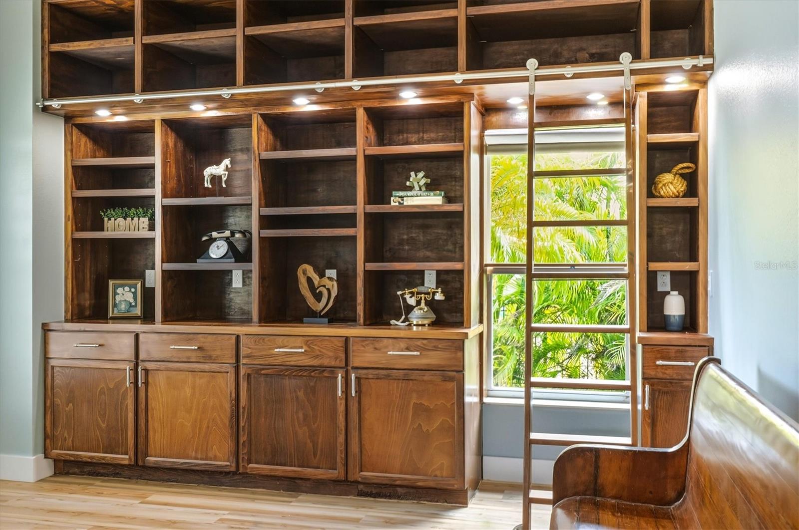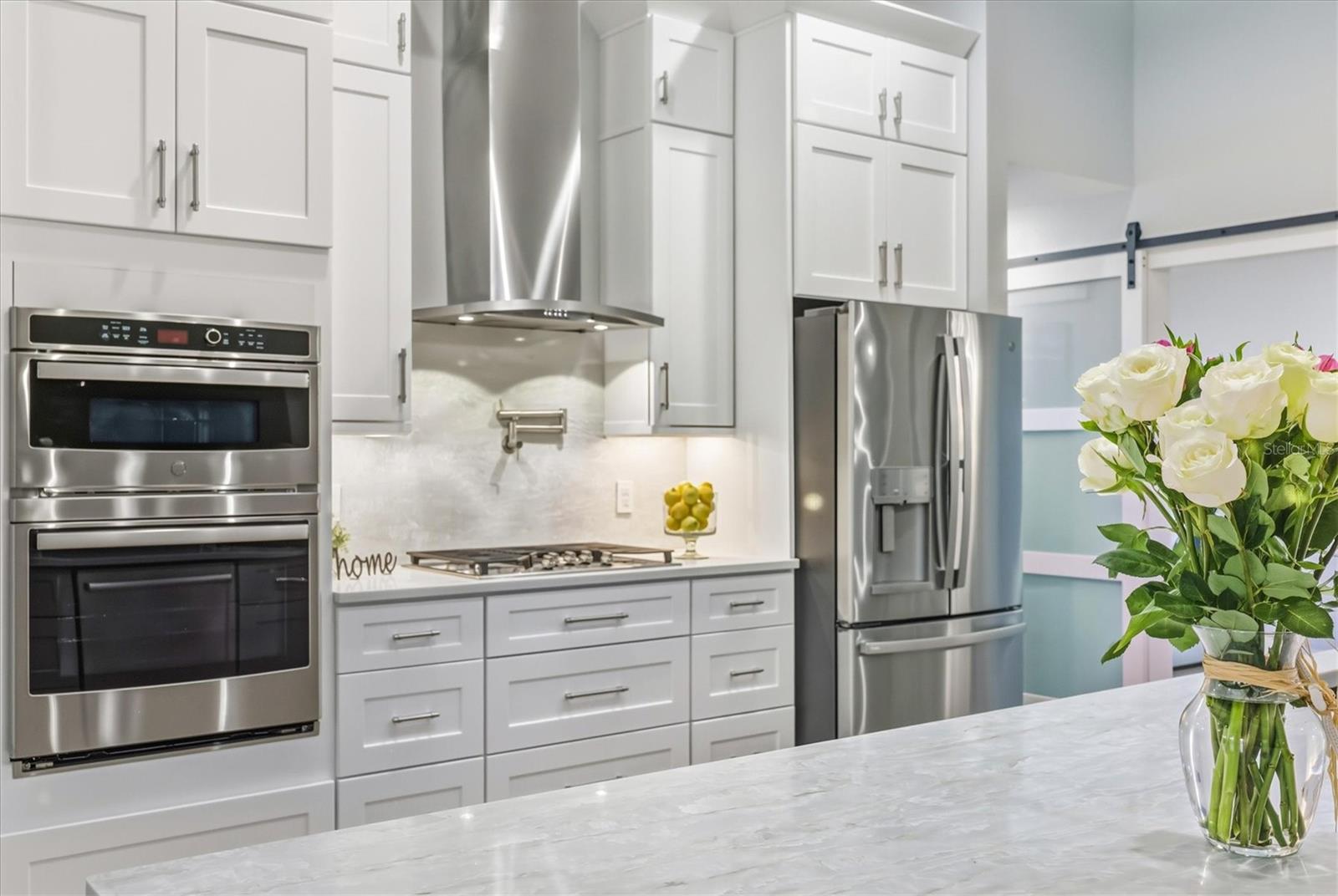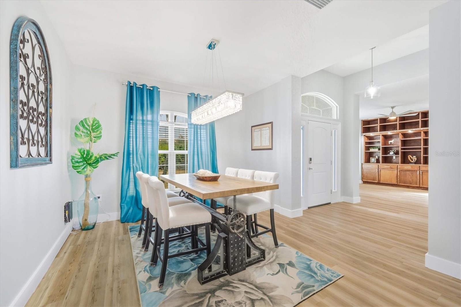 Completely reimagined and meticulously renovated, this waterfront residence presents as an entirely new home, where refined design, modern finishes, and serene canal views come together to create an exceptional coastal retreat. Significant improvements include a new roof (2023), fresh interior paint throughout, and luxury vinyl plank flooring installed in 2025. The screened lanai features a new pool enclosure, while the expanded laundry room offers a utility sink and direct access to the two-car garage, adding both function and convenience. The kitchen stands as a striking focal point of the home, curated for both everyday living and elevated entertaining. It features new upgraded cabinetry, all-new appliances (2025), and a dramatic oversized quartz island measuring approximately 15 feet by 4.5 feet. A statement Lefton multi-function sink with custom water controls adds a refined touch. Gas cooking is supported by an on-site propane tank and a pot filler above the range. Hidden behind a sliding barn door, a striking custom pantry wall features expansive shelving and curated lighting, thoughtfully designed to reveal a concealed coffee bar, an elevated detail that speaks to craftsmanship and intention. Upon entry, canal views set an immediate sense of calm and connection to the outdoors. Just off the foyer, a formal dining area is accented by a statement chandelier, while a custom bonus room on the opposite side features a floor-to-ceiling built-in library wall with a rolling ladder, an exceptional space for a private office, study, or flex room. An additional room located near the pantry and laundry offers further versatility as a guest room or secondary office. The living area anchors the center of the home, framed by expansive windows that overlook the lanai and water beyond. At the rear of the residence, two guest bedrooms and a shared bath are positioned on one side, while the primary suite enjoys privacy on the other. The shared bath has been fully renovated, featuring new quartz countertops and updated sinks. The primary bedroom offers direct lanai access, dual walk-in closets, and a fully renovated en suite bath showcasing new vanities, sinks, quartz countertops, updated lighting, and new flooring. Outdoor living is equally compelling, featuring a heated pool with attached spa. Beyond the screened lanai, a composite dock with electricity, pre-wired for a boat lift, extends along the canal and includes a flagpole and canal-fed irrigation system. This is a rare opportunity to own a meticulously renovated waterfront home where the most significant upgrades have already been completed, offering refined interiors, thoughtful design, and an exceptional outdoor lifestyle.