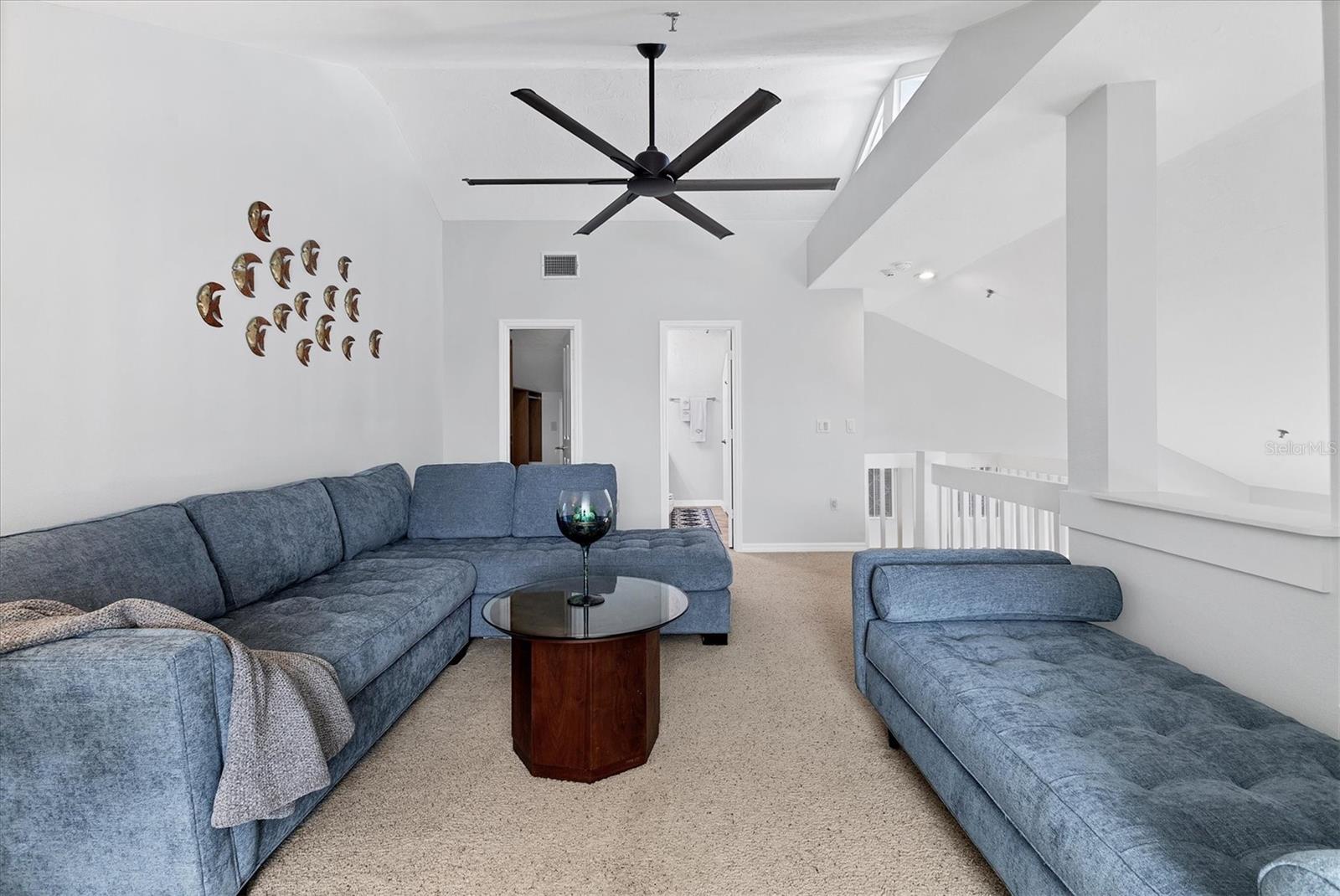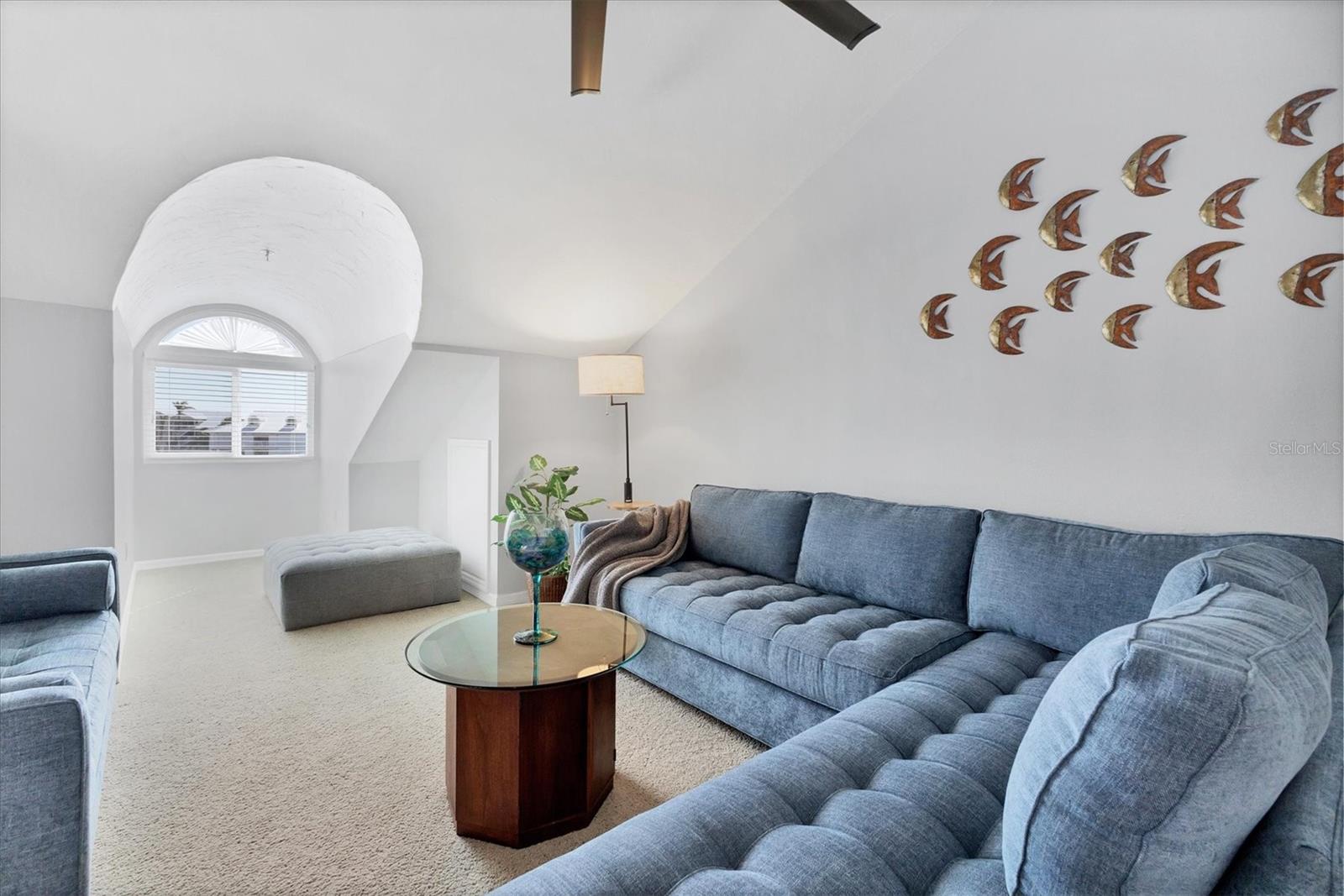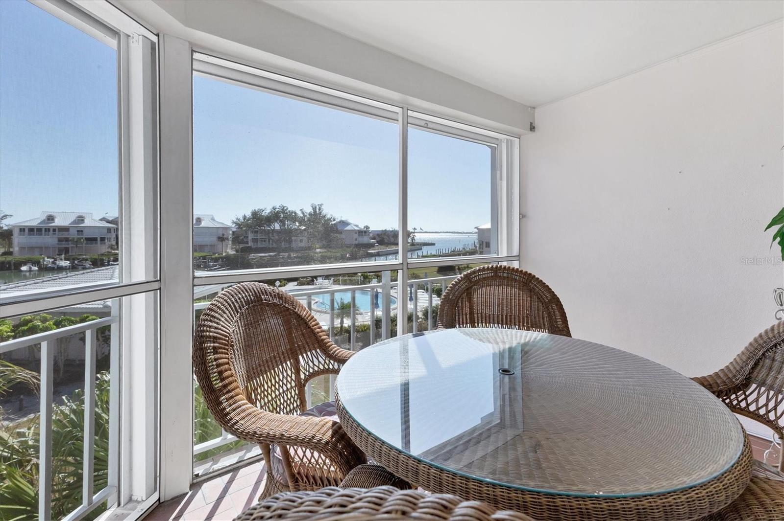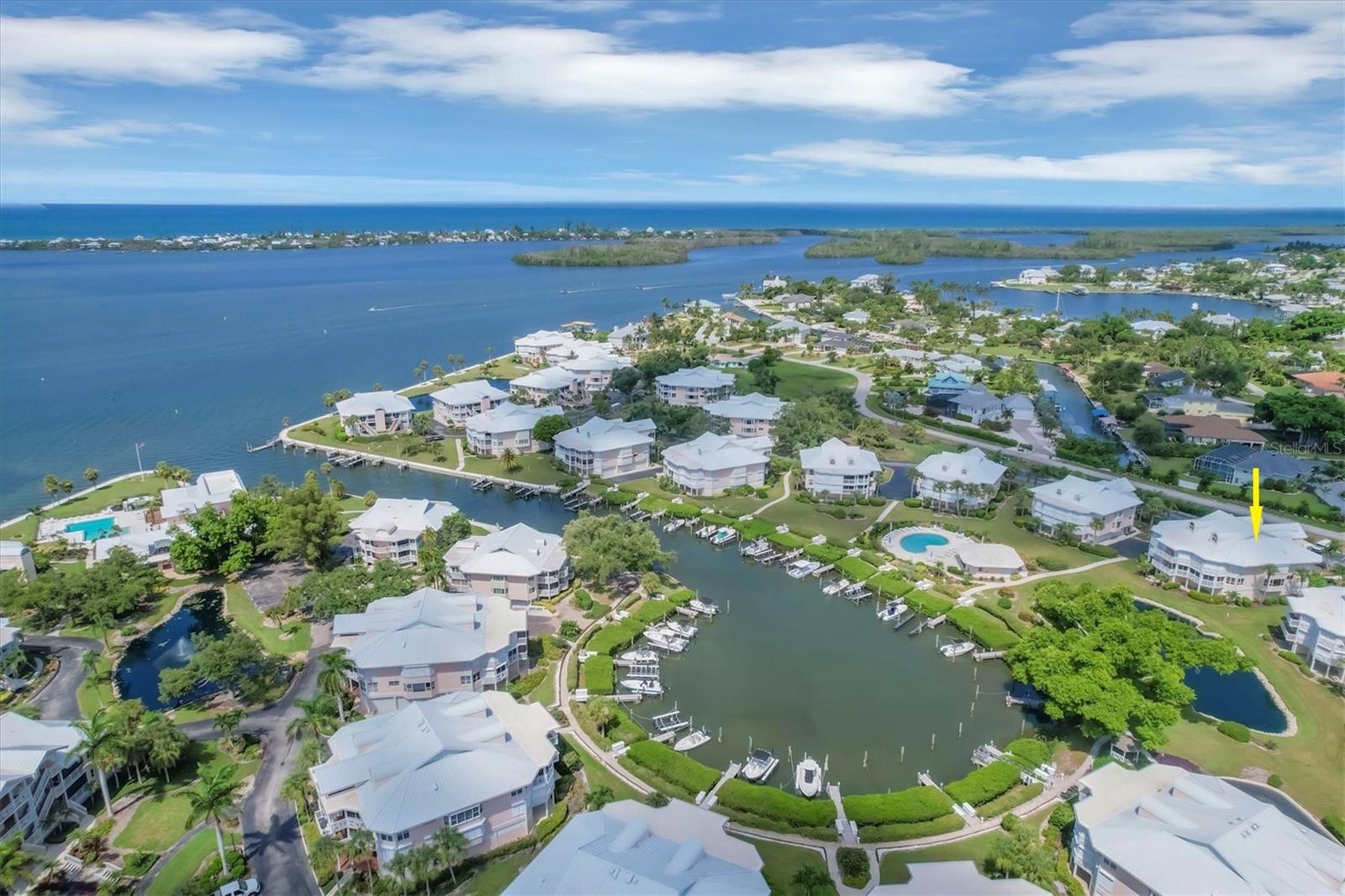 Resort living in comfortable luxury with on-site marina plus beach access provided by a private ferry! This 3-bedroom 3-full bath waterfront condominium in the Placida Harbour Club has 18' tile in the foyer and entry, wood floors and volume ceilings in the main living areas, and two bedrooms with two full baths. A large loft on the second level has an alcove area, closet, and full private bath, serving as an ideal space for a third bedroom, office or den. This top floor end unit is in a building with only 4 units and has elevator access. The large two car garage has added space for a golf cart or boat trailer plus enclosed locked storage. All hurricane impact windows throughout and electric roll down shutters on the water facing screened lanai plus a brand-new metal roof and air conditioner, both in 2024! The kitchen is open to the dining and living area with lots of natural light from the bay windows. Granite countertops with wine refrigerator and lots of cabinet space including a pantry. All bathrooms have been tastefully renovated with granite countertops and beautifully tiled showers. Watch the manatees who live in the Harbour with ICW views from the large screened and tiled lanai. The marina is on site and in the process of a major renovation with new seawall, docks, electric and dredging. Plans are available to view. There are three pools, tennis and pickleball courts, hot tub, fully equipped fitness center and a clubhouse which is available for special events to owners and their guests. What sets Placida Harbour amenities apart is the ferry to a private beach with day docks and a pool on Little Gasparilla Island. Truly a resort style community! Freshly painted inside as well as the exterior, plus the entire community is in the process of all new landscaping being installed, roads being paved and new and improved gate system for easy and safe access for you and your guests. Offered furnished.