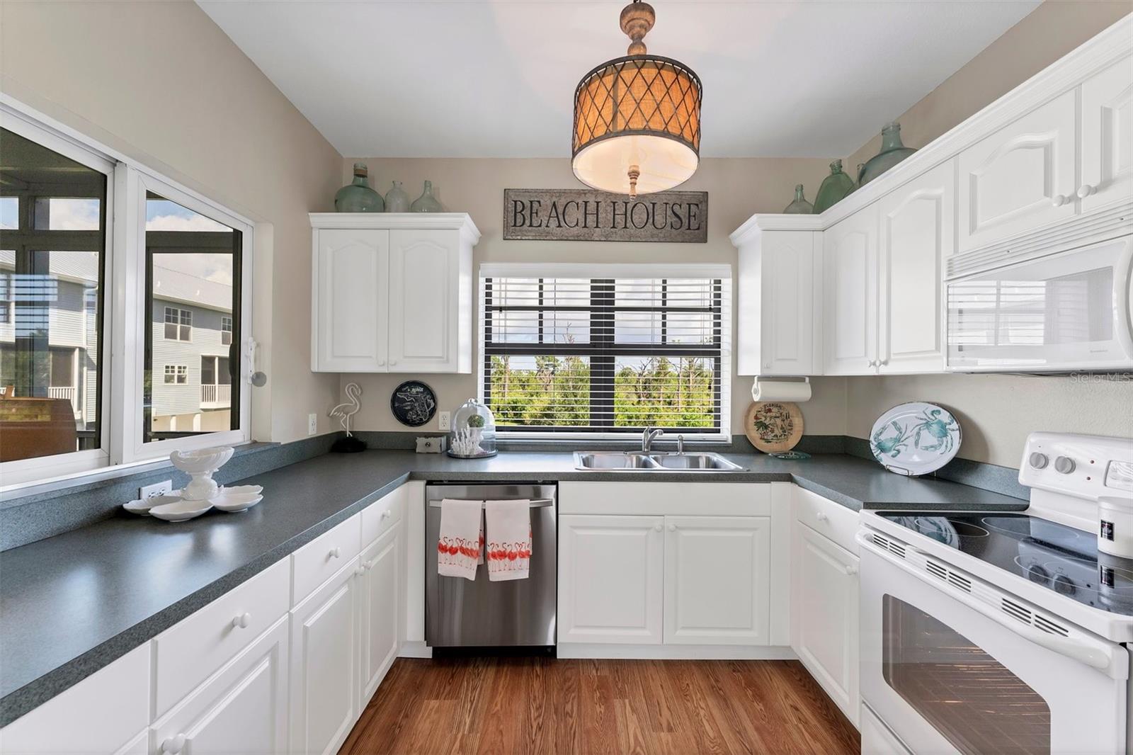 Stylish, Coastal, TURN-KEY FURNISHED, Tri-Level TOWNHOUSE with PRIVATE ELEVATOR & TWO-CAR GARAGE. Just one look and you'll be sold! Step into this bright and cheerful, attractively updated condo, ready for IMMEDIATE MOVE-IN. Tastefully decorated with coastal charm, this spacious unit features laminate flooring throughout the main living areas for a seamless flow. Wainscotting and oak wood staircases add warmth and sophistication. Move effortlessly between levels with your own private elevator. Relax year-round on the enclosed lanai with both glass and screen enclosures--perfect for entertaining and enjoying peaceful views of the surrounding nature preserve no matter the season. Upstairs, the primary and guest bedrooms are both handsomely appointed with ensuite baths, while the third bedroom, equipped with bunk beds, offers great flexibility for guests, a home office, or a cozy retreat. This home has been completely redone from top to bottom, including a new roof, new siding, updated interior walls, and new flooring throughout--every detail has been thoughtfully addressed. Start your day with morning coffee or unwind with sunset views from your private balcony with views of the community pool. Located just minutes from the Gulf beaches for fishing, swimming, and boating--or hit the links at one of the many nearby golf courses. Whether you're seeking a full-time residence, a seasonal getaway, or a savvy investment, this stylish, low-maintenance condo offers exceptional value and a relaxed coastal lifestyle you'll love coming home to.