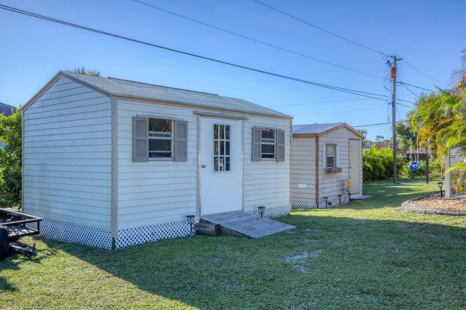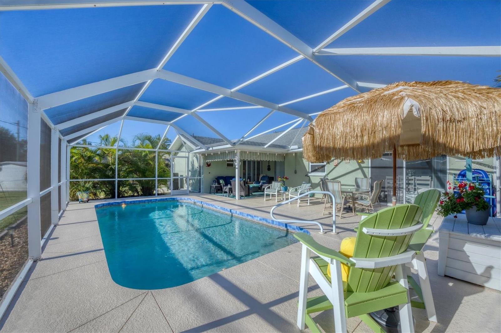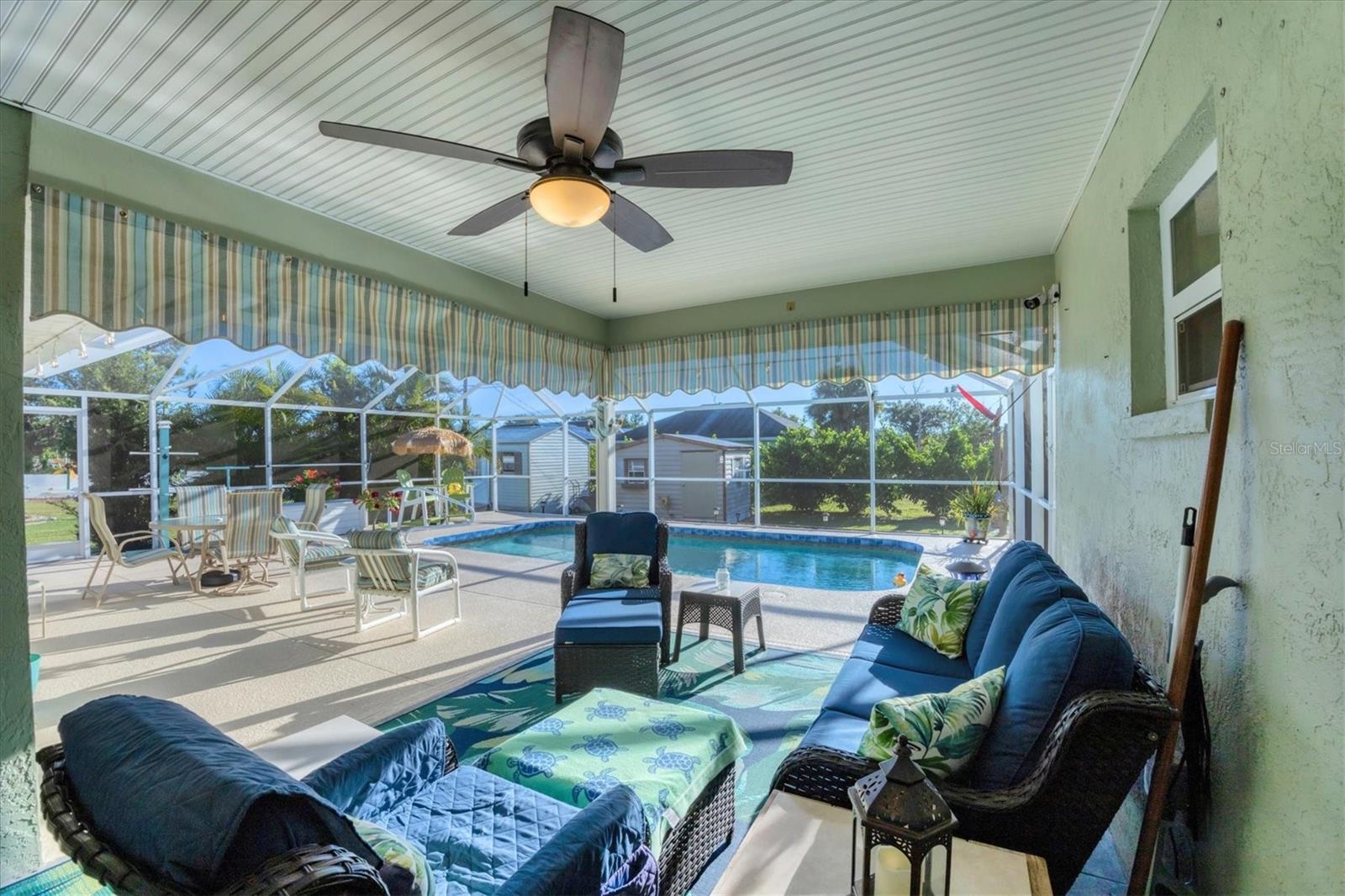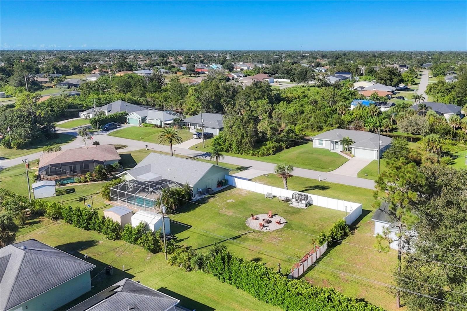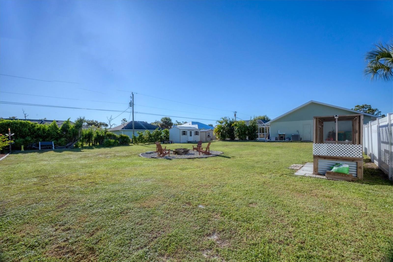 Beachy, Quiet & Private Coastal Retreat on a Double Lot!This charming, move-in-ready home offers the perfect blend of coastal charm and modern updates. Nestled on a double lot in an X flood zone for added peace of mind, this beautifully maintained property partially fenced, provides a true sense of privacy and relaxation.Step outside to your own backyard oasis featuring mature tropical landscaping, a firepit area, two newer sheds (2021 & 2022), and a sparkling screened-in pool, ideal for year-round enjoyment. Designed for seamless indoor-outdoor living, the home boasts an inviting covered patio overlooking the pool and sliding glass doors that fill the interior with natural light.Inside, the oversized living room welcomes you with a large picture window and plantation shutters, creating a warm, coastal ambiance. The updated kitchen showcases modern finishes and a large pantry, while both bathrooms have been beautifully renovated with modern finishes and a fresh, beachy feel.Recent upgrades include a new roof and AC (2023), updated plumbing and electrical, and hurricane shutters ensuring comfort and worry-free living. A screened lanai adds yet another relaxing space to enjoy the laid-back Florida lifestyle.Perfectly located near the pristine beaches of Englewood, as well as golf courses, shopping, dining, and entertainment, this coastal gem is ideal for those seeking a private retreat or the ultimate space for entertaining.With timeless style, thoughtful updates, and an exceptional location, this beautiful home won't last long!