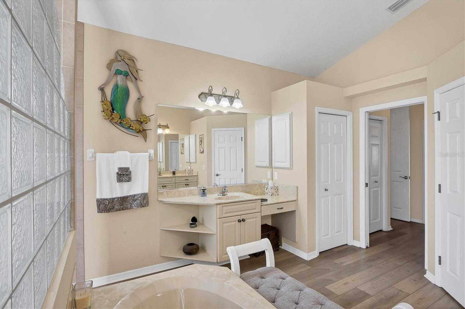 Yes, you can HAVE IT ALL! This meticulously maintained ESTATE home is situated on a DOUBLE LOT with almost a 1/2 ACRE of land! Enjoy wide-open views and breathtaking sunrises, all just minutes to local amenities. This light and bright property will fulfill your Florida dreams in every way providing the space and flexibility to do almost anything you can think up! This stately home immediately welcomes you with an abundance of exterior curb appeal! Custom paint, curbing, mature landscaping, and aluminum fencing all lead to the lovely glass double front doors. Once inside, you are immediately taken in by the sheer volume and the abundance of natural light pouring in and you begin to see the details of this well-thought-out floor plan that sets this home apart! From the 10ft ceilings, decorative arches/columns, plantation shutters, to the upgraded light fixtures and fans, just to name a few. Multiple sets of 8ft sliding glass doors add functionality and integrate indoor and outdoor living. Luxury vinyl plank floors throughout bring together these elements with style and uniformity. The neutral palette allows you to easily personalize this home to make it yours! This floorplan was truly designed for meeting, greeting, and entertaining all family and friends in total comfort! All rooms are generously sized, and it offers a formal living room, dining room and a family room! In the kitchen you will notice an abundance of cabinets and counter space, plenty of room for more than 1 cook! Staggered raised-panel cabinetry adds elegance and the plant shelving above can be embellished to your liking. Corian countertops, glass backsplash, raised bar, and stainless appliance package are just a few of the features that make this kitchen special. Even the walk-in pantry is a showstopper! Large enough to store all your cooking/baking appliances and still allow for plenty of food storage. Small dinette area has a large picture window and sliding glass door accessing the lanai, is easily accessible for morning coffee! The primary bedroom is spacious enough to accommodate even the largest furniture with room for a sitting area and sliders accessing the lanai. The ensuite begs you to create your own Zen space by features a soaking tub, tiled walk-through shower, large dual vanities, and 2 walk-in closets. The second and third bedrooms are located adjacent to the great room so your guests can enjoy their rest and relaxation time in total privacy. Each room is a comfortable size, with a large window, plantation shutters, and ample closets. Bedrooms are separated by a conveniently located full bathroom. The covered lanai leaves plenty of room to entertain, dine or just relax out of the Florida sun. There is a spacious deck for sunbathing or if you prefer, the sparkling pool is sure to cool you off and is heated for those cool winter days. On the practical side, both lots have Aluminum Fencing 2022 complete with a separate dog run, 10x20ft Shed 2022, New Roof 2022, Gutters 2022, Exterior and Interior Paint 2022, Well Irrigation, and Plantation Shutters 2022.