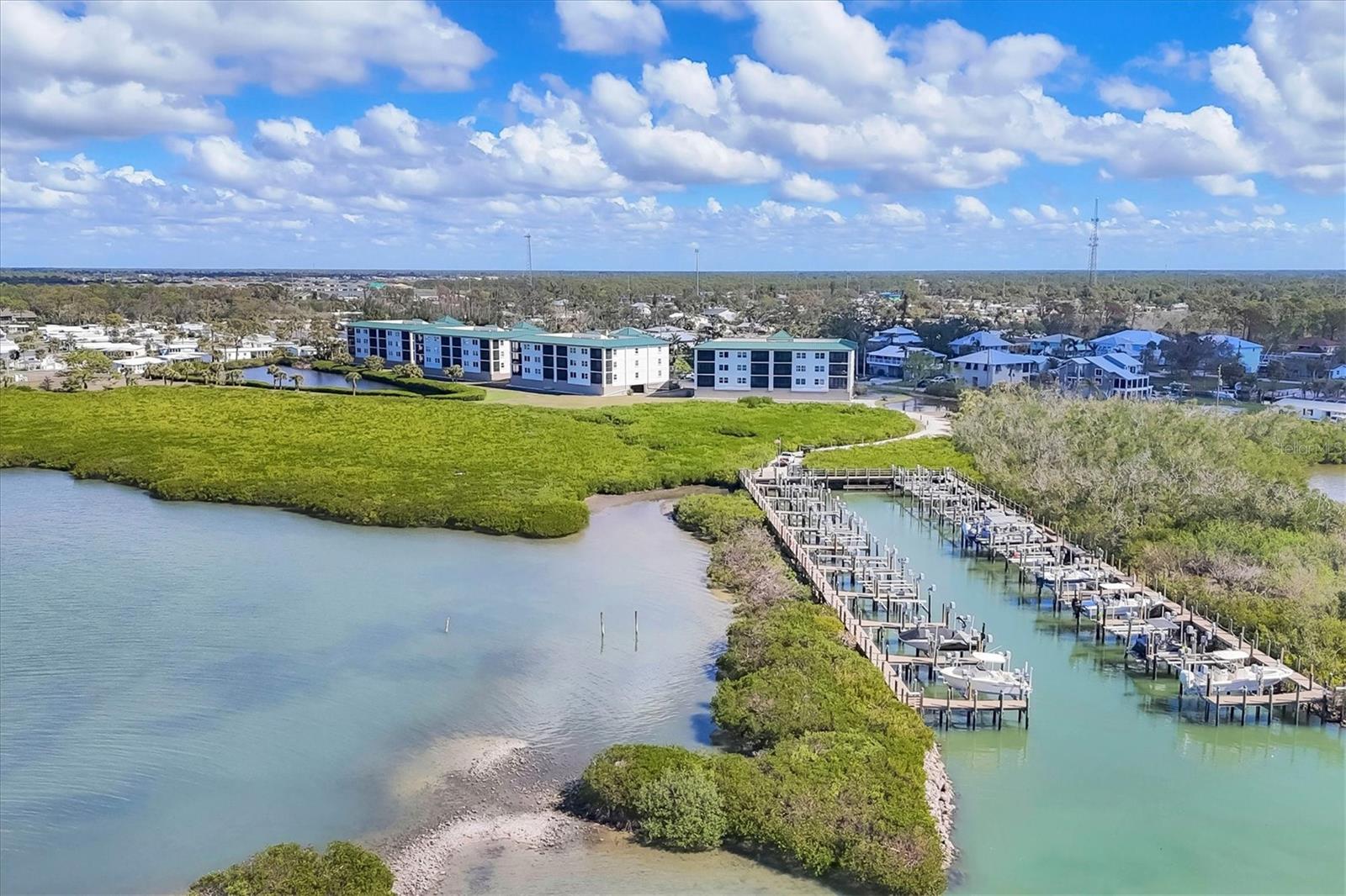 Discover vibrant coastal luxury in this stunning, fully reimagined 3-bedroom, 2.5-bath end-unit condo, built in 2003 and perched along the breathtaking Gulf Intracoastal Waterway. Relish jaw-dropping sunsets and the parade of boats from your expansive screened lanai, where dolphins dance and the waterway flows unobstructed to the Gulf of America via Stump Pass--no bridges in sight. This meticulously renovated retreat blends modern elegance with laid-back coastal charm, designed for both serene relaxation and lively entertaining.Step inside to sleek porcelain tile floors and an open-concept kitchen that's a chef's dream, featuring top-tier stainless-steel appliances, shimmering quartz countertops, chic modern cabinetry, and a sprawling walk-in pantry. The farmhouse sink, complete with a cutting board, drying rack, and disposal, makes meal prep a breeze. The primary suite is your personal oasis, with tranquil bay views, a massive walk-in closet, and direct lanai access. Its spa-inspired en-suite bathroom dazzles with a Bluetooth-enabled walk-in shower, rain head, marble bench, dual quartz-topped sinks, and a linen closet for effortless organization.The smart split floor plan ensures privacy, with a guest wing offering two cozy bedrooms and a full bathroom, plus a versatile bonus den perfect as a home office or flex space. Fresh paint, stylish new lighting, fans, doors, and trim elevate the modern vibe, while a chic half bath keeps guests comfortable. Nestled in a gated community, indulge in resort-style perks: a heated pool and spa, a fitness-packed clubhouse, scenic nature trails, tennis and pickleball courts, a grill area, a private fishing pier, and a 38-slip marina with boat slips available for purchase or lease (ask for details). Enjoy ground-floor convenience with two private parking spaces and locked storage cages for your beach gear, plus spacious elevators for easy access.Just minutes from pristine Gulf beaches, dive into fishing, boating, kayaking, or swimming, with vibrant dining, live music, and entertainment at your doorstep. Conveniently located 15 minutes from Boca Grande, 40 minutes from Punta Gorda Regional Airport, and 60 minutes from Sarasota International Airport, this coastal gem offers the ultimate blend of tranquility and adventure. Don't miss out--schedule your private tour today and make this slice of paradise yours!