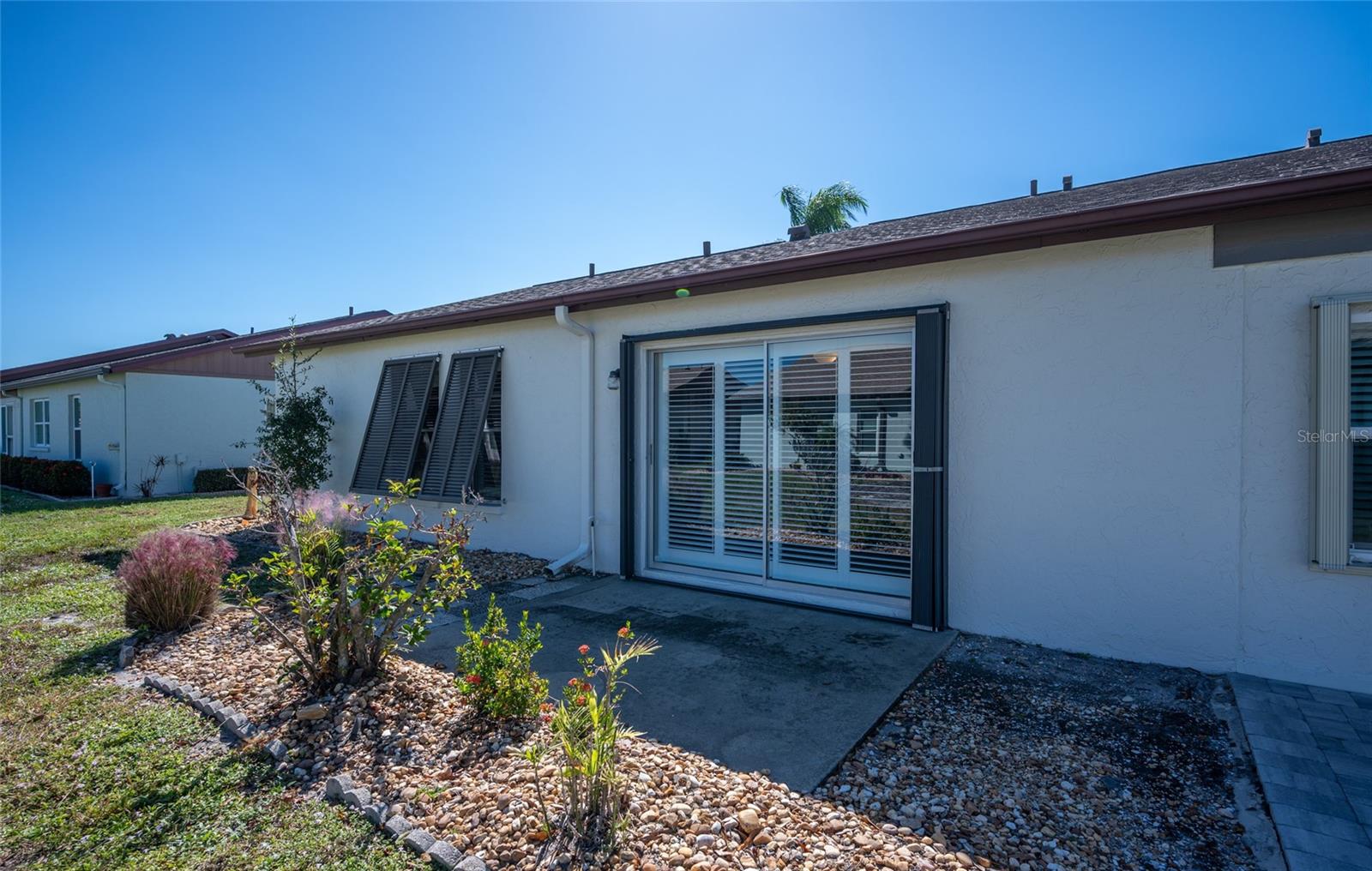 Exterior: Hurricane Shutters, Lighting, Rain Gutters, Sidewalk