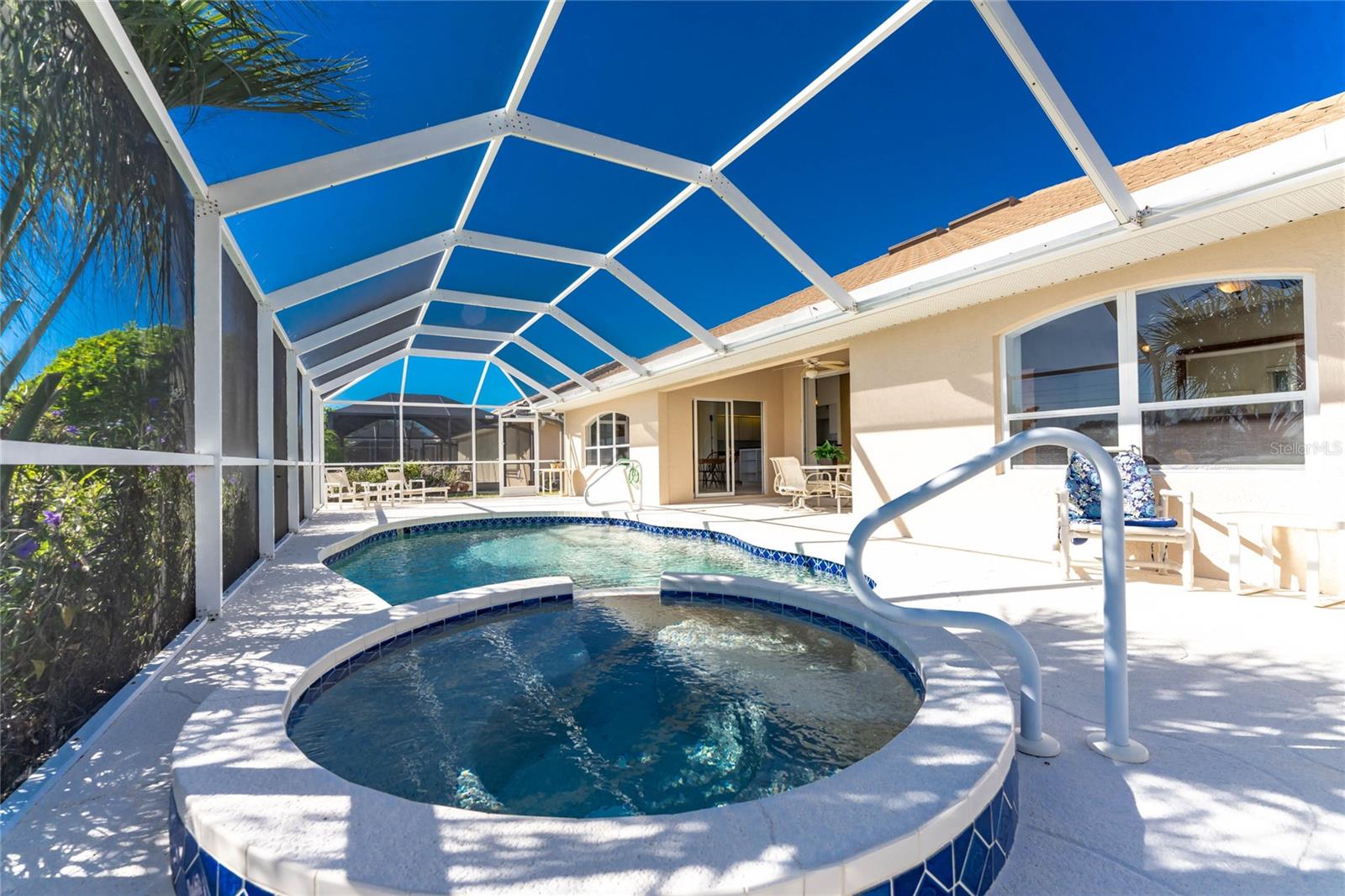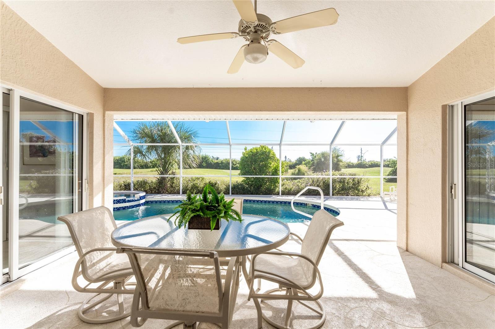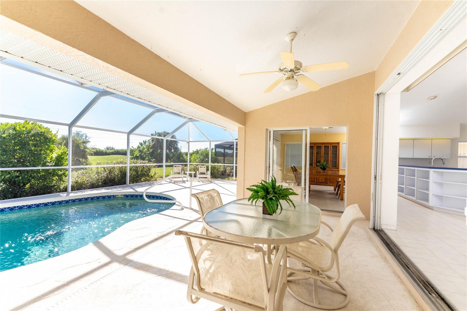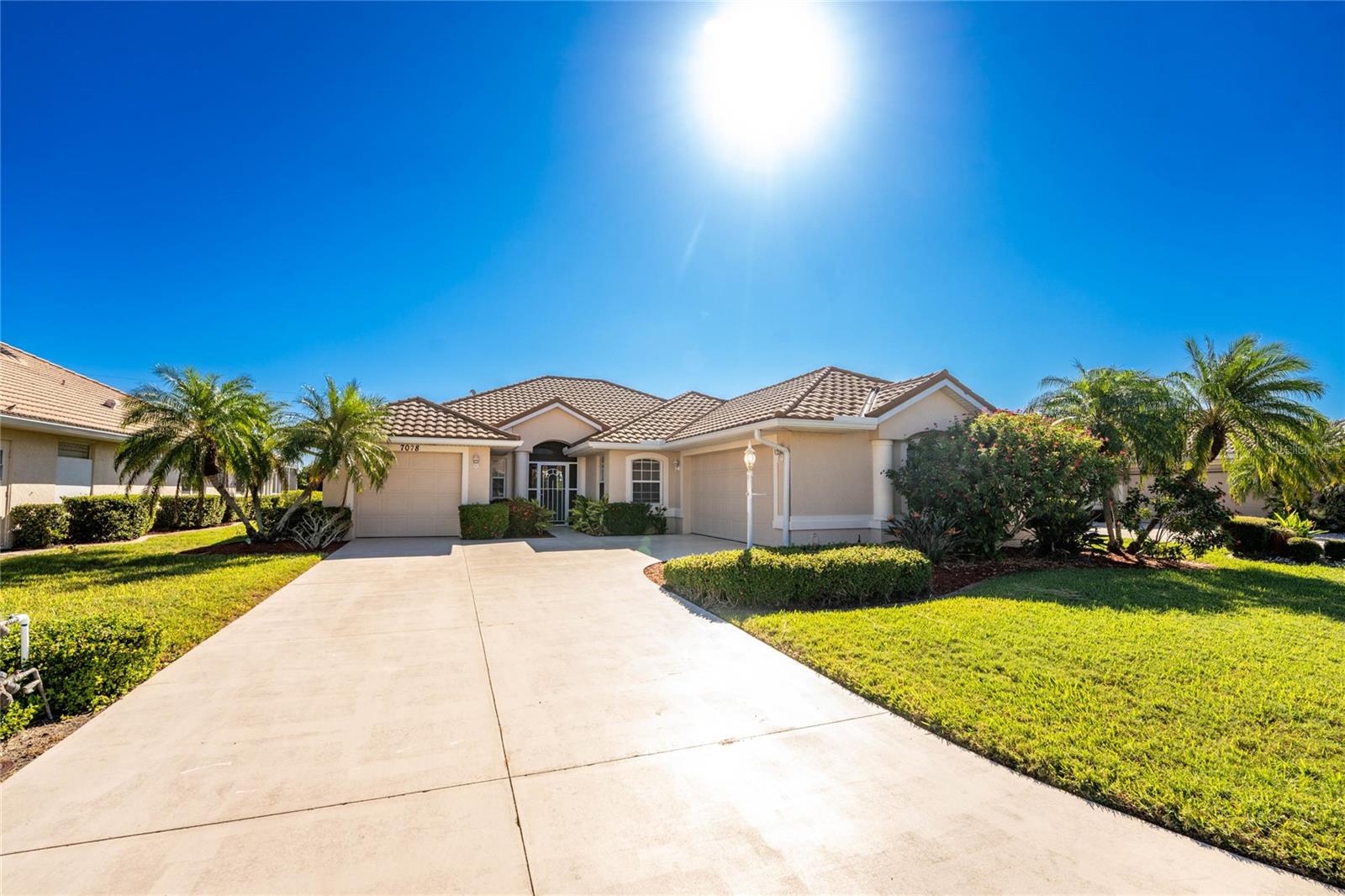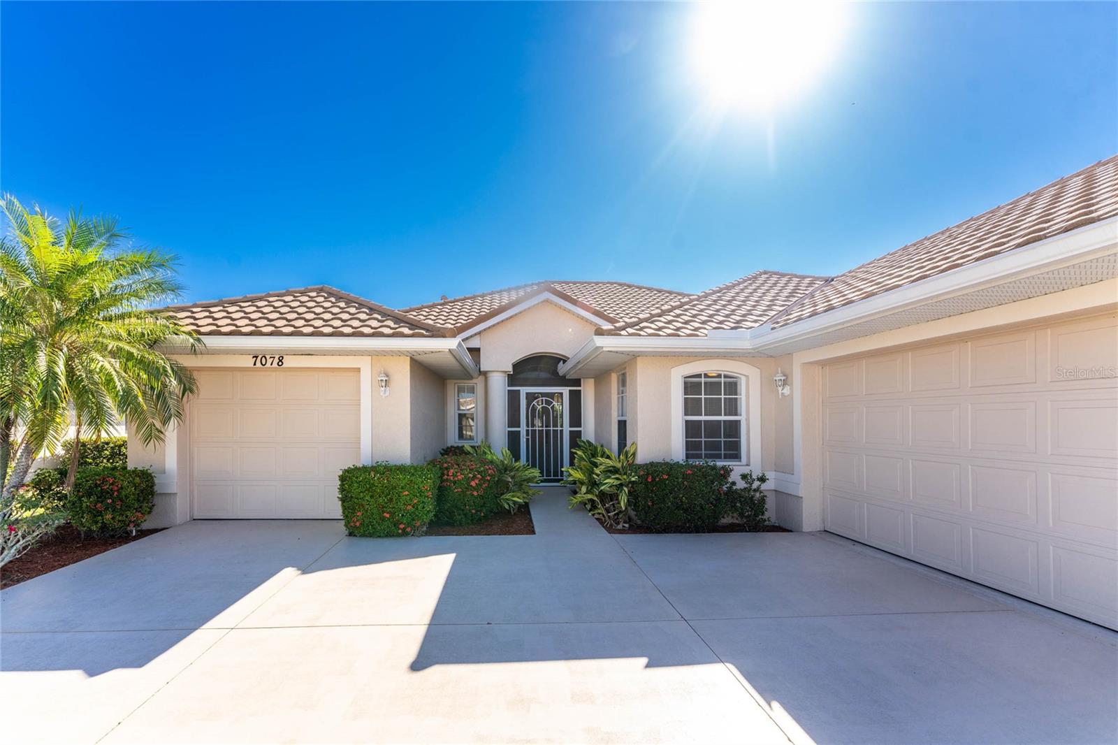 Wake up to spectacular sunrises over your lanai and start each day surrounded by the beauty and tranquility of Oyster Creek, a 24-hour gated community known for its resort-style living. This classic three-bedroom, two-bathroom pool home is perfectly positioned in the X flood zone and features a 2024 metal tile roof, a two-car side entry garage plus a separate golf cart garage. The curb appeal is enhanced by mature landscaping and a welcoming screened front entry with a transom window and sidelights that let the sunshine in. Inside, tile flooring runs throughout, creating a bright, low-maintenance space filled with natural light from multiple sliding glass doors and a large window overlooking the pool and fairway. This home is also being sold partially furnished. The kitchen offers white cabinetry, plenty of countertop space, a reach-in pantry, plant shelves, and built-in bookcases that face the dining area, creating an inviting and functional setting for gathering. The ensuite primary bedroom opens to the pool and lanai through sliding doors and includes both a walk-in and reach-in closet, a tray ceiling, dual vanities, and a fully tiled walk-in shower. Two comfortable guest bedrooms with reach-in closets and a guest bath with a tub and shower combination provide a relaxing space for visitors. The interior laundry room includes cabinets and a laundry sink for added convenience. Step out to the partially covered and screened lanai and take in the relaxing atmosphere. The sparkling pool and spa are surrounded by a large deck that invites quiet afternoons or lively evenings spent with family and friends. Oyster Creek is a beautifully maintained, 24-hour gated community designed for easy Florida living. Residents enjoy an active lifestyle with access to the clubhouse, fitness center, community pool and spa, tennis, pickleball, and bocce courts, along with a full calendar of social events and activities. The neighborhood is golf-cart friendly and offers miles of scenic streets for walking, biking, and easy conversation with neighbors. Golfers will appreciate that the community's public course has recently been updated, offering a midsize layout suited for all ages and skill levels along with a pro shop, snack bar, and putting green. The location is ideal, close to Ann Dever Park with walking trails and a dog park, nearby Gulf beaches, spring training baseball facilities, shopping, dining, and medical offices just outside the gate. This home blends everyday comfort with a lifestyle built around sunshine, recreation, and enjoying an active lifestyle. Ready to learn more about 7078 S. Lake Drive? Contact us today to schedule your private showing.