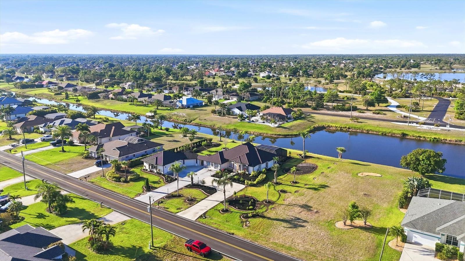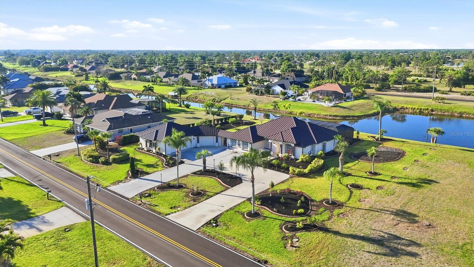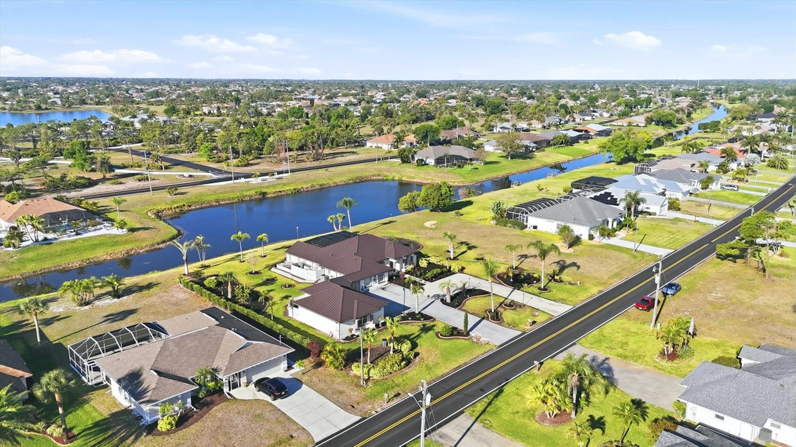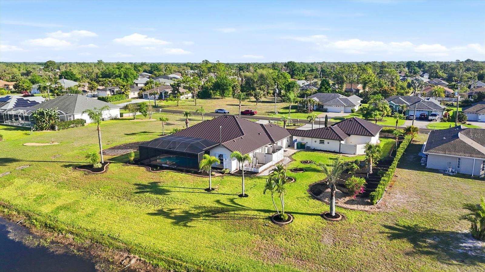 One or more photo(s) has been virtually staged. When heading down a new path, the journey becomes infinitely more pleasurable when your destination is this spacious and welcoming home. Rich in curb appeal, with beautiful, updated tropical landscaping, and nourished by a zoned irrigation system, the property surrounds a distinctive circular driveway that marries practicality with aesthetic beauty, providing a timeless and elegant greeting for all who arrive. Situated on a highly desirable double-waterfront estate lot in an X-flood zone, this home prioritizes bringing nature inside via seamless indoor-outdoor connections. The front entry provides a clear sightline to the lanai, featuring its sparkling pool, attractive paver patio, and panoramic pool screen (2023), which effectively showcases a wide, tranquil canal view. The home's thoughtfully designed spaces evolve visually and blend seamlessly with a neutral color palette that promotes calm, resulting in a clean, uncluttered look. Throughout the home, expansive sliders gracefully integrate indoor and outdoor living areas, effectively capturing the essence of Florida living. At the same time, the oversized lanai offers an all-season style conducive to al fresco living. This gathering spot provides privacy and a serene view of the canal. At the heart of the home is the kitchen, where a light, airy feel prevails, with abundant cabinetry paired with a prep island, upgraded stainless-steel appliances (including a double oven), and a Bosch dishwasher. A large laundry room is conveniently located nearby and offers built-in cabinetry, a washer/dryer, and a laundry sink. After a fun-filled day at Englewood Beach, relaxation is encouraged in the Primary suite, which opens to the pool via sliding doors. Its ensuite bathroom is spa-inspired. Highlights include a generous walk-in shower, a soaking tub, and dual vanities. Guest privacy is ensured, with two additional bedrooms and a shared bath outfitted with a tub/shower combination. There are TWO BONUS ROOMS, perfect for use as a home office and/or fitness room. Resident hobbyists, car enthusiasts, or contractors will appreciate the SPACIOUS 1125 SQ.FT. GARAGE with illuminated attic storage and ample room to house multiple cars, a boat, or a home workshop--the choice is yours! OTHER NOTABLE UPDATES INCLUDE a standing seam metal roof with dry-in underlayment designed for long-term durability and insurance favorability (2023), a 50 amp Level 2 EV charging outlet, a professionally installed transfer switch for easy generator hook-up, Hansgrohe faucets, Schonbek chandeliers in the dining room and foyer, a new water heater (2026) and for additional peace of mind, there is a security system comprised of Lorax, Ring cameras, and ADT w/wireless back-up, whole-house hurricane protection, dual AC units, and reinforced garage doors. This distinctive home is situated on a double-estate lot in the heart of the highly desirable Rotonda West community. It is within a short drive to the pristine Gulf beaches of Boca Grande and Englewood. There are world-class fishing and boating opportunities, as well as various delectable dining establishments, farmer's markets, and eclectic shopping venues, nearby. Additionally, Rotonda West is a golfer's paradise with five courses within the community. If this sounds intriguing, call today to schedule a private showing and prepare to be captivated by this vibrant community, where every day feels like a vacation. SELLER FINANCING AVAILABLE AT 4.25% FOR QUALIFIED BUYERS.