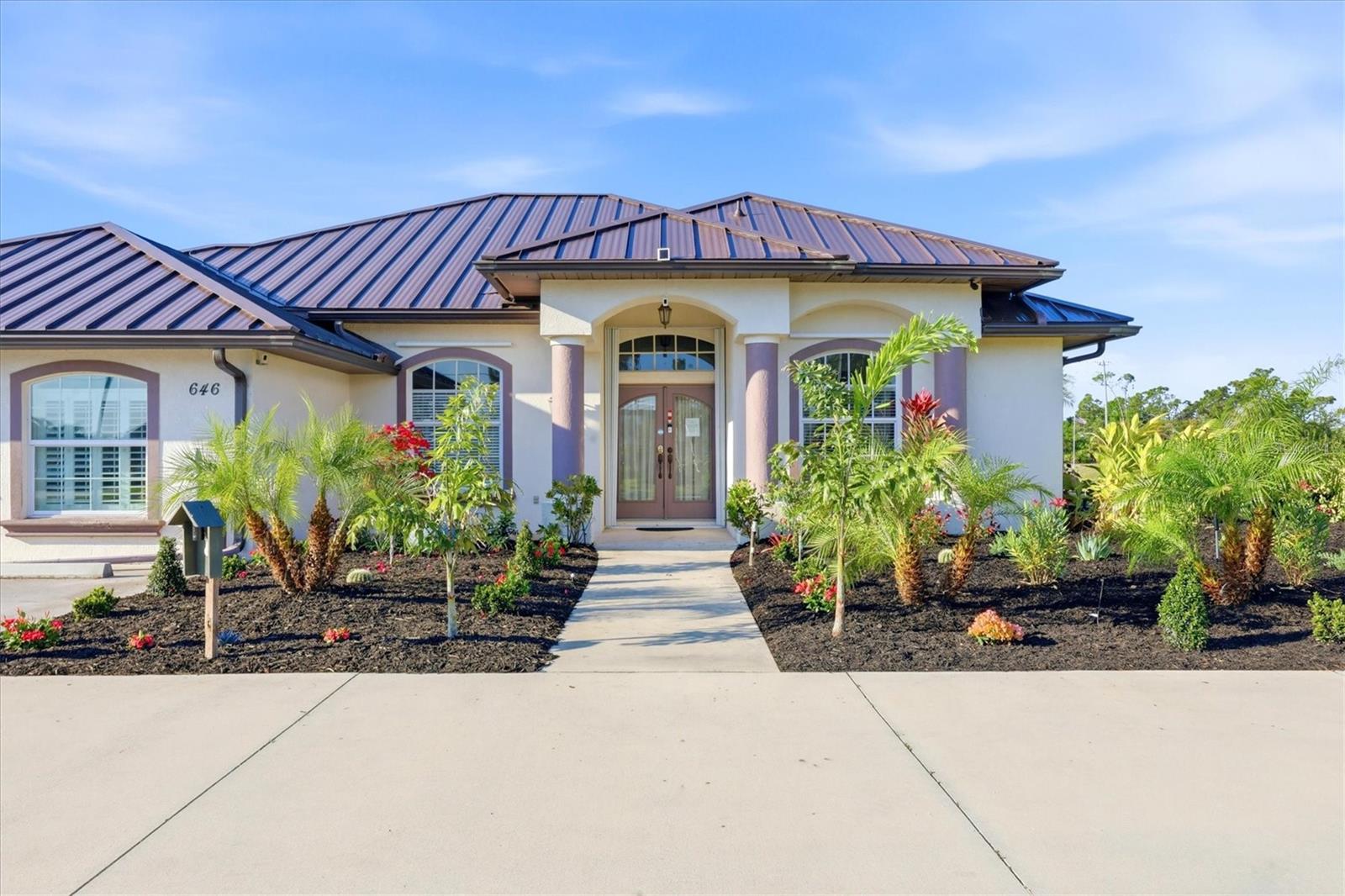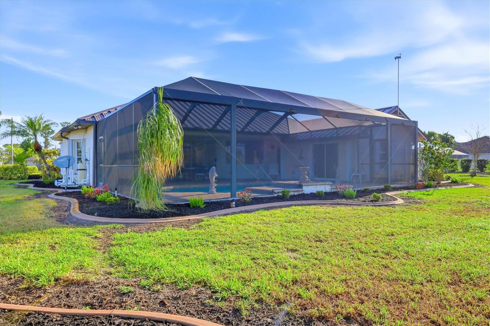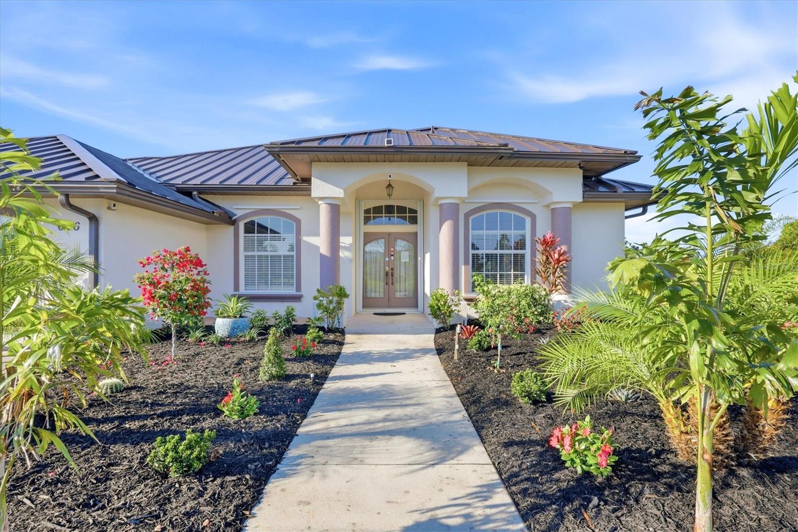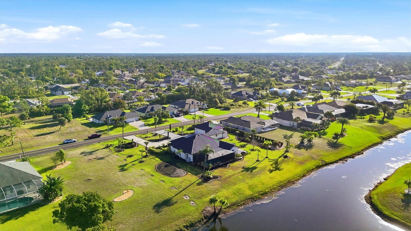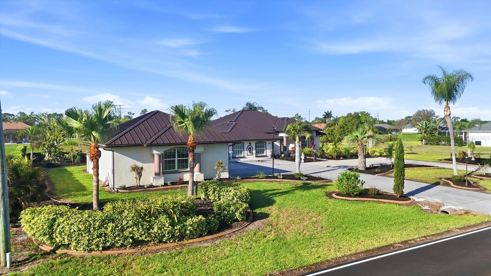 One or more photo(s) has been virtually staged. When heading down a new path, the journey becomes infinitely more pleasurable when your destination is this spacious and welcoming home. Rich in curb appeal, with beautiful, updated tropical landscaping, and nourished by a zoned irrigation system, the property surrounds a distinctive circular driveway that marries practicality with aesthetic beauty, providing a timeless and elegant greeting for all who arrive. Situated on a highly desirable double-waterfront estate lot in an X-flood zone, this home prioritizes bringing nature inside via seamless indoor-outdoor connections. The front entry provides a clear sightline to the lanai, featuring its sparkling pool, attractive paver patio, and panoramic pool screen (2023), which effectively showcases a wide, tranquil canal view. The home's thoughtfully designed spaces evolve visually and blend seamlessly with a neutral color palette that promotes calm, resulting in a clean, uncluttered look. Throughout the home, expansive sliders gracefully integrate indoor and outdoor living areas, effectively capturing the essence of Florida living. At the same time, the oversized lanai offers an all-season style conducive to al fresco living. This gathering spot provides privacy and a serene view of the canal. At the heart of the home is the kitchen, where a light, airy feel prevails, with abundant cabinetry paired with a prep island, upgraded stainless-steel appliances (including a double oven), and a Bosch dishwasher. A large laundry room is conveniently located nearby and offers built-in cabinetry, a washer/dryer, and a laundry sink. After a fun-filled day at Englewood Beach, relaxation is encouraged in the Primary suite, which opens to the pool via sliding doors. Its ensuite bathroom is spa-inspired. Highlights include a generous walk-in shower, a soaking tub, and dual vanities. Guest privacy is ensured, with two additional bedrooms and a shared bath outfitted with a tub/shower combination. There are TWO BONUS ROOMS, perfect for use as a home office and/or fitness room. Resident hobbyists, car enthusiasts, or contractors will appreciate the SPACIOUS 1125 SQ.FT. GARAGE with illuminated attic storage and ample room to house multiple cars, a boat, or a home workshop--the choice is yours! OTHER NOTABLE UPDATES INCLUDE a standing seam metal roof with dry-in underlayment designed for long-term durability and insurance favorability (2023), a 50 amp Level 2 EV charging outlet, a professionally installed transfer switch for easy generator hook-up, Hansgrohe faucets, Schonbek chandeliers in the dining room and foyer, a new water heater (2026) and for additional peace of mind, there is a security system comprised of Lorax, Ring cameras, and ADT w/wireless back-up, whole-house hurricane protection, dual AC units, and reinforced garage doors. This distinctive home is situated on a double-estate lot in the heart of the highly desirable Rotonda West community. It is within a short drive to the pristine Gulf beaches of Boca Grande and Englewood. There are world-class fishing and boating opportunities, as well as various delectable dining establishments, farmer's markets, and eclectic shopping venues, nearby. Additionally, Rotonda West is a golfer's paradise with five courses within the community. If this sounds intriguing, call today to schedule a private showing and prepare to be captivated by this vibrant community, where every day feels like a vacation. SELLER FINANCING AVAILABLE AT 4.25% FOR QUALIFIED BUYERS.