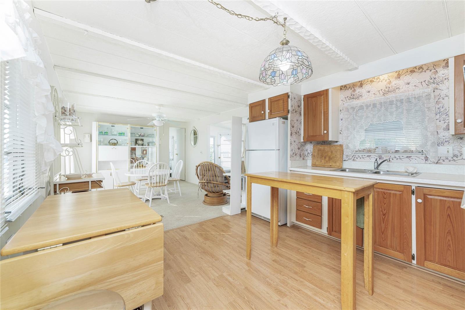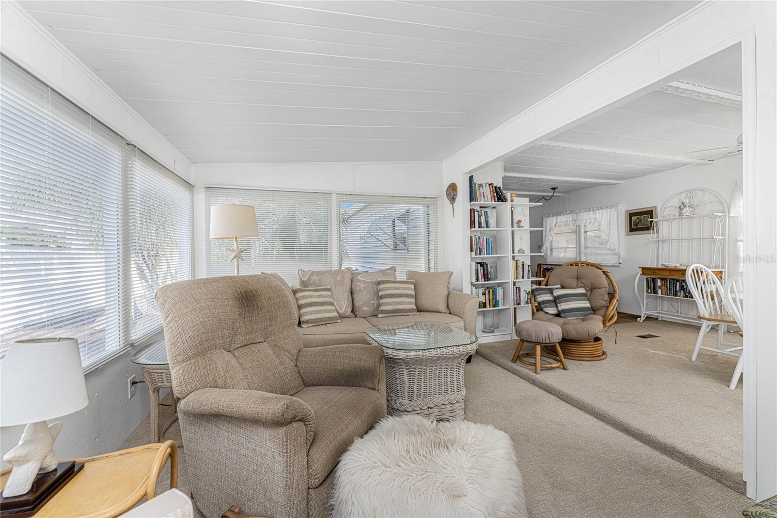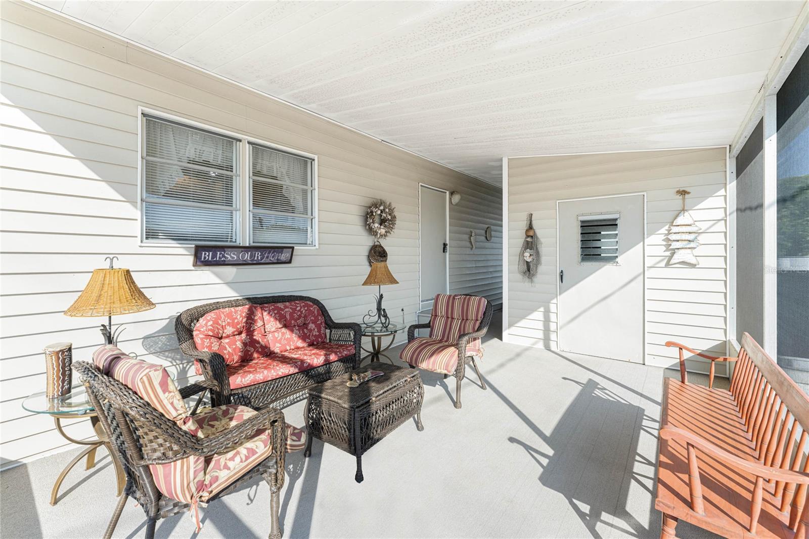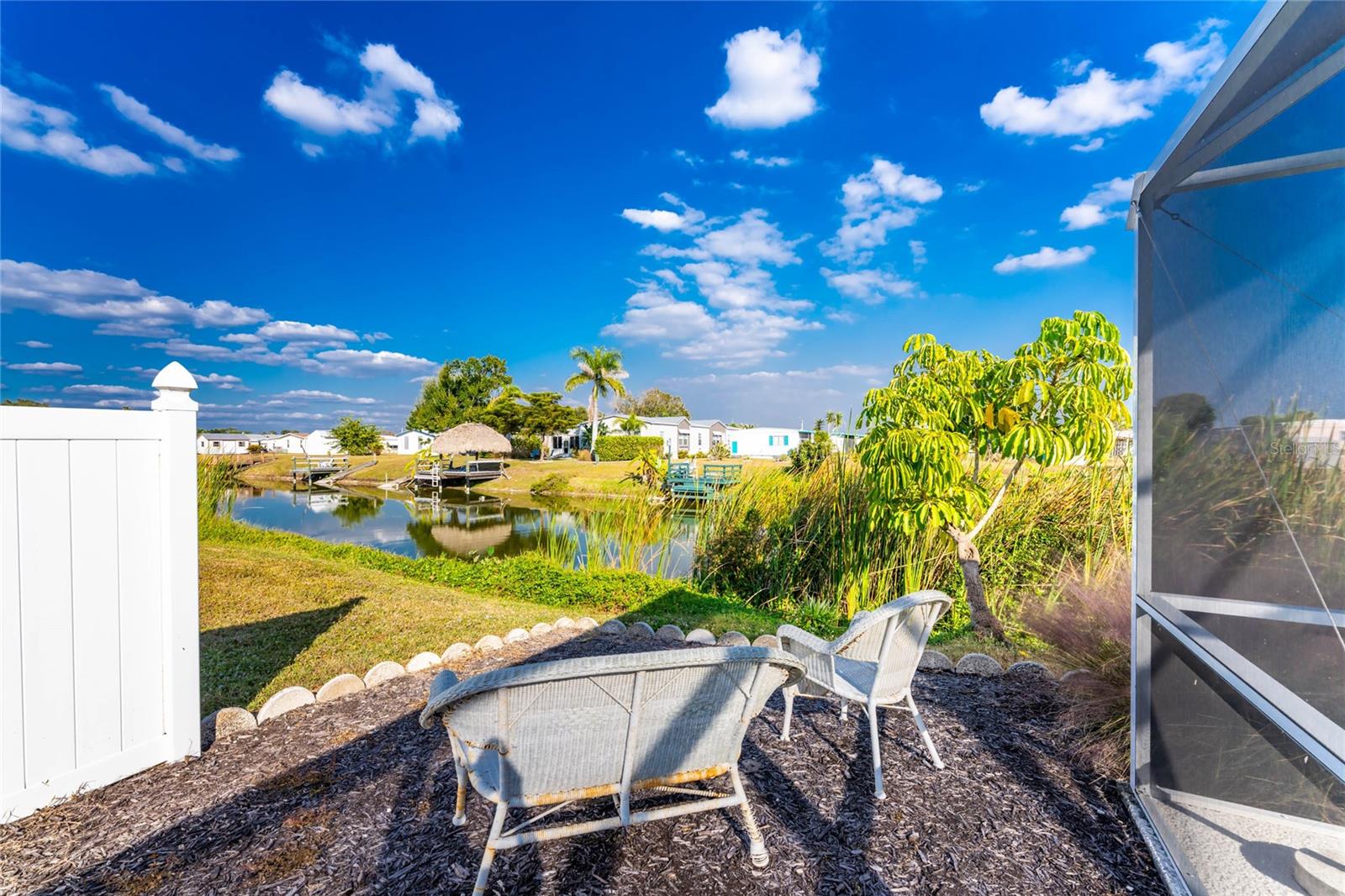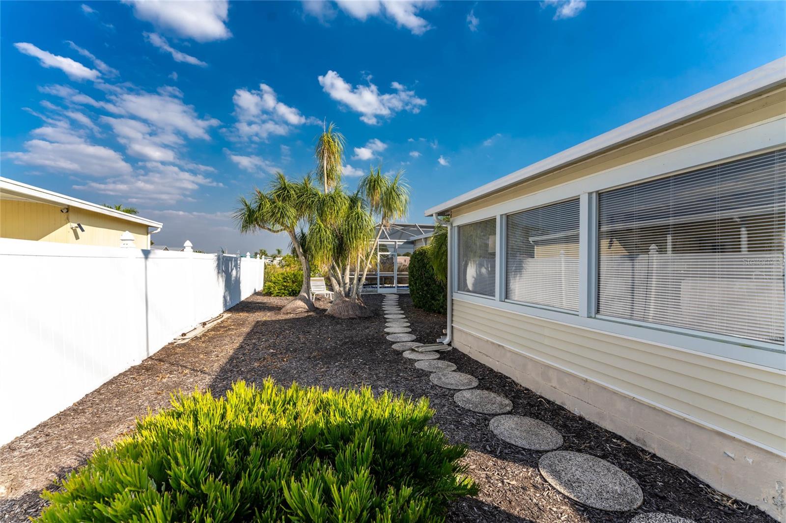 Don't wait to take a look at this WELL -PRICED 2 bedroom/2 bath TURNKEY FURNISHED manufactured home with CAGED POOL on REDFISH CANAL, located in "Manatee Cove", and just minutes to Englewood Beach! Enjoy your morning coffee on the screened lanai or perhaps out in the CAGED POOL area. There's plenty of room due to the "bump out" -the living/dining and kitchen areas are all very open and feel quite spacious! Popular split plan with a bedroom and bath at each end of the manufactured home. Primary bedroom features carpeted flooring, built in wall closet, ceiling fan, and sliding glass doors right on out to the caged pool enclosure! Primary Bath has a combo tub/shower. Guest bedroom - in the front of the home, features carpeted flooring and built in closet and adjoining bath has a shower. Laundry hookups are located in the utiility room behind the lanai. CAGE WAS REPLACED IN 2024. AC NEW IN 2024! There's a transferable warranty for Permacote Waterproofing Roof Coating System that seller credits with saving his roof during recent storms. There's an additional storage shed, and the left side of the home is very private, provided by a vinyl fence. Shell yard makes maintenance easy and also would be a good place for a fire pit. This is a popular "over 55' manufactured home park, with a low annual fee of only $150. There's a community clubhouse, shuffleboard and pickleball, plus a community boat ramp, providing boating access out through Ainger Creek and on to Lemon Bay and gorgeous white sand beaches!