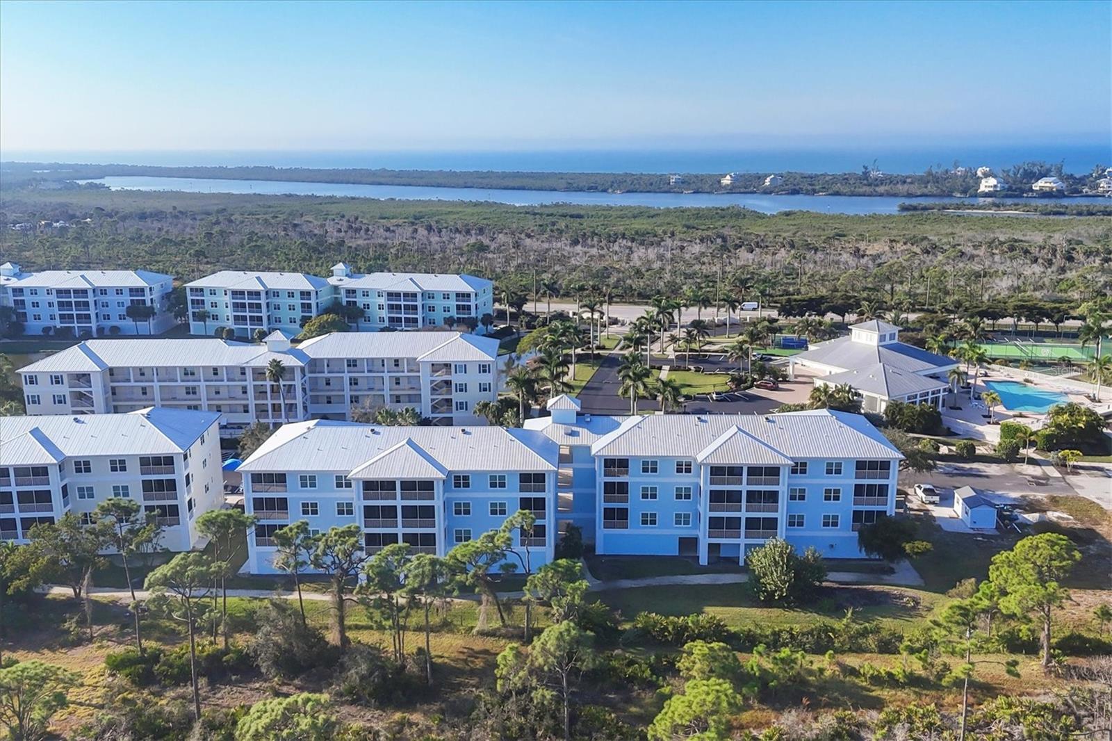 Welcome to your slice of paradise in this resort-style condo FULLY FURNISHED located on the 4th floor, offering a serene view of the lush preserve from your screened-in porch. Step into luxury living with a new elevator system granting easy access and a coveted tandem 2 CAR GARAGE equipped with a humidifier and ample storage space beneath the building. Recently adorned with fresh coastal-inspired paint, this 2-bedroom, 2-bathroom haven boasts upgraded impact windows and doors for hurricane protection, ensuring peace of mind during storm seasons. Revel in modern comforts with a new A/C, water heater, and metal roof enhancing durability and efficiency. The heart of the home is a chef's dream, featuring a stylish eat-in kitchen adorned with granite countertops, wood cabinets, and a convenient breakfast bar. Whether preparing meals or entertaining guests, the kitchen seamlessly flows into the spacious living and dining area, all offering breathtaking views of the natural surroundings from the screened porch. Retreat to the primary bedroom oasis complete with a walk-in closet and an ensuite bath featuring granite countertops, and newly tiled shower. The generously sized guest room is situated adjacent to the guest bath, ensuring comfort and privacy for family or visitors. Indulge in the unparalleled amenities of the resort-style community, including a heated pool, spa, clubhouse, fitness center, putting green, and courts for pickleball, tennis, and basketball. Explore nearby attractions such as Boca Grande, Don Pedro Island, and Englewood Beach, while marinas, shopping, dining, golfing, boating, fishing, and entertainment are all within easy reach. Embrace an active lifestyle with daily walks along the community sidewalks, knowing you've found the perfect blend of luxury, convenience, and leisure in this coastal gem.