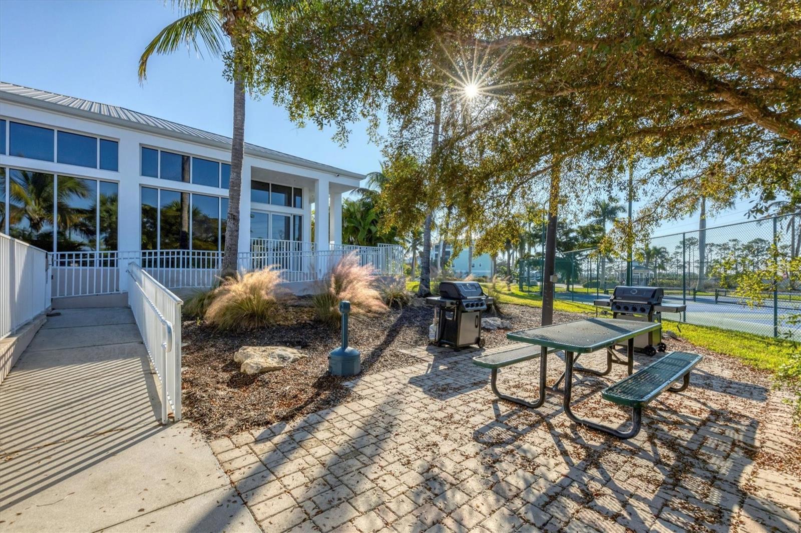 Exterior: Balcony, Lighting, Outdoor Grill, Sidewalk, Sliding Doors, Tennis Court(s)