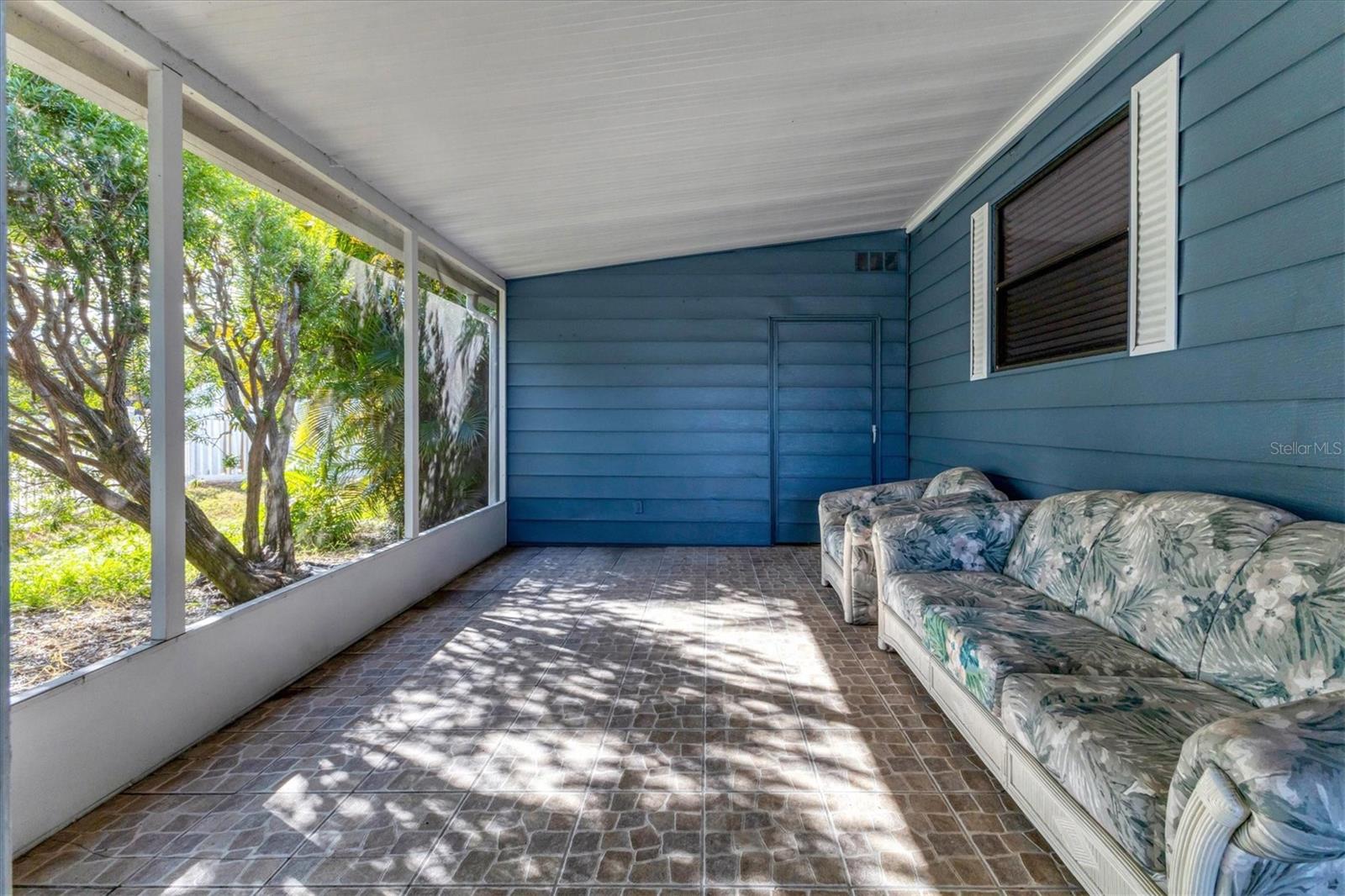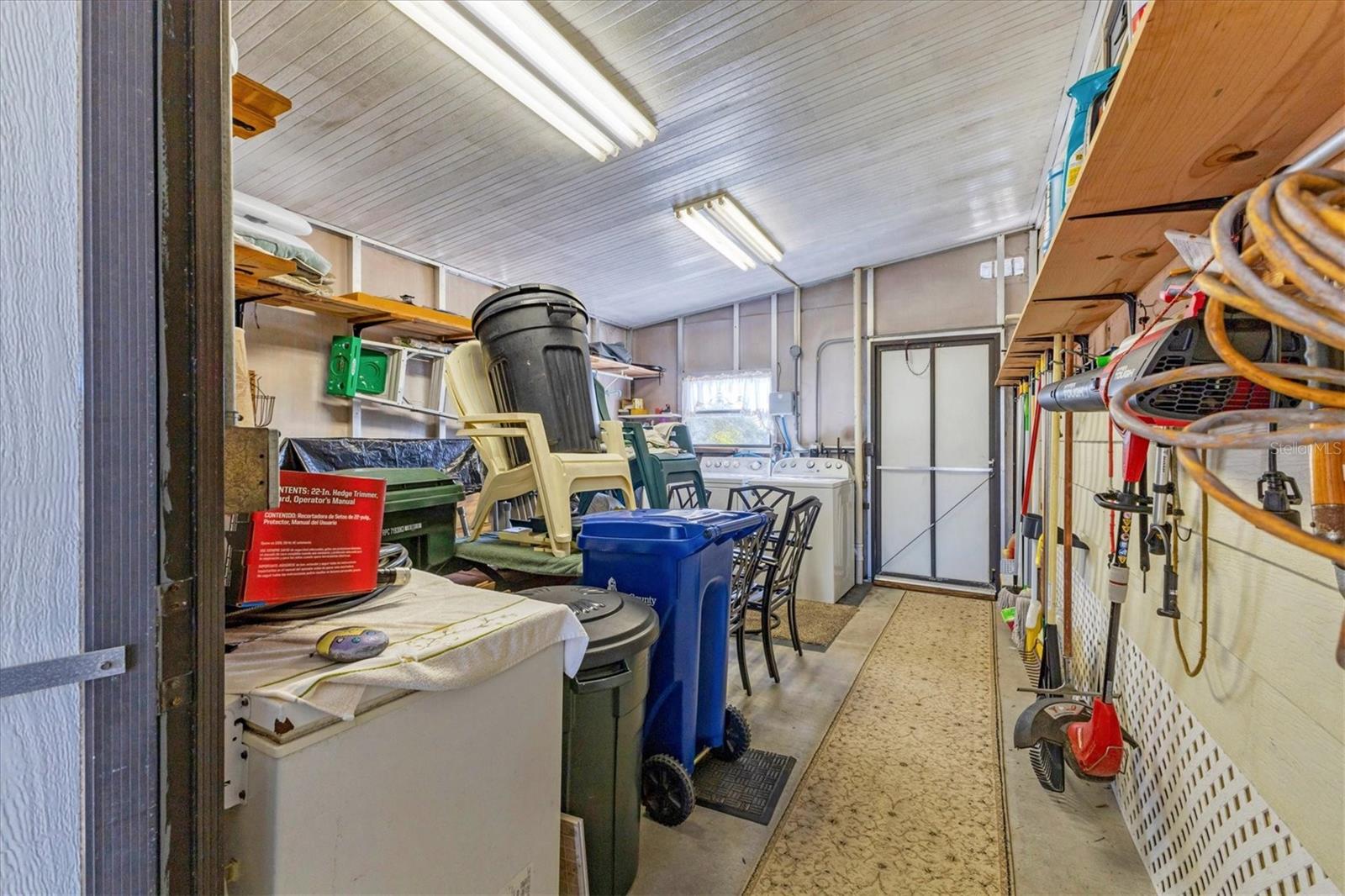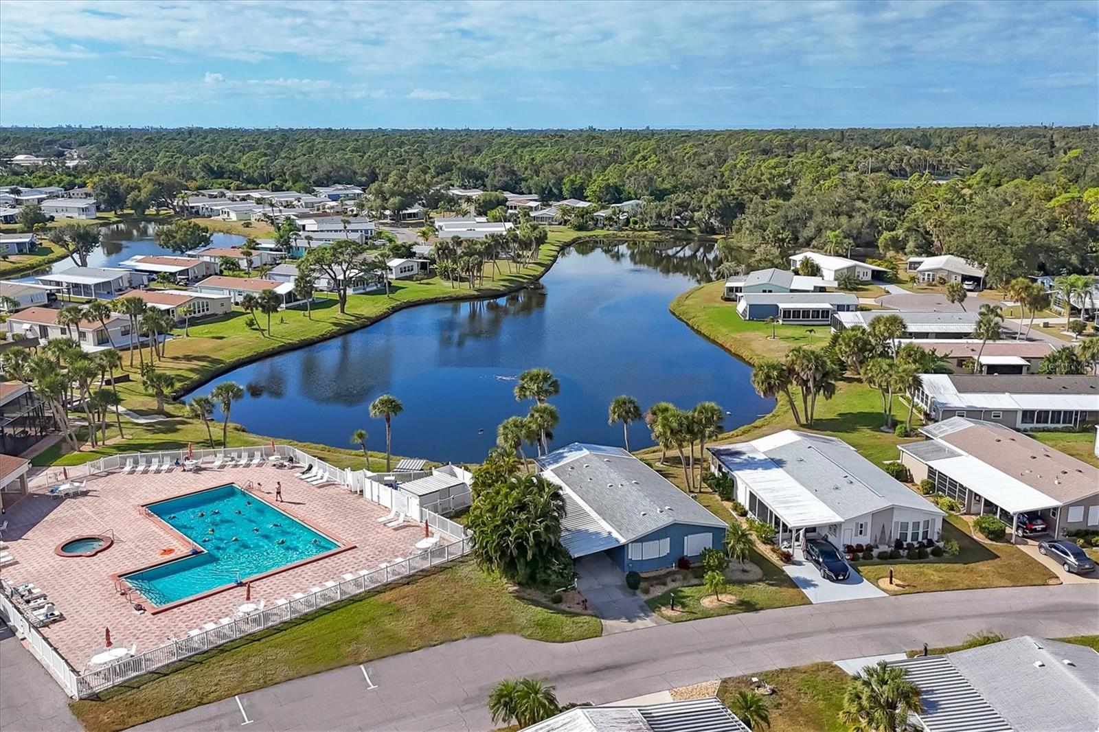 A serene lake view enhances this well maintained, 2-bedroom, 2-bathroom home in Tangerine Woods. This highly sought after, over 55 community, is an active and friendly place to live! For your leisurely pleasure, this community provides you with a large heated pool and clubhouse, an exercise room and library, tennis and pickleball courts, walking trails, shuffleboard and so much more! This turn-key furnished home, boasts shiny laminate floors, which offset the light and bright living room setting. A bonus room, without a closet, could serve as a reading or craft room, an office space, or a small den to unwind and relax! The large master bedroom, with its ensuite bathroom, has access to the enclosed lanai and tranquil lake view...it even has a wall unit air conditioner to keep you cool when the weather is warm. Off the lanai is a large brick paver patio, which is ideal for your outdoor entertaining. A screened in lanai, just off the carport offers you a second space for outdoor enjoyment and connects to a very large workshop, where the washer and dryer are located. The A/C was replaced in 2022. Space galore is the perfect description of this home, that won't last long. Tangerine Woods is located just minutes from the quaint locally owned shops & restaurants of historic Dearborn Street, world class fishing, and many golf courses. This home offers an ideal Florida lifestyle. Schedule your showing today!