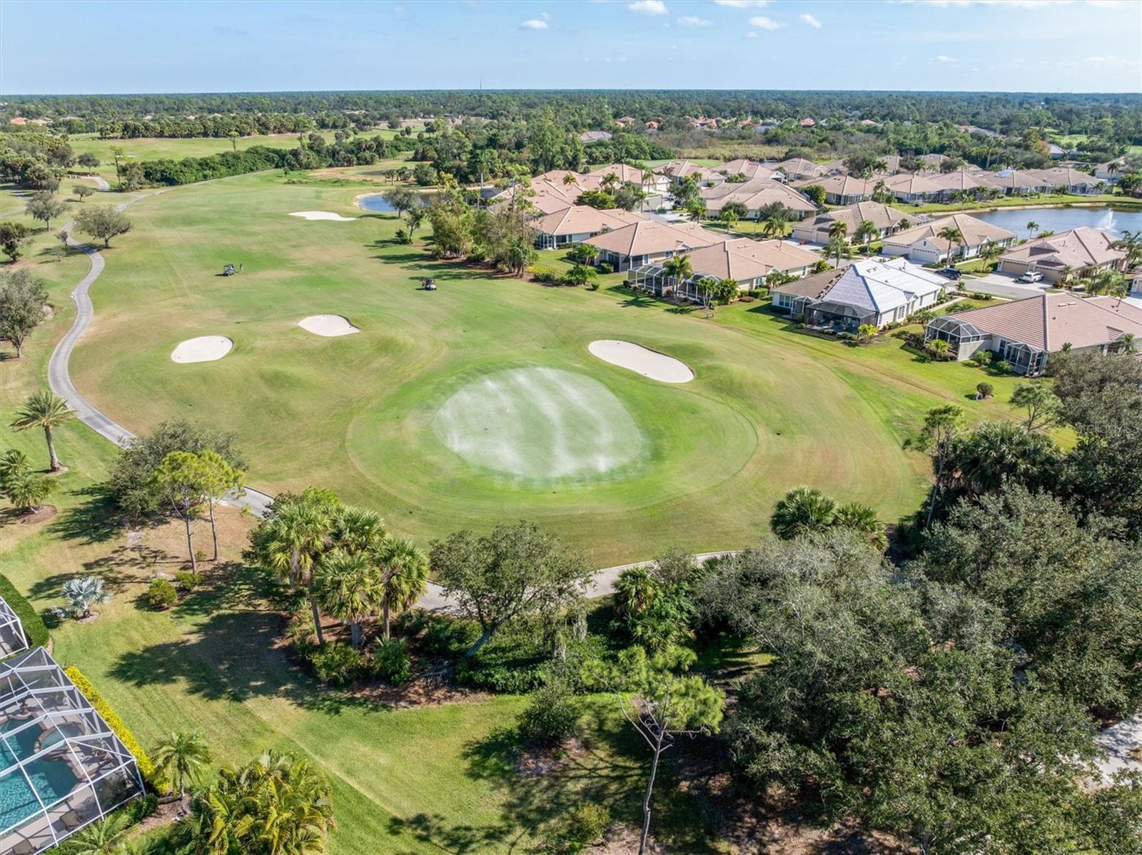 Beautiful TURNKEY villa featuring a heated pool, 2 bedrooms, 2 baths + den, and peaceful views of the 5th hole at Heron Creek Golf & Country Club. This meticulously maintained home shows true pride of ownership and has been thoughtfully updated throughout the years.Step inside and you'll immediately appreciate the bright, open layout. Natural light fills the home through newer hurricane-impact windows (installed 2020-2022), plantation shutters and elegant crown molding. The spacious living room features triple sliders that open to the screened lanai and sparkling pool, offering stunning views of the golf course and colorful sunsets--perfect for relaxing or entertaining. No CDD fees and not in a flood zone.The split floor plan is ideal for guests or family members, offering privacy and separation for everyone. The den provides a quiet retreat for work, guest room and could easily be converted into a third bedroom if desired. The kitchen is perfect for anyone who loves to cook, featuring stainless steel appliances, gas cooking, solid maple cabinetry with pull-out shelves, under-cabinet lighting, Corian countertops, a tiled backsplash, and a cozy breakfast bar with pendant lighting. A separate dining area creates an inviting space to enjoy meals with family and friends.Pride of ownership shines through the extensive list of improvements, including a new tile roof and gutters (2024), interior paint throughout (2024), new LG washer and dryer (2024), updated lanai screens and ceiling fan (2023), fresh exterior paint (2022), new gas water heater (2021), new stainless steel kitchen sink (2021), new HVAC and furnace (2020), landscape lighting upgrades (2020), and multiple pool updates such as a new gas heater, filter, pump, and housing (2019). Additional enhancements include a garage floor coating (2018), refreshed landscaping with new palms and shrubs, and a new garage door spring (2025).Heron Creek Golf & Country Club offers exceptional amenities, including tennis, dining, a fitness center, 21,000 square foot clubhouse with fine and casual dining, heated resort pool and spa and a 27-hole championship golf course designed by renowned architect Arthur Hills. The course features three unique 9-hole layouts that blend natural beauty, water features, and distinctive elevation changes, providing an enjoyable challenge for golfers of all skill levels. The HOA fee covers landscaping, irrigation, outdoor pest control, cable and internet.The location is hard to beat--centrally situated between the Spring Training facilities of the Tampa Bay Rays, the Atlanta Braves and conveniently located between the Sarasota and Punta Gorda airports. The beautiful Gulf beaches are just a short 30-minute drive away, while the Famous Warm Mineral Springs and Downtown Wellen Park are only minutes from your doorstep. This is truly a must-see home offering the best of Florida living in a sought-after gated golf course community.