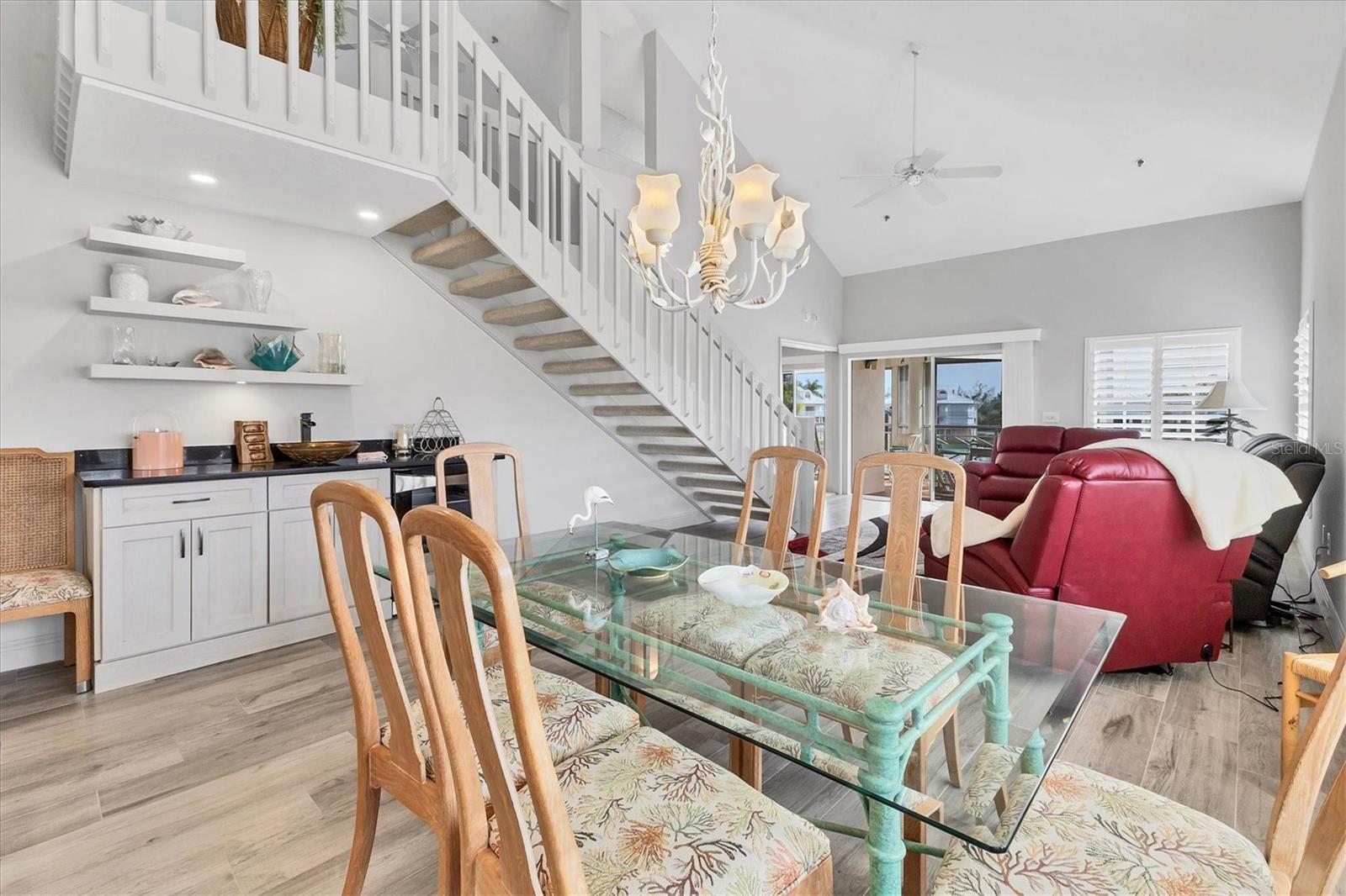 Top floor, end unit 3 bedroom, 3 bath in the gated resort community of Placida Harbour! Beautifully renovated with a redesigned kitchen including a large island, granite counters, an induction stove, and extra storage added with a wall of new cabinetry. The dining area has a wet bar with a wine refrigerator, and a large bay window! The cathedral ceiling in the living and dining areas allow the natural light to fill the space! New ceramic tile flooring throughout all living spaces. Sliders from the living and master bedroom open to a screened lanai overlooking the newly renovated marina and the ICW! The master and a guest bedroom are located on the main living level with the 3rd bedroom and bath on the second level. Great for guests or as a den or office. The 3 baths were also renovated with new tile showers and additional custom cabinetry. Placida Harbour amenities include a gated entry, walking trails, 3 pools, a clubhouse, and tennis / pickleball courts, plus a ferry to a private beach. In addition, a new Marina is being completed with slips available first come first serve!