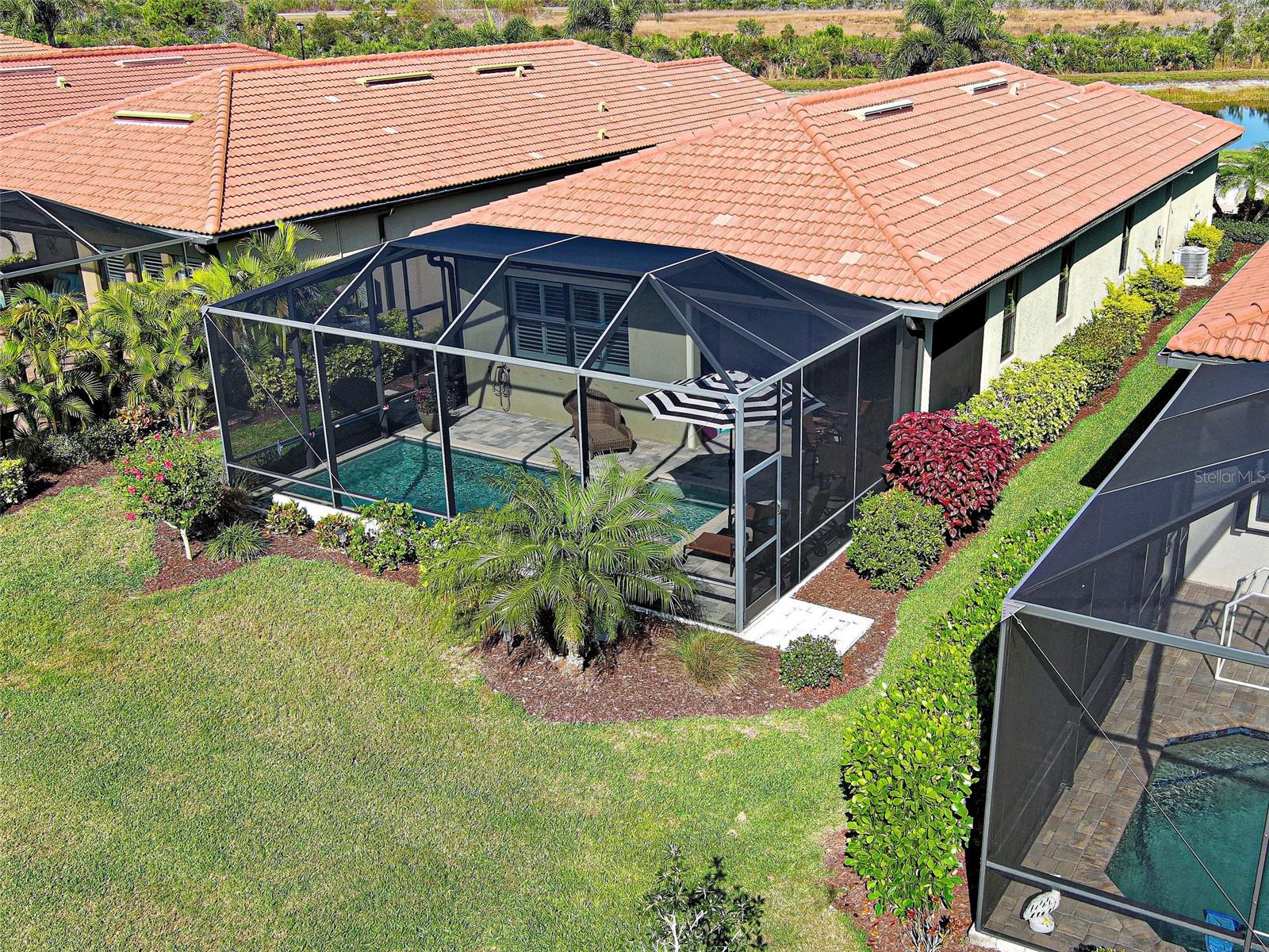 A home that will ABSOLUTELY IMPRESS your most discerning guests and offer you the daily lifestyle you have dreamed of. Your "SLICE OF PARADISE" awaits! Experience the PINNACLE OF OPULENCE and contemporary living within this elegant & sophisticated SALTWATER LAP POOL HOME. This home offers a pristine sanctuary, meticulously constructed by WCI in the highly sought-after Sarasota National Community. The expansive Lanai/Pool area is perfect for entertaining while providing maximum privacy with the preserve behind. This luxurious home is in the Lakes Section so you do not have to pay for the golf course & associated special assessments, yet you are able to pay to play this public course. Accordian shutters, hurricane windows and doors provide whole house protection. Upon entry, a commodious open-concept living space beckons, bathed in natural light pouring through the windows highlighting the decorative diagonal tile flooring, crown molding throughout, tray ceilings, custom ambient lighting & ceiling fans; all of which accentuating the allure of this abode. The EXTRAVAGANT CHEF'S KITCHEN is a showpiece in itself with custom cabinetry, quartz countertops, stainless appliances, large flat island and luxury features galore. Every inch of this 2 bedroom with Den home has custom upgrades. As the sun descents, casting a warm glow over the lanai, revel in the atmosphere enriched by the dancing firelight and serene splash of the fountains in the pool or enjoy watching the sun set from your front patio over the lake. Sarasota National is a gated, master-planned community where luxury living meets the beauty of native Florida landscapes. Every amenity here is designed to complement a relaxed, active lifestyle surrounded by over 1,300 acres of lakes, preserves, and protected green space. At the center of the community is an 18-hole championship golf course designed by Gordon Lewis. As an Audubon International Signature Sancturay, it integrates wet and native habitate to create a visually stunning and environmentally responsible course. The design offers wide fairways and strategic bunkering suitable for golfers of every skill level. The social centerpiece is its expansive 32,000 sq. ft. clubhouse campus. Inside, residents enjoy a variety of dining options from casual poolside fare to elegant evening meals overlooking the fairways. The Palm Club Restaurant and Lounge offers a refined dining experience, while the bar, caf, and meeting spaces create natural gathering spots for friends and neighbors. Explore scenic walking paths, or enjoy the spa pool. Sports enthusiastswill appreciate the tennis, pickleball, and bocce ball courts, while fiitness buffs can take advantage of the impressive 7,000 sq. ft. fitness center, complete with personal trainers. A lifestyle director organizes various social activities. Living in this WCI home means enjoying a harmonious balance of luxury, convenience & community engagement. From fitness and sports to social gatherings and entertainment - residents are able to enjoy all this while being surrounded by the natural beauty of Florida. In addition your four legged fur babies can play in the Doggie Park. This community truly EMBODIES A RESORT-STYLE LIVING experience, making it an ideal choice for those seeking a vibrant and active lifestyle while fostering a warm, connected neighborhood atmosphere. Call today and Start Living Your BEST LIFE EVER with your "SLICE OF PARADISE" here in Sarasota National.