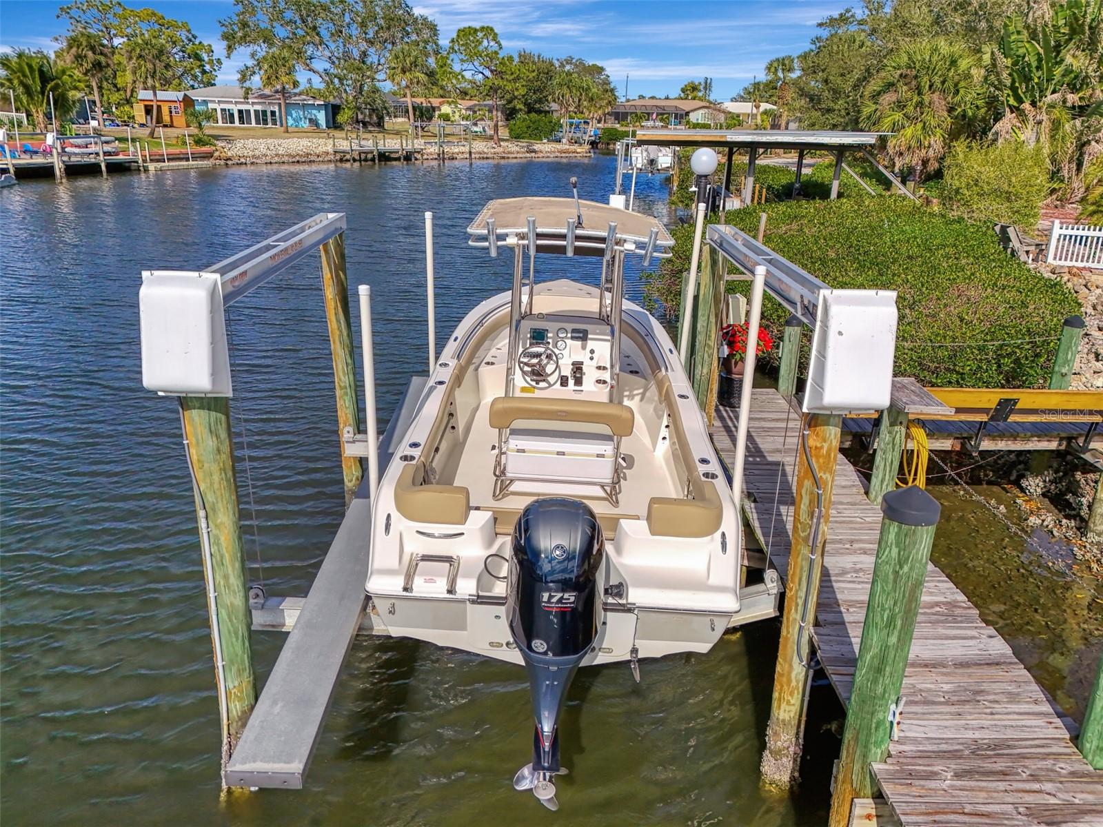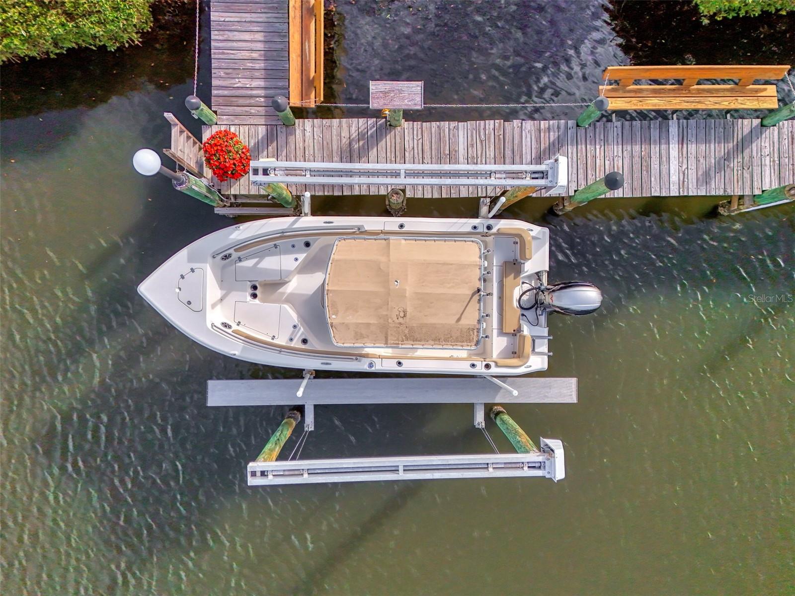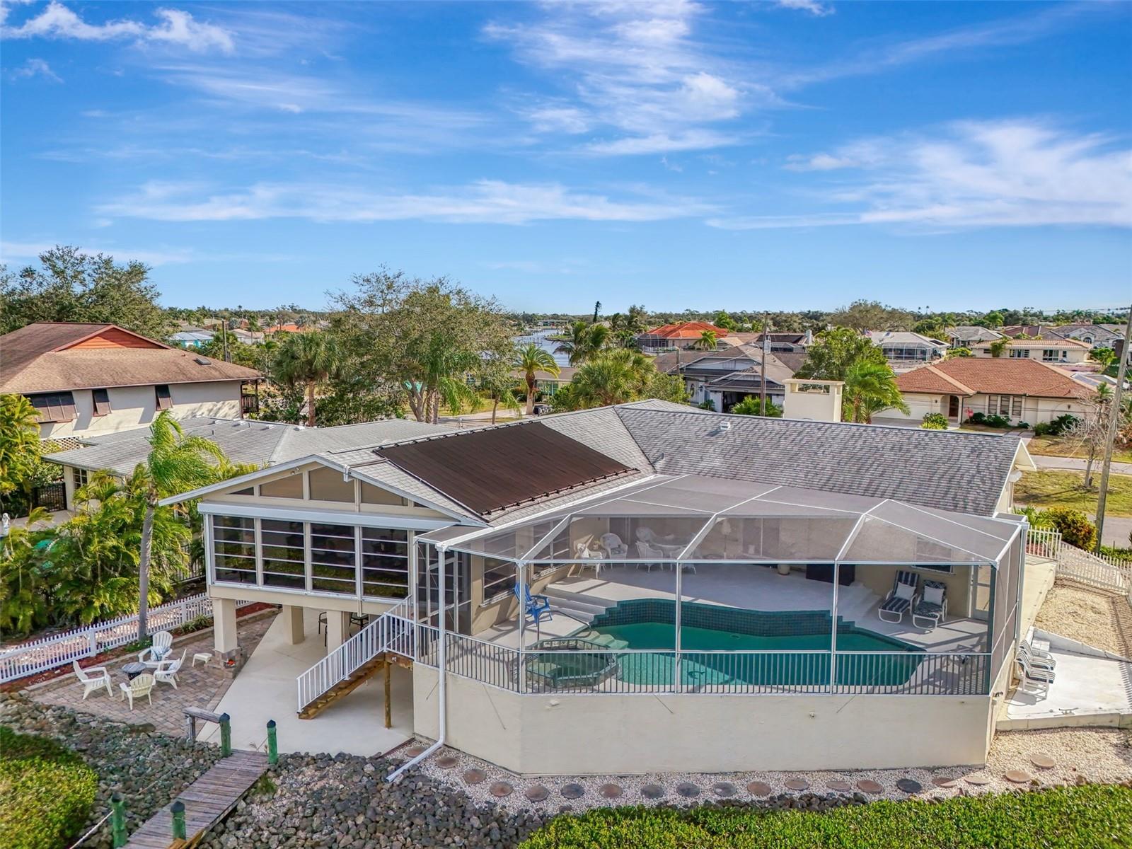 Welcome to your waterfront dream home in the highly sought-after Overbrook Gardens community in Englewood. Perfectly positioned on deep sailboat water with no fixed bridges, this elevated 3-bedroom, 3-bath residence offers direct access to Lemon Bay and the Gulf of Mexico, making it an ideal retreat for serious boaters and water lovers alike. Enjoy breathtaking sunset views and spectacular water vistas from the expansive elevated pool deck, where outdoor living takes center stage. The property features a 60' private boat dock complete with a 10,000-lb boat lift, offering effortless days on the water right from your backyard. Inside, the home impresses with a sprawling and thoughtfully designed layout, featuring three generously sized en-suite bedrooms, providing comfort, privacy, and flexibility for hosting guests. The kitchen is designed for both everyday living and entertaining, showcasing solid surface countertops, a large center island, and a wet bar, seamlessly flowing into the dining room highlighted by a cozy fireplace. A tranquil Florida room offers the perfect spot to enjoy quiet mornings or unwind in the evening while taking in peaceful surroundings. This home is well equipped for Florida living with electric Rolladen hurricane shutters on the west side and additional metal hurricane shutters for peace of mind. The two-car garage extends into a spacious lower-level basement area, ideal for storage, a workshop, or hobby space, and includes a window A/C unit. Situated on a quiet cul-de-sac, this exceptional waterfront property combines privacy, boating convenience, and the relaxed coastal lifestyle Englewood is known for. This is a rare opportunity to own a true boater's paradise in one of Englewood's most desirable waterfront neighborhoods.