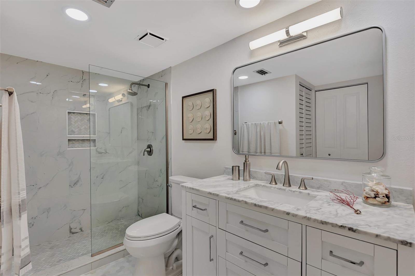 This lovely two bedroom two bath condominium has been completely renovated and includes all hurricane windows and doors, new electrical panel, drywall and recessed lighting. New flooring throughout and a laundry facility was created in the master bath making doing laundry a breeze! The furniture is both beautiful and comfortable. The patio has a bird's eye view of the Gulf of Mexico and the sunsets are amazing! Please come take a look and make this your winter hideaway or your year around home, you won't be disappointed! gulf of Mexico and the sunsets are amazing! Please come take a look and make this your winter hideaway or your year round home, you won't be disappointed. Owner is very motivated!