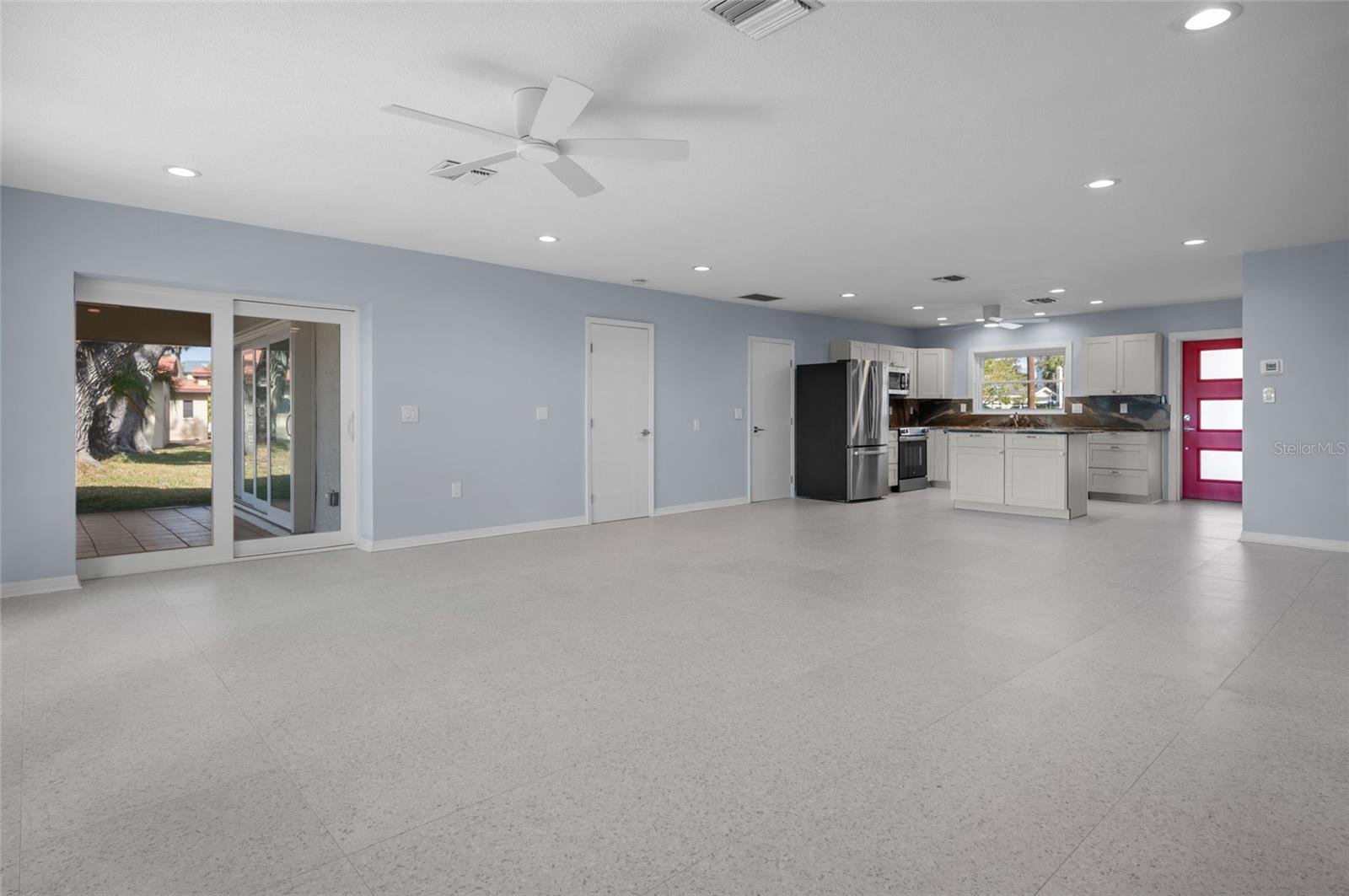 Flooring: Terrazzo, Travertine