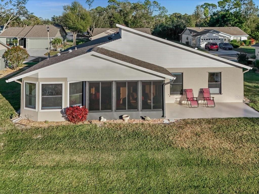 This inviting home offers a relaxed Florida lifestyle within an active and friendly neighborhood, where residents enjoy regular social gatherings at the clubhouse, along with a pool, pickleball, tennis courts and shuffleboard. Stepping inside, the open great room features vaulted ceilings, Pergo wide-plank flooring and a neutral color palette, that complements the natural surroundings, while sliding glass doors open to a screened lanai and patio overlooking a littoral shelf in the foreground with water view beyond--an ever-changing landscape that attracts a variety of birds and wildlife. The kitchen offers updated appliances, generous cabinetry, an island and convenient pantry for everyday ease. A thoughtfully designed split-bedroom floor plan provides privacy for both the primary suite and guest accommodations. A versatile den/office and an inside laundry room add to the home's functionality. Park Forest is known for its low-maintenance living, with HOA fees covering lawn care, irrigation, roof replacement, exterior painting, and common area upkeep, with no flood insurance required. Ideally located near historic Dearborn Street shopping and dining, and less than 15 minutes from the beaches of Manasota Key, Venice, and Nokomis, this home offers comfort, convenience, and a peaceful natural setting in one of the area's most desirable 55+ communities. Home furnishings are optional, ask the listing agent for details.