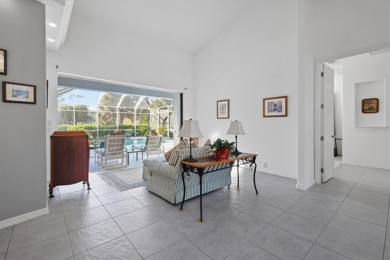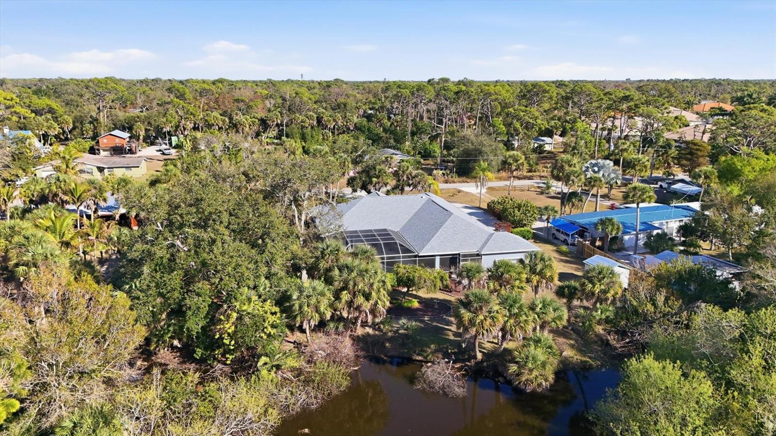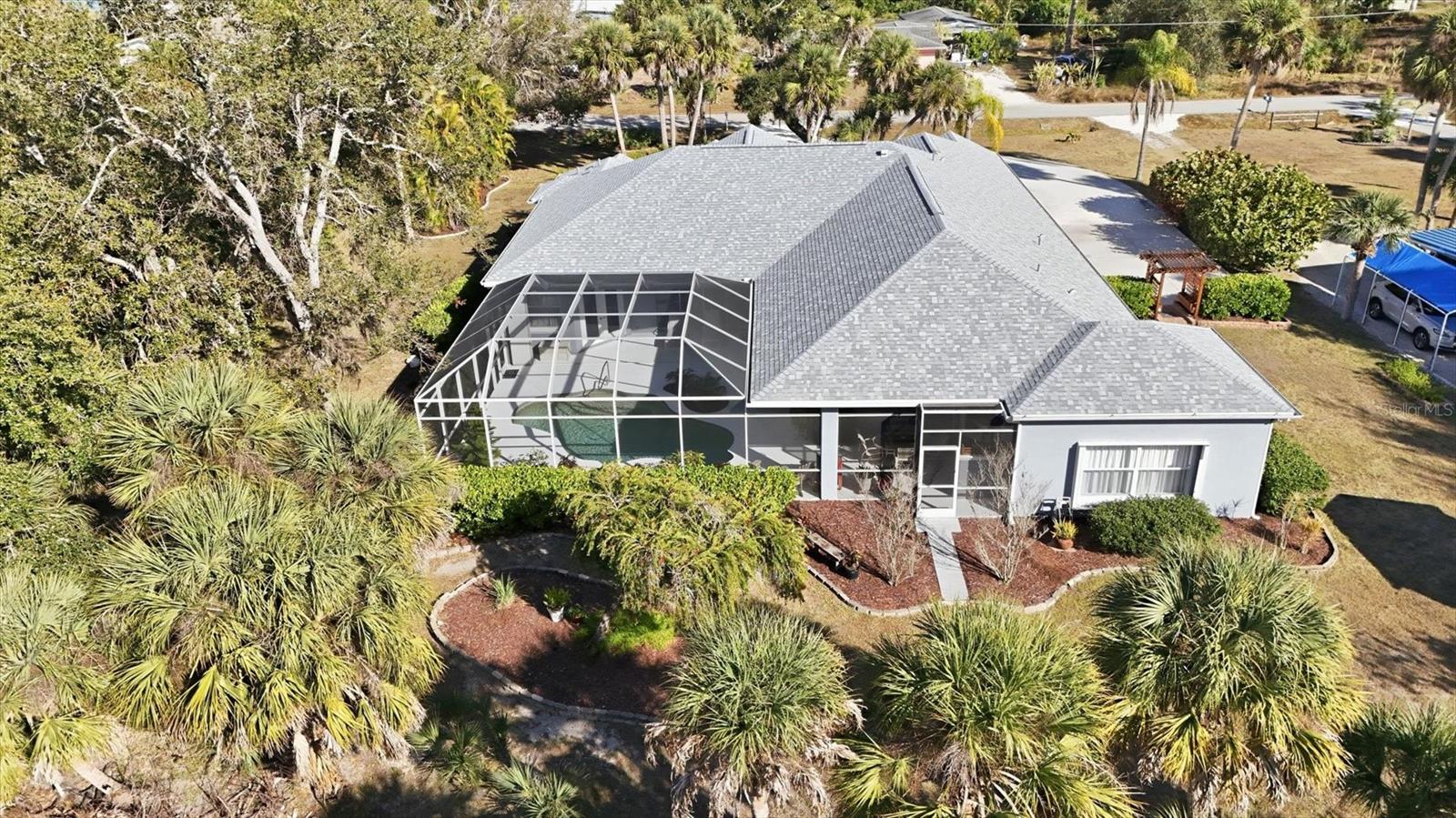 Discover the perfect blend of expansive space, total privacy, and modern luxury at 750 Harmony Lane. Nestled on a rare 0.63-acre oversized lot within the sought-after Artist Acres neighborhood of Englewood, this residence offers a sense of seclusion and freedom that is increasingly hard to find. Boasting over 3,089 square feet of meticulously maintained living space, this masonry-constructed home provides the ultimate "worry-free" lifestyle thanks to an impressive list of recent high-value upgrades, including a total ROOF REPLACEMENT IN 2024, a NEW 5-ton HVAC system (2021), and NEW water heaters (2024 & 2025). The interior is a showcase, featuring 9-foot doors throughout, elegant tray ceilings, and fresh interior paint (2025) that enhances the bright, airy atmosphere. The home's circular driveway immediately signals quality and curb appeal. The interior is designed for both comfort and connection, featuring a versatile 3/4-bedroom, 3-bathroom floor plan that flows effortlessly from one room to the next. The heart of the home is the stunning chef's kitchen, which was recently elevated with sleek new QUARTZ COUNTERTOPS (2025). Boasting an abundance of cabinetry and storage space, this kitchen is as functional as it is beautiful. A large center island provides a perfect spot for casual prep or conversation, overlooking the main living areas to ensure you never miss a moment with family or guests. Adjacent to the kitchen, the cozy dining nook features a stunning aquarium window, offering a panoramic, unobstructed view of the pool and lanai that brings the beauty of the outdoors inside. The master suite serves as a true sanctuary, while the additional bedrooms and large guest baths offer plenty of room for family or visitors. Step through the pocket sliding doors to an outdoor oasis that is a true showstopper. The expansive lanai features multiple distinct areas for alfresco dining, lounging in the shade, or soaking up the sun--it is the perfect setting for entertaining or quiet afternoons. The oversized pool is protected by a RE-SCREENED POOL CAGE IN 2022, and the POOL DECK was professionally repainted in 2025, creating a fresh, resort-style feel. For added convenience after a day at the nearby beach, the property also features a handy outdoor shower, allowing you to rinse off the salt and sand before stepping back into your private sanctuary. For the hobbyist or car enthusiast, the oversized 2.5-car garage includes a dedicated workshop area, providing the perfect environment for DIY projects, woodworking, or organizing gear for your Florida adventures. Because there are NO DEED RESTRICTIONS or HOA fees, you have the ultimate flexibility to bring your boat, RV, and all your outdoor toys, making this the perfect home base for the active coastal lifestyle. Step beyond the lanai to find a backyard that feels like your own park. The massive lot with beautiful mature landscaping offers a level of privacy that is a rare find in such a prime location. Located just minutes from the pristine sands of Manasota Beach and the historic charm of Dearborn Street, you'll enjoy world-class dining, local markets, and easy access to boat ramps and Lemon Bay. 750 Harmony Lane isn't just a house; it's a lifestyle opportunity where privacy meets convenience in one of Englewood's most artistic communities. With every major system recently updated, all that's left to do is move in and enjoy.