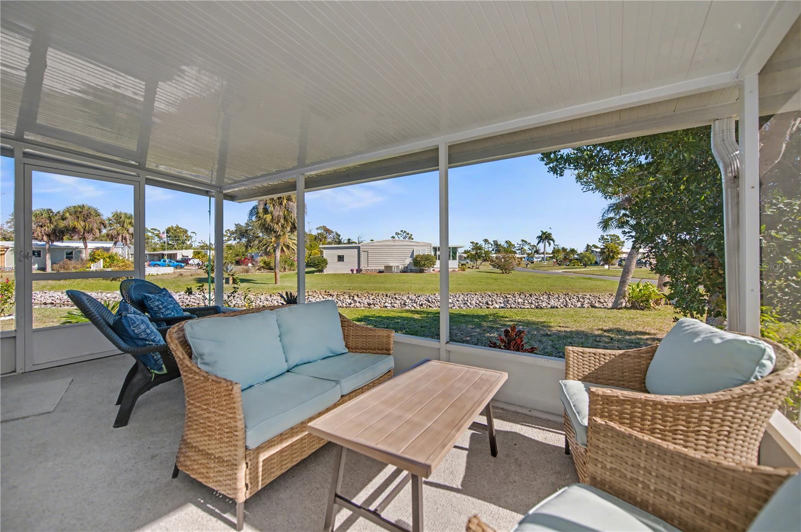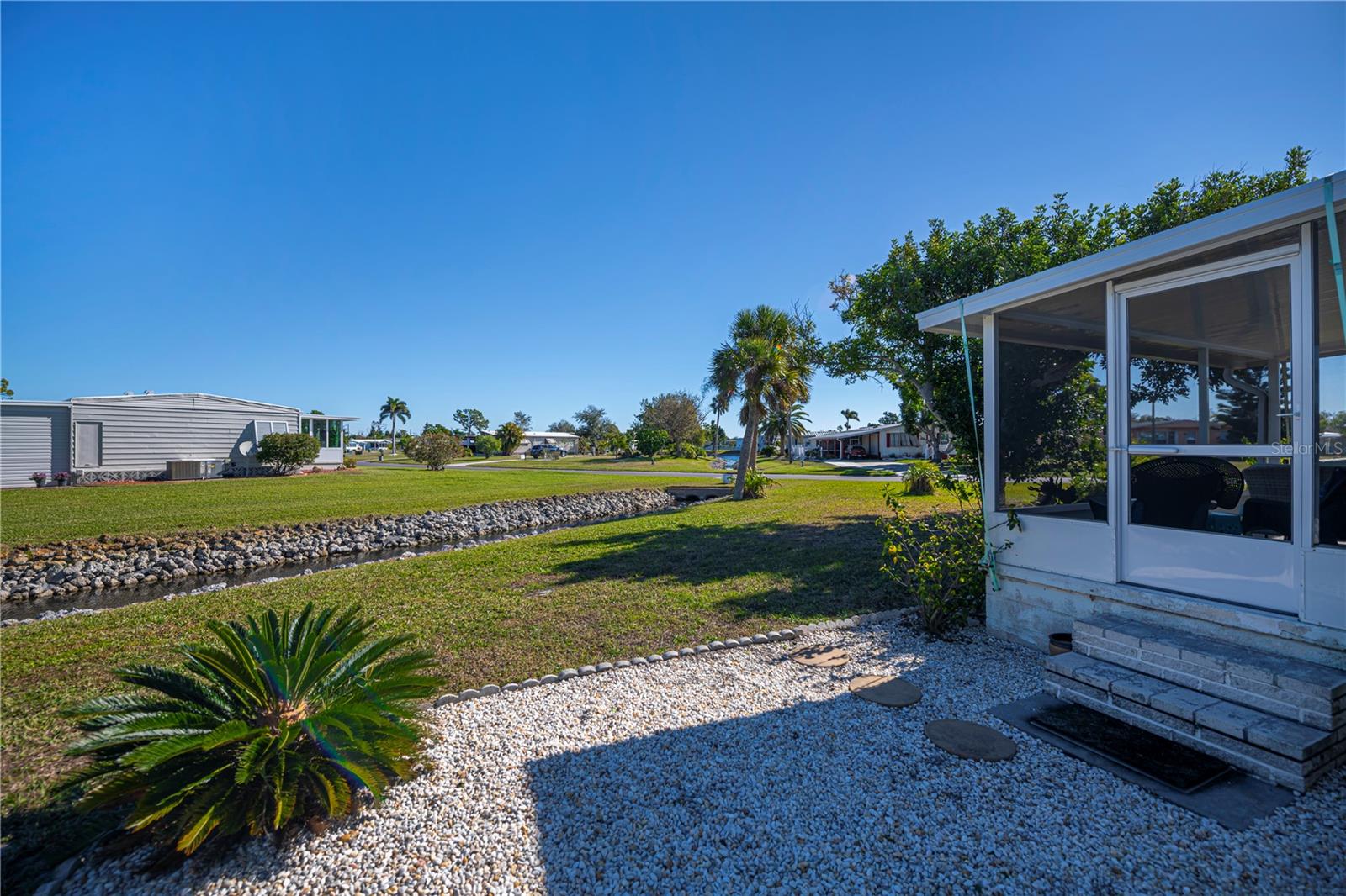 Looking for the perfect winter retreat or full time lifestyle? This totally rehabilitated home is perfect. Tastefully done, it is located at the back of a peaceful cul-de-sac on a tranquil canal. This two bedroom, two bath home has LVT throughout giving the floorplan continuity. The kitchen has an abundance of cabinets and counter space and opens into a large dining area. The bright and cheerful living room opens onto a spacious lanai overlooking the peaceful canal. The split floorplan affords guests and owners privacy and both bedrooms include full bathrooms. The utility building includes the washer and dryer hookup and plenty of space for a craft area or woodworking area. The second building adds great storage to this property. Located in a great manufactured home park, these homes are spaced out giving each home plenty of room. Surrounded by a multitude of golf courses, 5 beaches, many restaurants and shopping along with medical care. Priced to sell - don't miss this one!