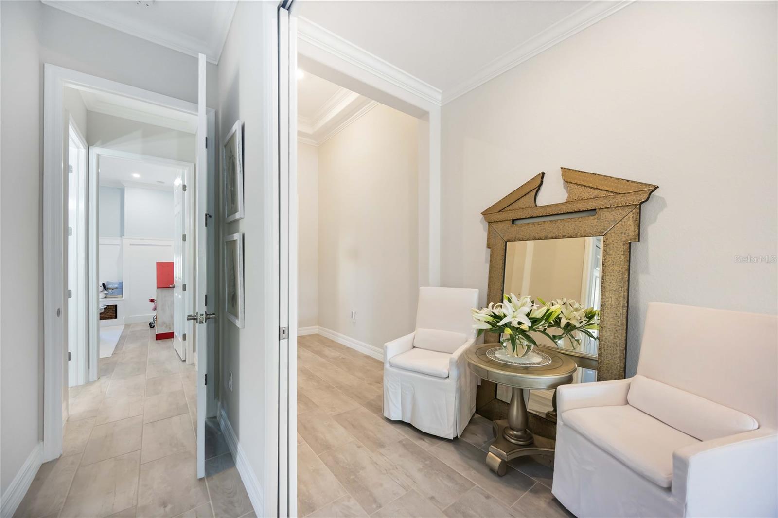 Stunning Maria Model with Resort-Style Pool and Spa in Sarasota National. Welcome to 25119 Spartina Drive, where luxury living meets comfort and convenience in one of the most coveted models in Sarasota National. The Maria Model offers 4 spacious bedrooms, 3 appointed bathrooms, and a 2-car garage, all set within an open, light-filled floor plan that's perfect for entertaining and everyday living. Snoopy, the beloved Charles Schulz character, has a special spot in this home for the littles in your life. The front bedroom, #1, is set up as a nursery, complete with a fort and bunk bed, built-in storage areas, and stunning wainscoting. No detail was missed. Bedroom #2 shares a Jack-n-Jill bath, and bedroom #3 is an ensuite with a private bath. The primary bedroom #1, has sliding glass doors opening to the lanai, a large shower, and dual sinks in the ensuite bath. The ample closets are professionally organized. Step outside to the lanai, and you have your own private oasis featuring a custom pool and in-pool spa with a travertine deck that elevates this home to new heights of luxury. The expansive pool (33' x 13') boasts a sun deck (25' x 7.5') with three lighted bubblers, perfect for lounging or enjoying a refreshing dip. The 8' x 8' hot tub is enhanced with ambient lighting, creating a serene space to unwind. A waterfall feature with lighting further enhances the atmosphere, and the entire pool and spa system is controlled via your smartphone for ultimate convenience. The outdoor kitchen is a chef's dream, designed by Blaze, a leader in premium outdoor cooking solutions, perfect for dining and entertaining. With panoramic screens on the pool cage, you'll enjoy uninterrupted views as you relax on the spacious lanai (33'x 21'). Two separate pump systems for the pool and spa provide professional-level engineering and performance. Inside, the gourmet kitchen is a true centerpiece, featuring a large 12' island, built- in oven and microwave, refrigerator, cooktop with exhaust fan, and plenty of space to create culinary masterpieces to host friends and family. The open-concept design flows seamlessly. For peace of mind, this home is equipped with hurricane impact windows and a hurricane impact screen, built to withstand high winds and ensure safety in any storm. The home is meticulously organized, with custom storage solutions in closets and the garage, making it ideal for anyone who loves a tidy, well- organized home. Situated in the highly desirable Sarasota National, this home is more than just a property - it's a lifestyle. Enjoy access to a private, Gordon B. Lewis-designed 18-hole golf course, a 19th hole dining facility, and a wealth of recreational amenities, including pickleball, tennis, bocce ball, swimming, fitness center. The vibrant community offers events for every interest and plenty of opportunities to connect with neighbors. Dine at the Indoor Palm Club or relax at the outdoor tiki bar by the resort-style pool. This gated, guard-secured community ensures peace of mind, while the numerous on- site amenities allow you to enjoy everything you need without ever leaving home. Schedule your private showing today and discover why 25119 Spartina Drive is the perfect blend of luxury, comfort, and convenience.